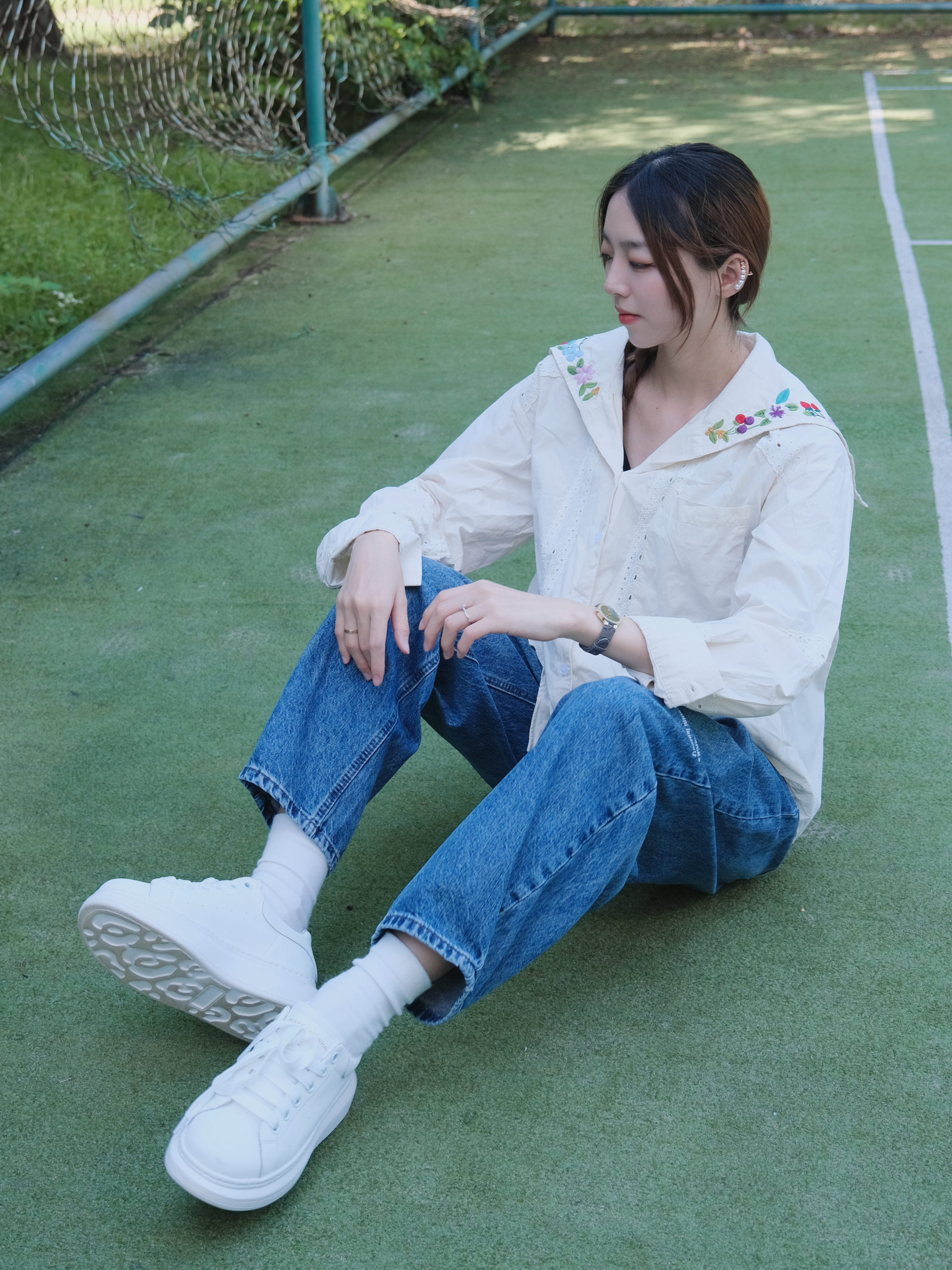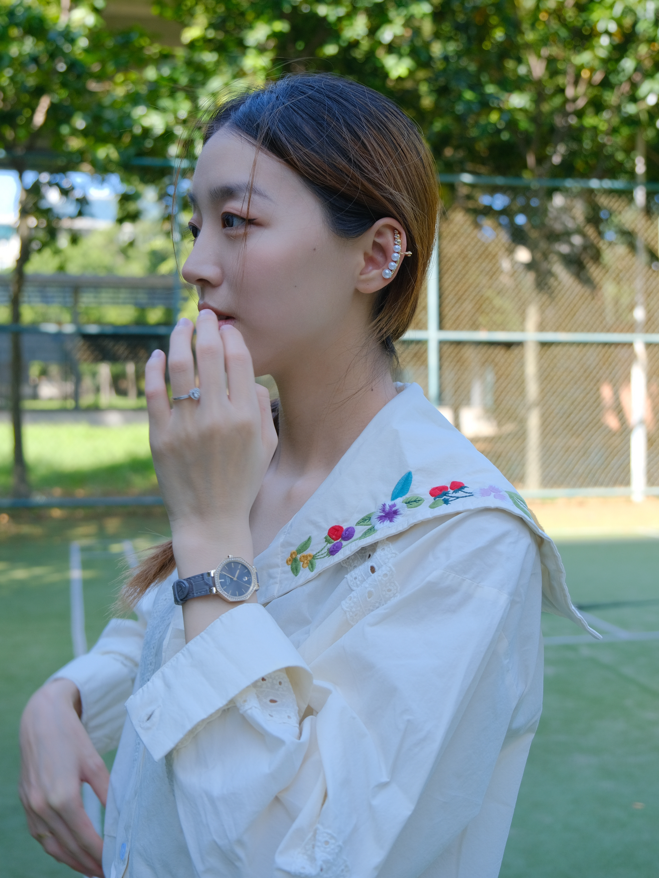 Halo!这里是小铭同学的穿搭分享频道📺 身高:168 体重:44 今日份look来咯 碎花衬衫搭配上牛仔裤👖~ 休闲又俏皮😜😜😜 这个秋天get到带表⌚️的乐趣了耶✌️ 低调又不失奢华的手表⌚️ 时髦精尊嘟很爱❤️ 搭配上珍珠的耳骨夹 精致感满分💯