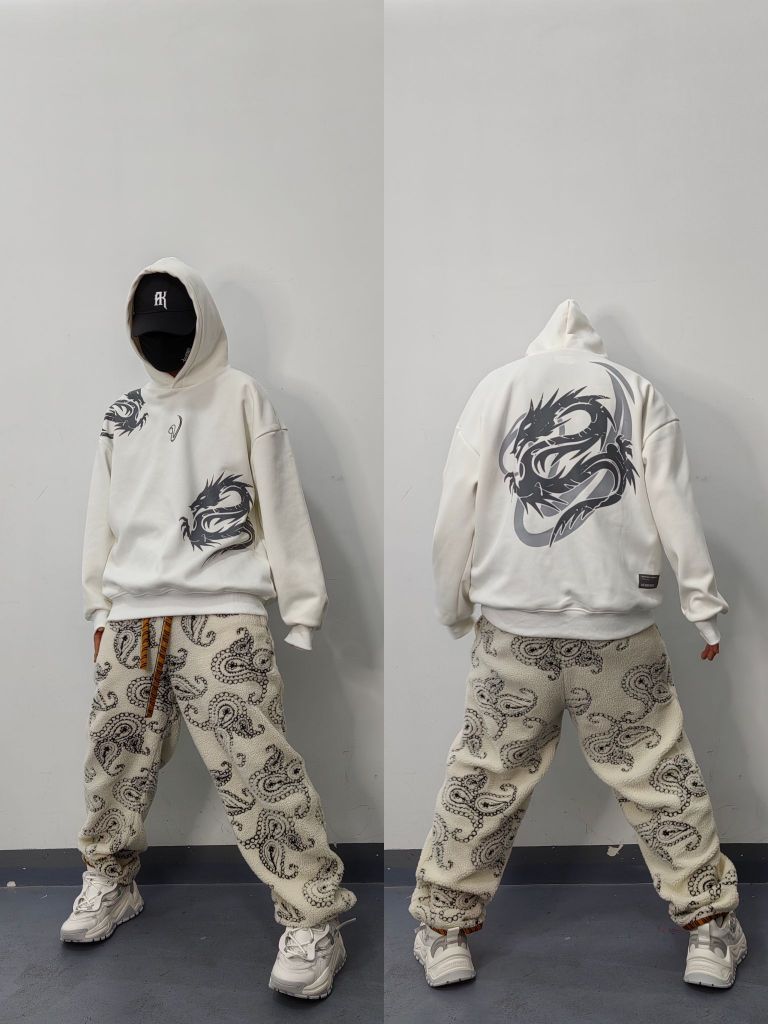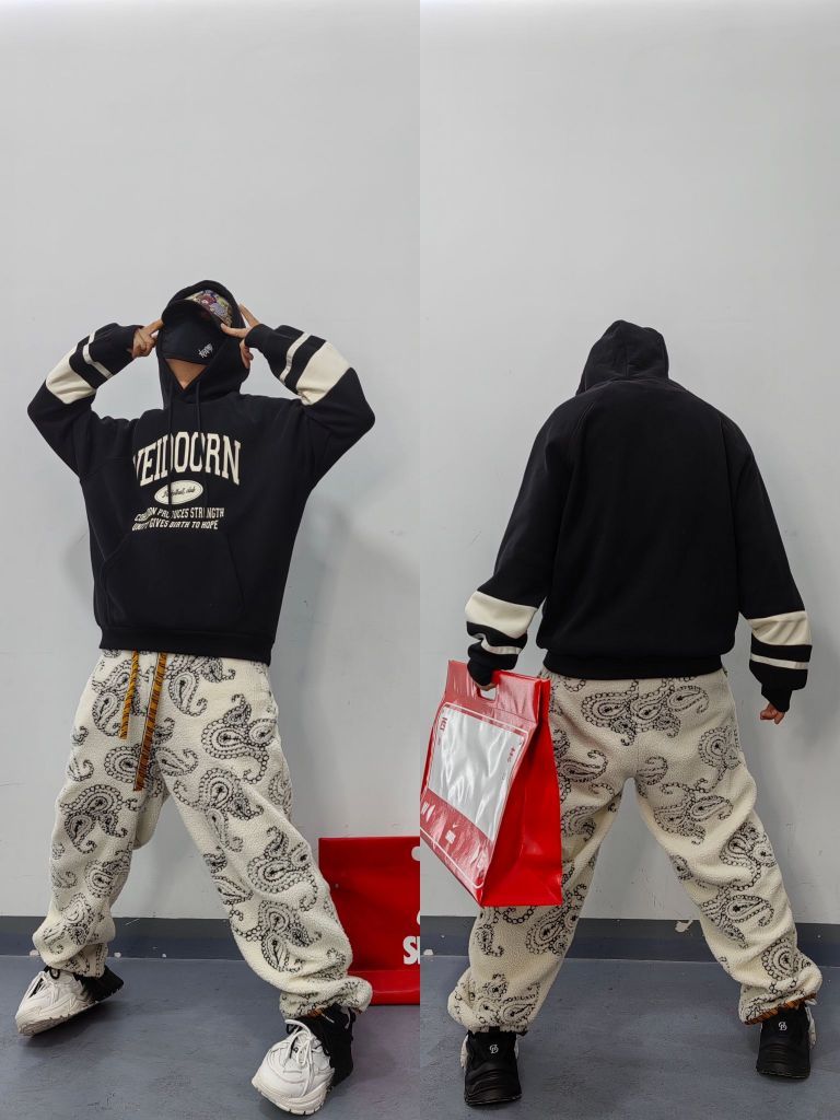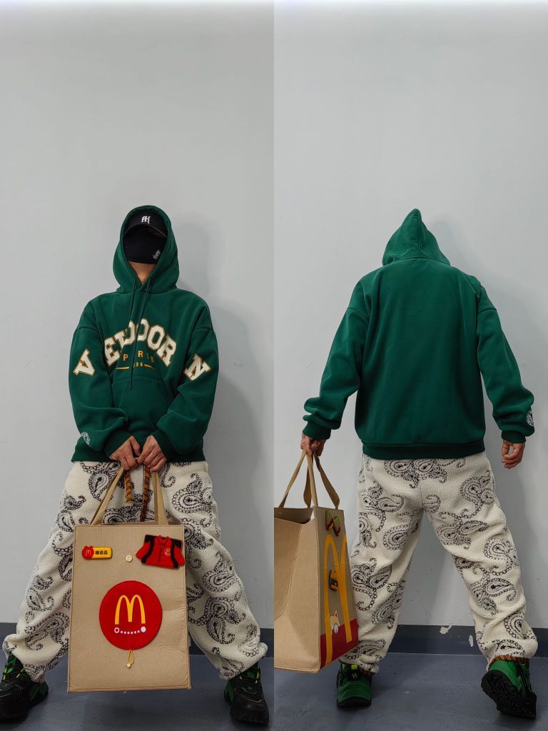 #冬日潮服新公式 今日分享冬季加厚加绒连帽卫衣搭配日常 以美式复古字母印花logo细节呈现 冬日搭配。保暖舒适街头感十足
