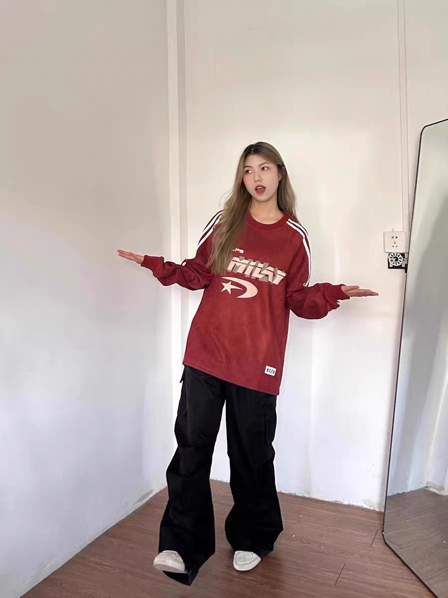卫衣厨狂喜,卫衣是我绝对少不了的衣服 🌈穿搭技巧: 永远的百搭,日常随便搭配一款休闲裤就可以出行🤣🤣 选择卫衣+黑色休闲裤+白色板鞋 酒红色巨好看上身超级好看,布料超级舒服 手臂杠条好看🥰🥰穿着可好看了,颜色显白 麂皮绒也是很柔软很能给予热量的! 秋冬打底正真好 图源网络侵删