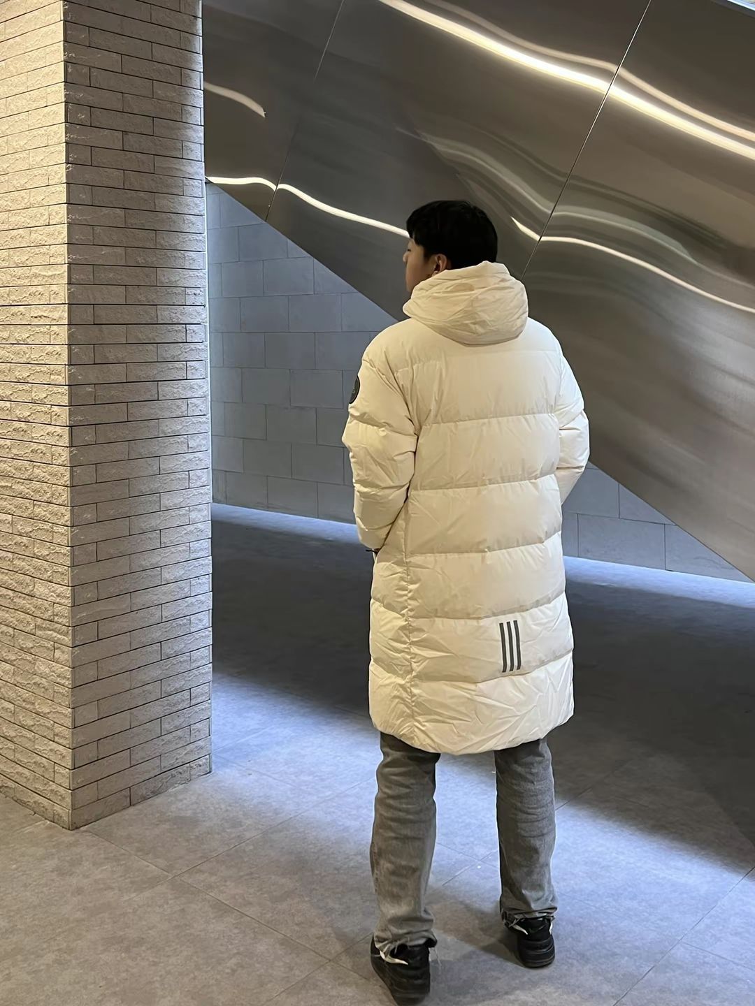阿迪这件超保暖的长款羽绒服 米白色设计简约高级 这个颜色也很适合冬天☃️☃️ 气质整的像电视剧一样氛围感很足💕💕 衣服整体长度适中,可以保暖我们的腿部,膝盖也是必备保暖区哦😘😘 衣服的充绒量特别高冬天穿很保暖的 肩膀处还有一个logo印花点缀让整件衣服有了更多的层次感 背后还有经典的三道杠反光条设计小细节做得很🉑 图源薛薛薛YJ侵删