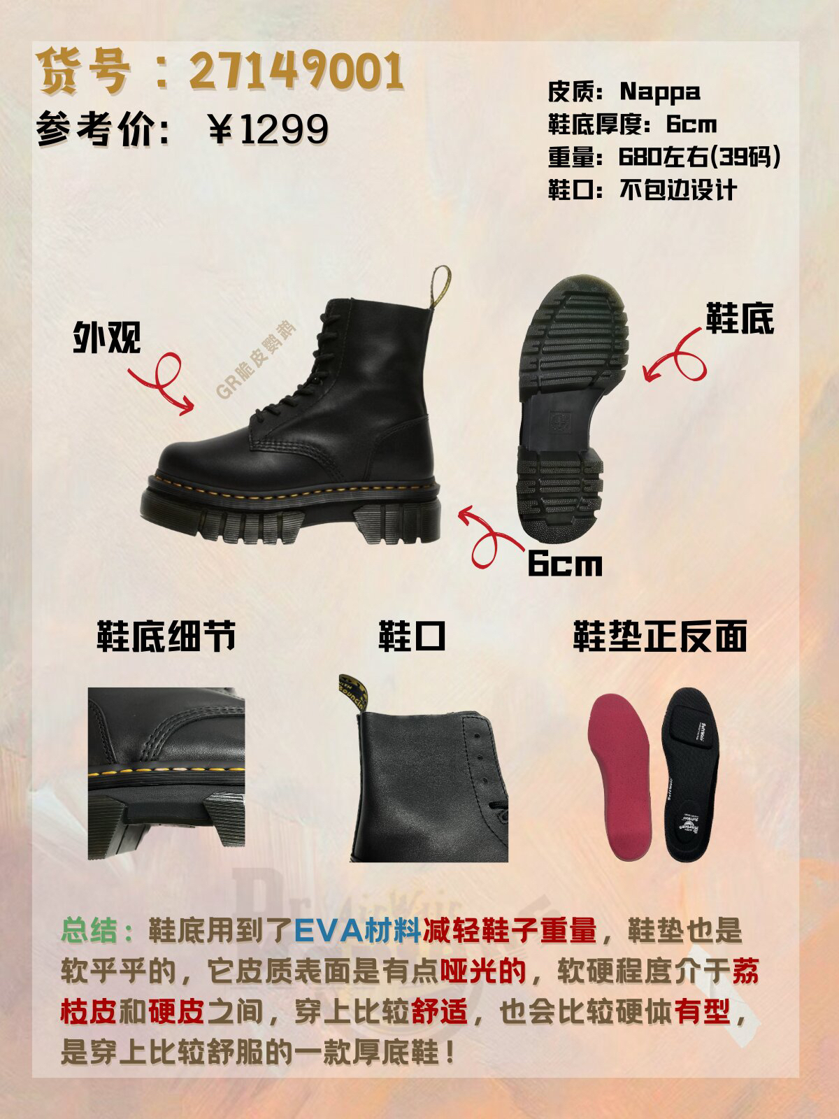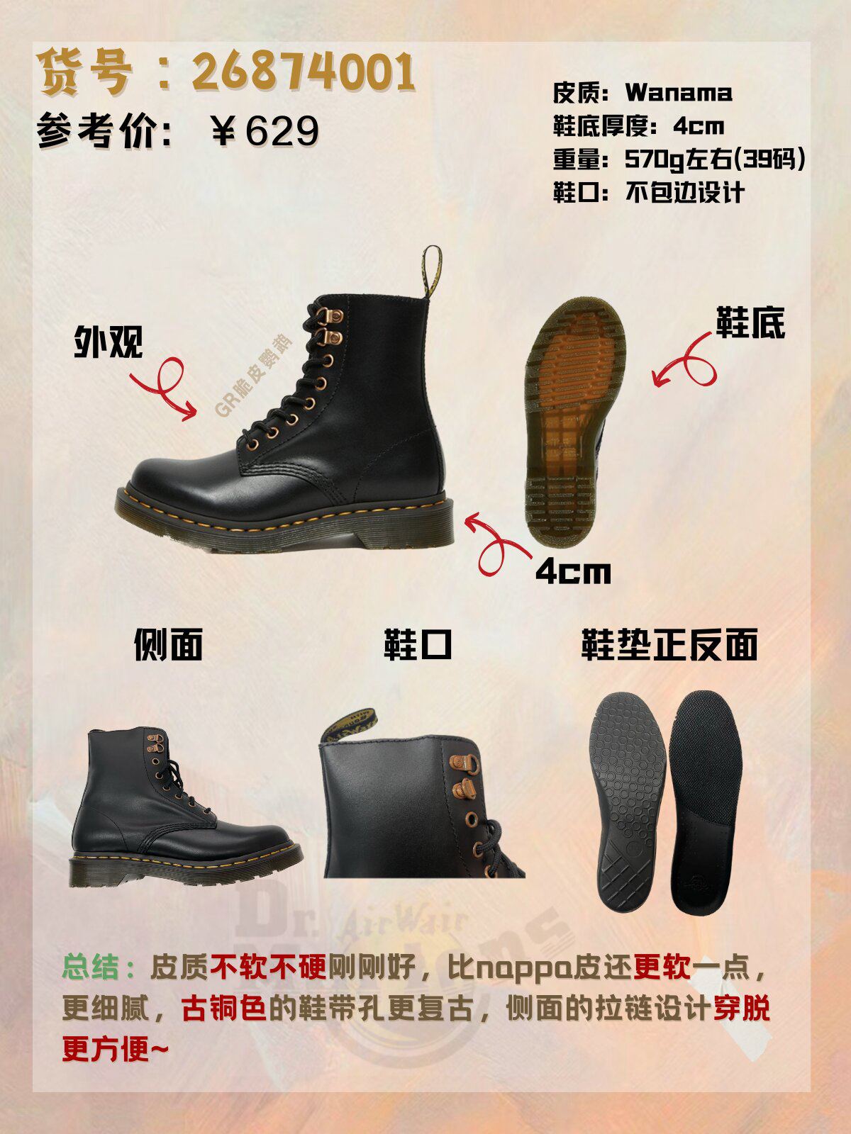 硬皮、软皮、荔枝皮这么多皮到底怎么选? ✅身高建议, 如何搭配马丁,首先肯定要从身高着手 155-160:推荐6孔,显腿长 160-170: 6-8孔均可,显腿细 170以上: 8孔及以上,显腿又长又细 皮质选择 🌈Virginia leather荔枝皮 优点:柔软,穿着舒适; 缺点:比较日常,没那么有型; 🌈Wanama leather 软皮 优点:皮质柔软比较适中,细腻; 🌈Nap...