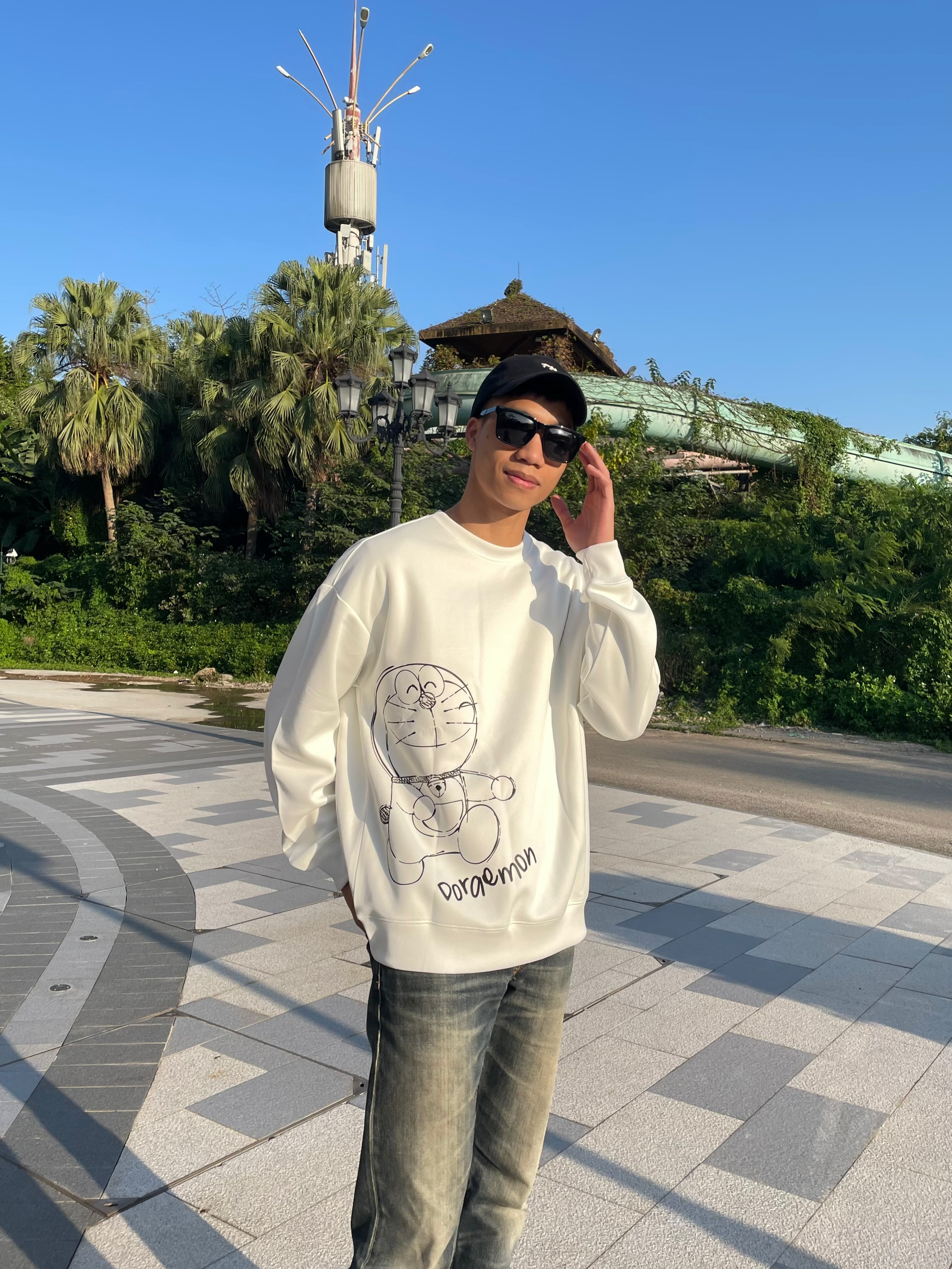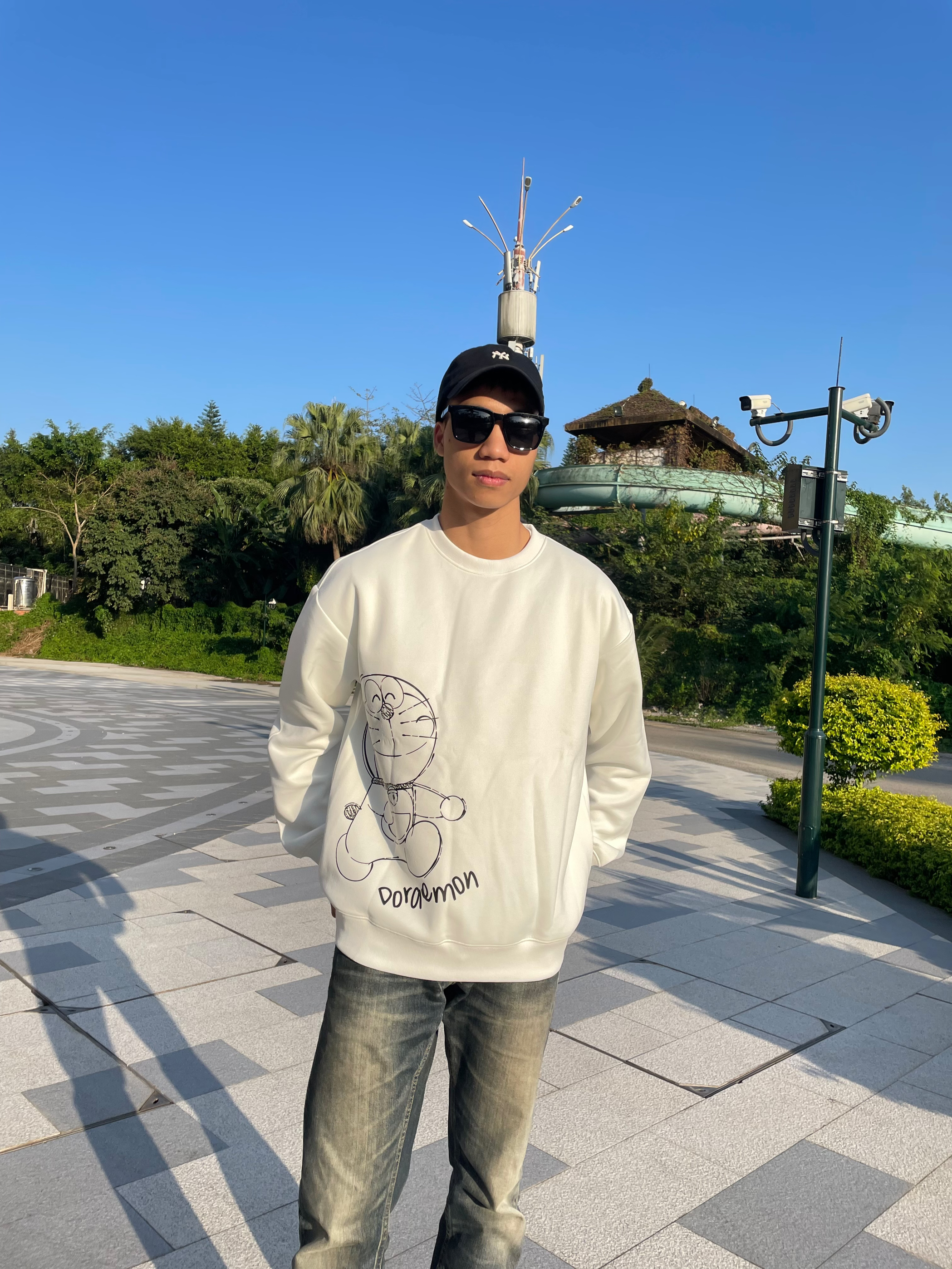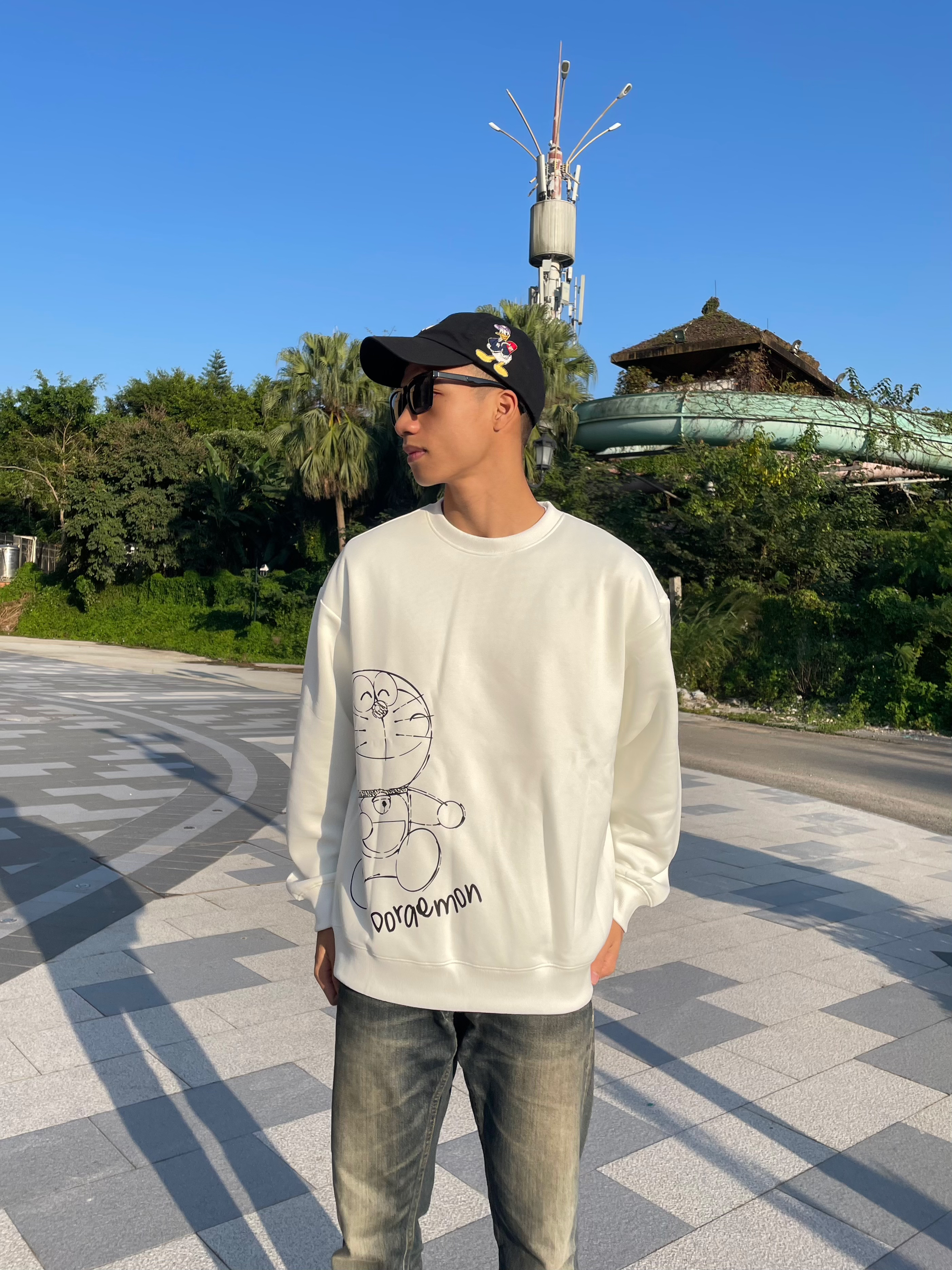 哆啦A梦的图案印花圆领卫衣真的好百搭 宽松版型不挑身材!谁穿谁好看!