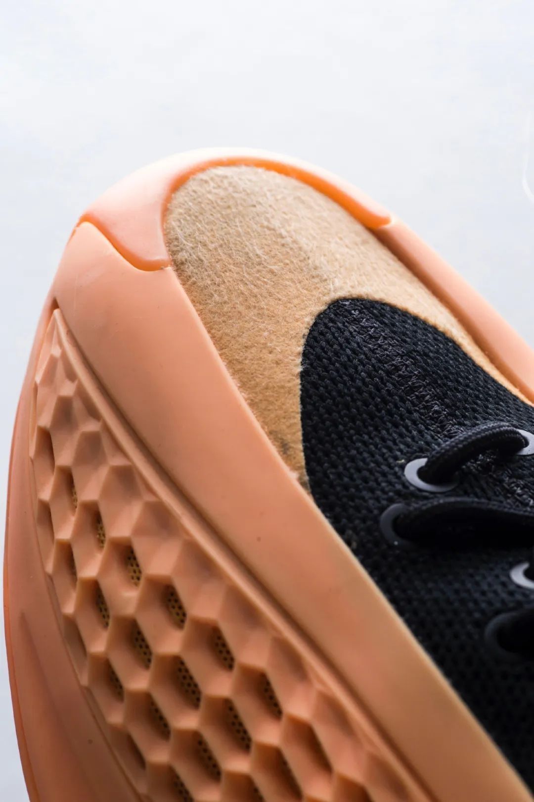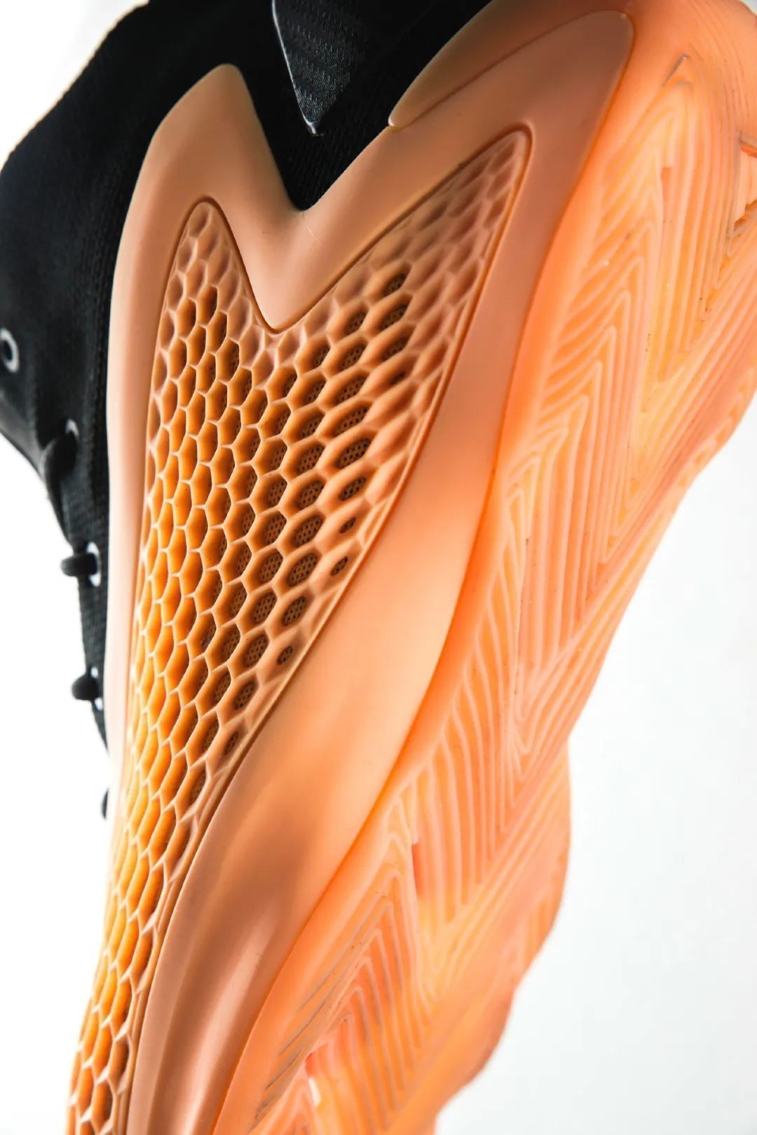 要说到整双鞋最吸睛的地方,还得是侧面这大面积镂空蜂窝状TPU;