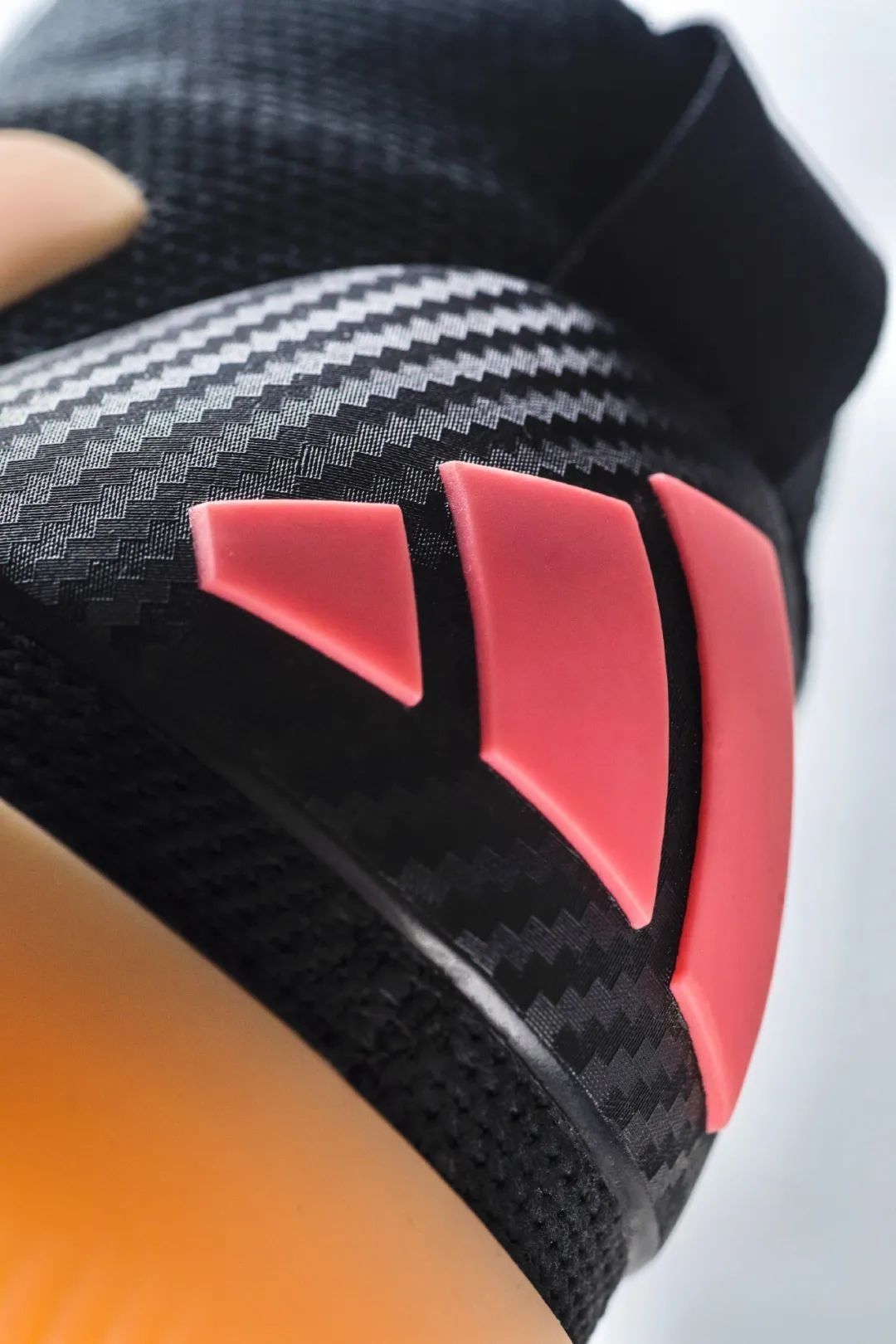 鞋后跟的玻璃纤维固定板,做成了碳纤维的纹路,高级感十足;再配合上内靴填充了两块港宝,后跟锁定十分明显;