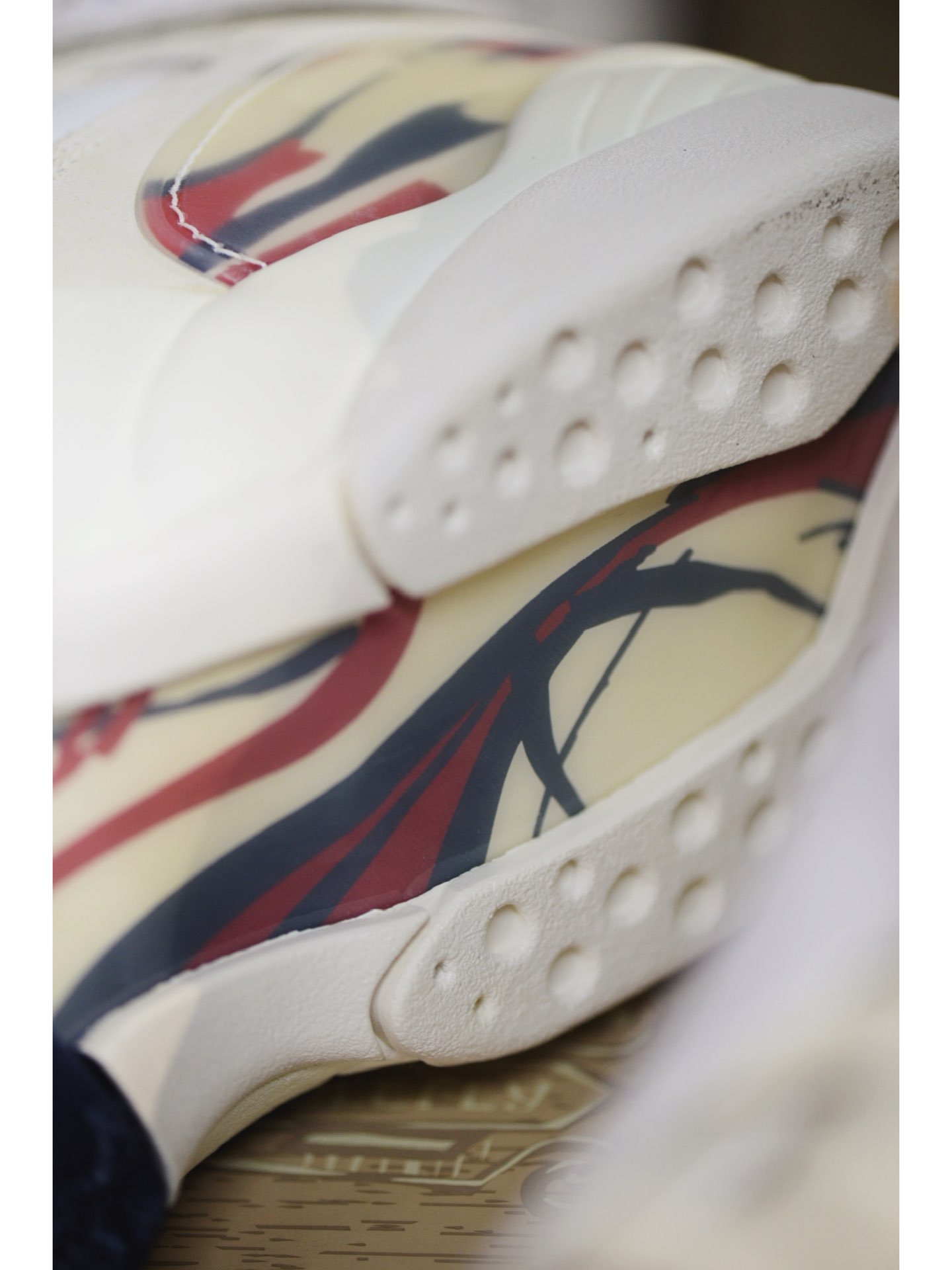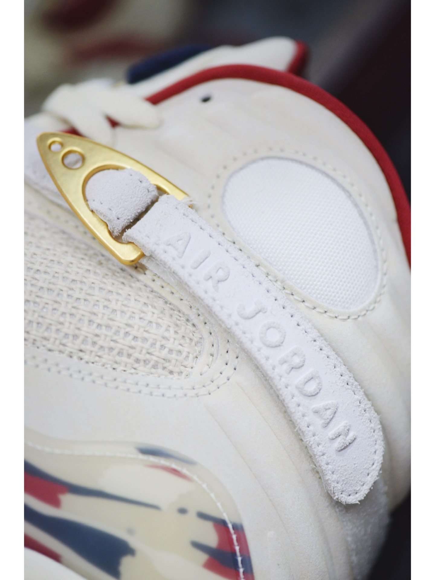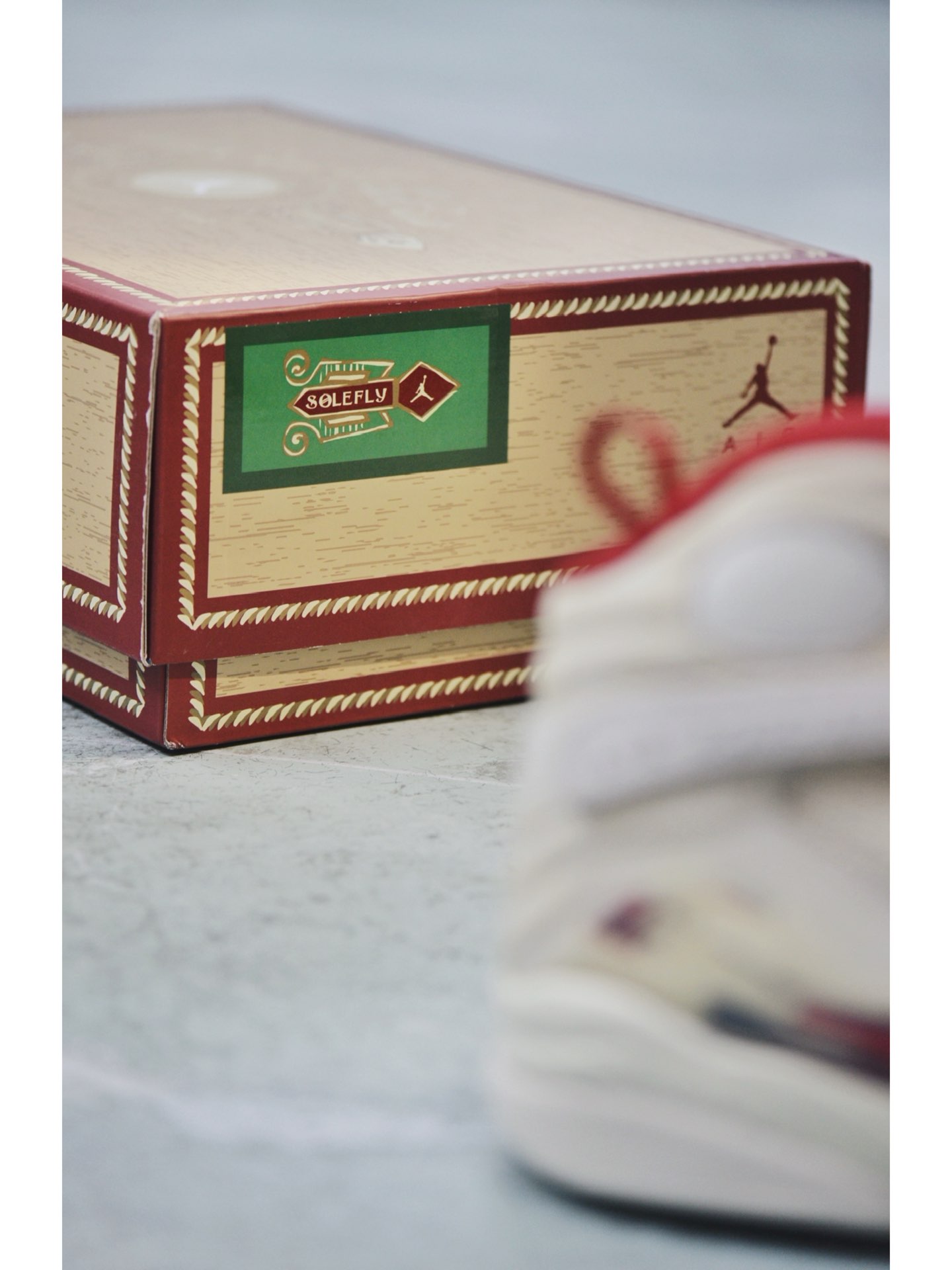 此次全新联名以「雪茄」为灵感,白、金、红三色的组合,乍看简约实际却散发着浓郁的奢华感。鞋身材质以麂皮和网眼织物包裹,不仅保证质感,更还原了 Air Jordan 8 的厚重感。细节方面,除了最经典的设计元素外,还在左脚绑带上的字样换成了「SF」,彰显联名身份。 #Jordan #AirJordan8 #solefly
