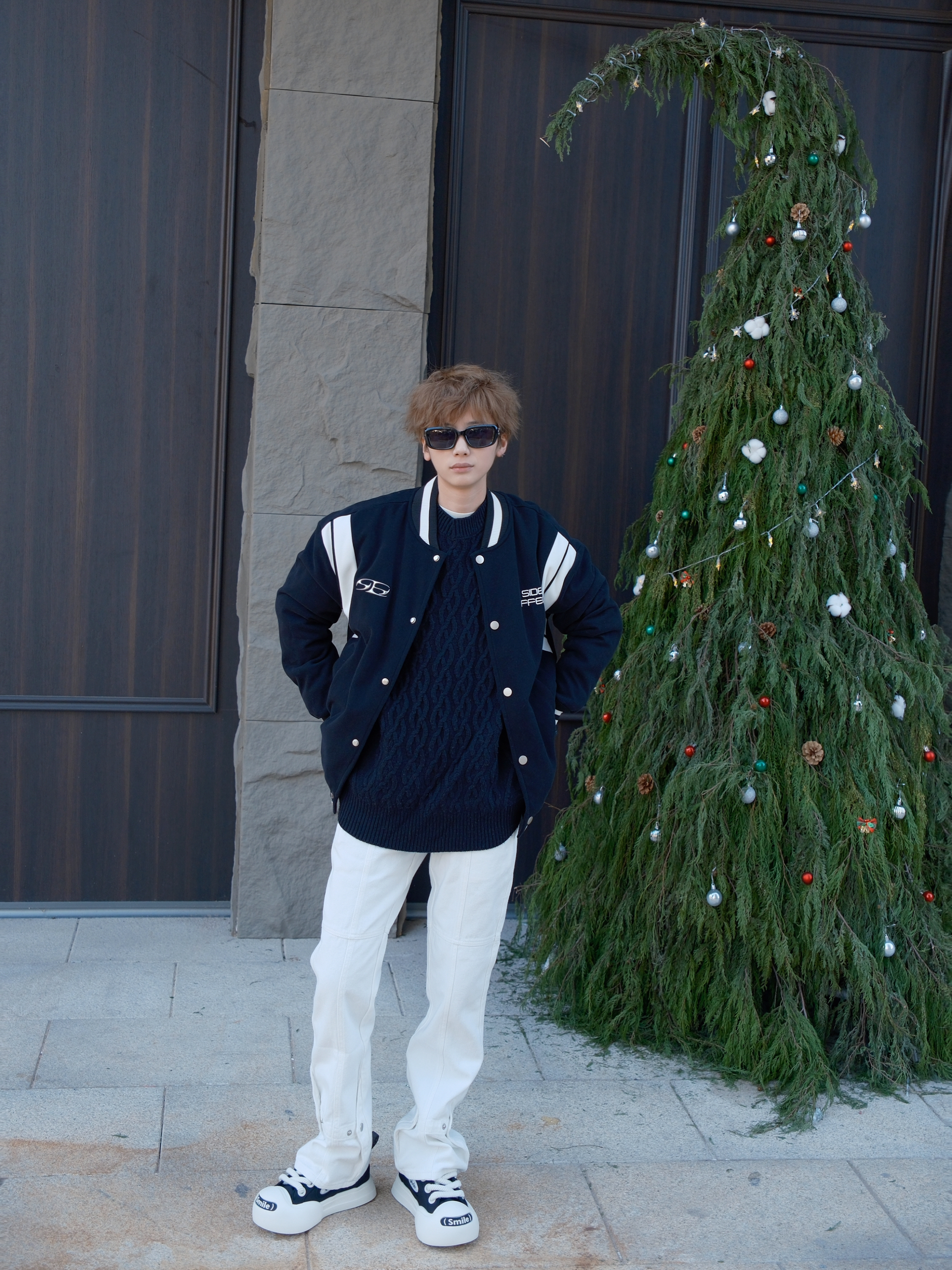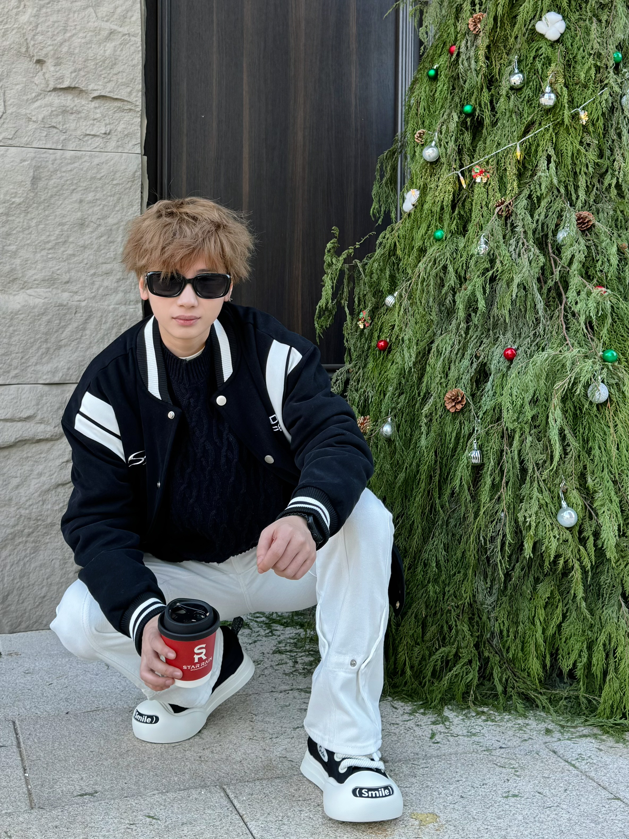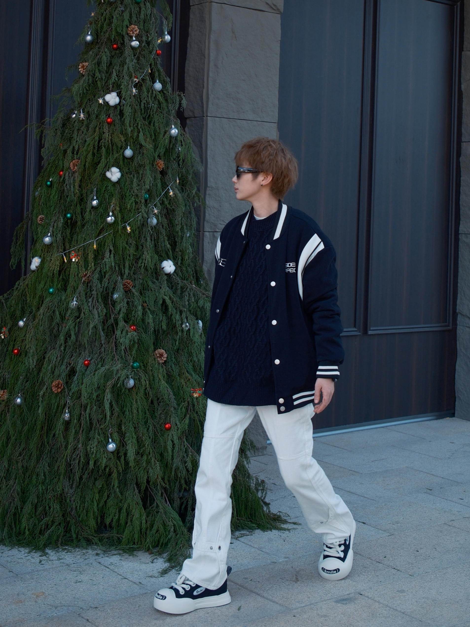 简单的穿搭营造高级感 上衣选择一件黑色棒球服外套 双拼色的领口和落肩袖处理,整体造型就很有层次 内搭同色系毛衣,穿出松弛感 下身搭配白色微喇裤,裤脚暗扣设计vibe街头风十足 最后来一双黑白撞色的开口笑帆布鞋 上脚很百搭,宽鞋身的鞋型可以让裤子在鞋面产生一点堆叠效果 脚感方面软弹舒服,没有想象中那么厚重✅ 🧥: SIDEEFFECT 👖: URS GGON 👟: Ouder