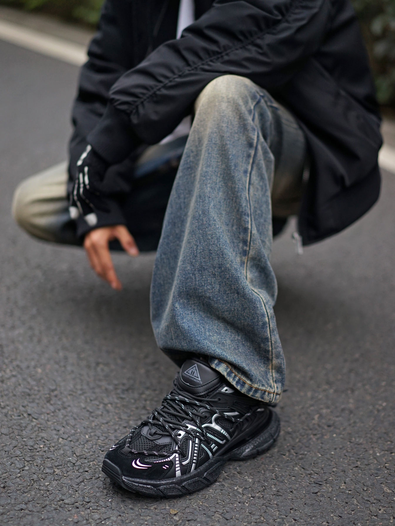 习惯了🌃都市生活的繁琐 喜欢化繁为简的黑白配🏁 日常如此,穿搭也是如此 白色打个底,披一件黑色夹克 纯的白和静的黑相交错,是cleanfit的氛围感✨ 随意搭配一条水洗牛仔裤 再来一双黑银配色的老爹鞋 主打一个☀️简单干净的调调 咱也可以轻轻松松,时髦入冬🎄