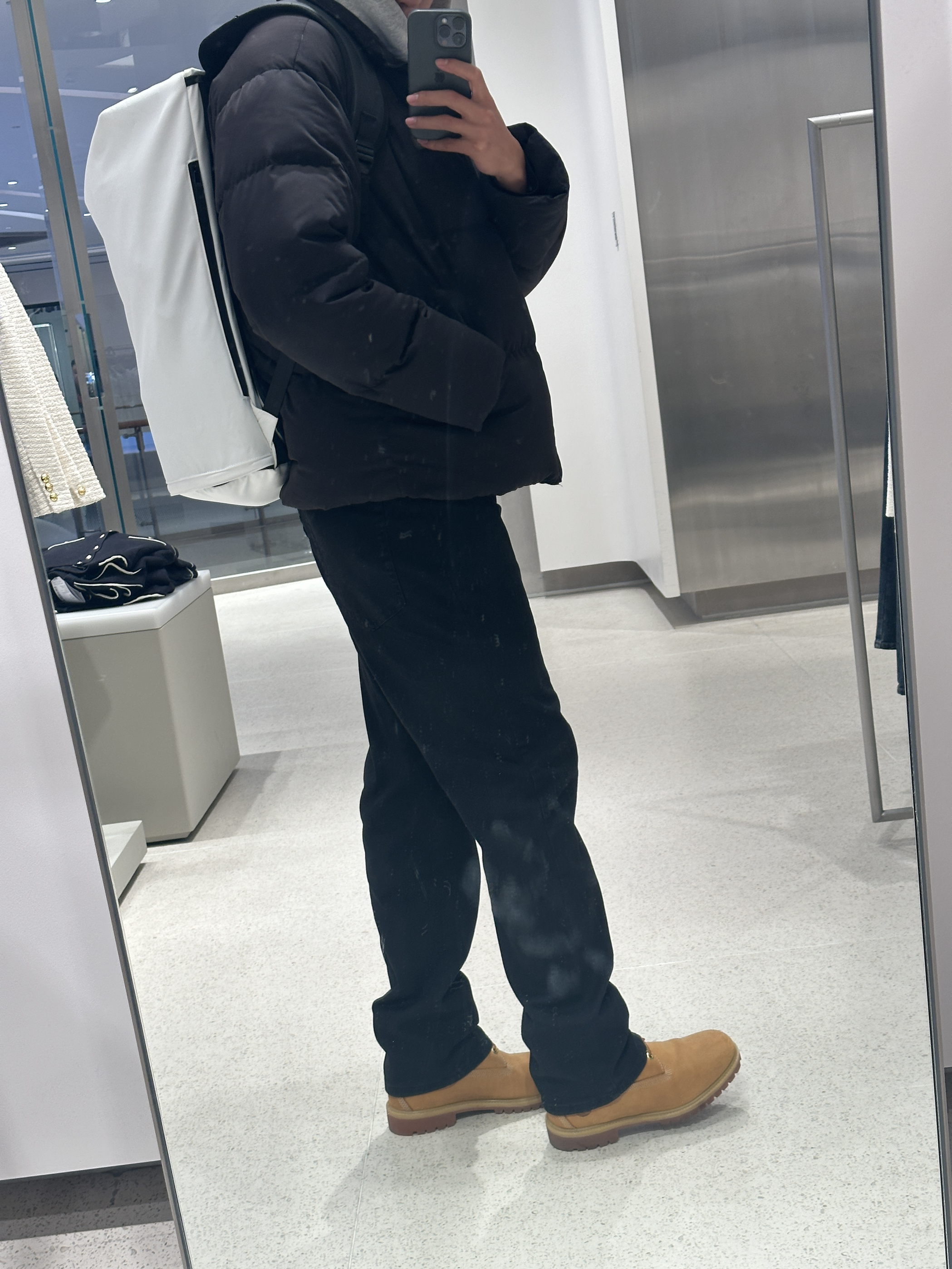 身高|体重:190/85kg 🧍♂️ 穿搭风格:简单风格穿出自己 👔 上衣:ch羽绒服保持温度 👖 下装:直筒黑牛彰显腿长 👟 鞋子:大黄靴暖和百搭 🎒配饰:白色篮球包你值得拥有