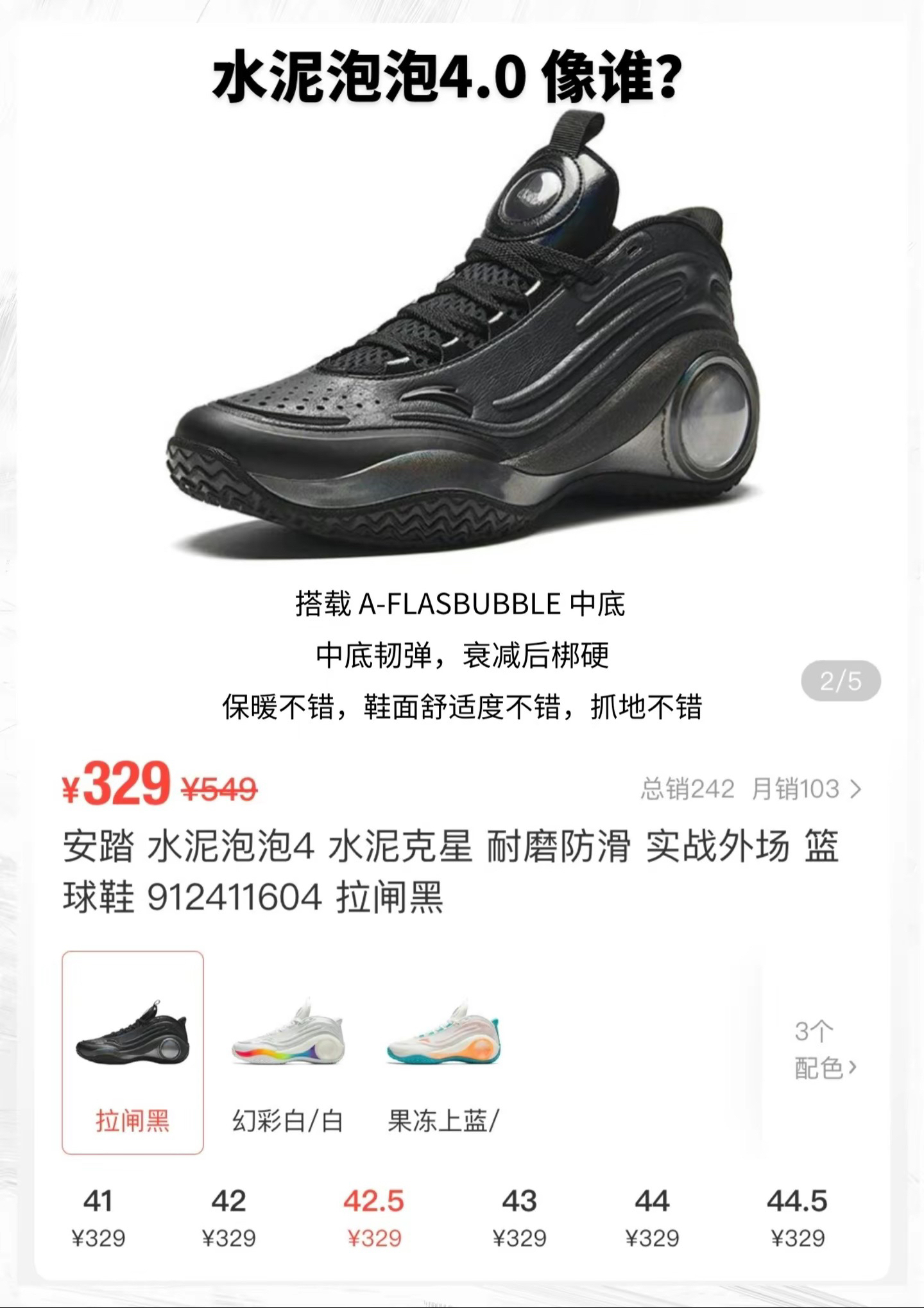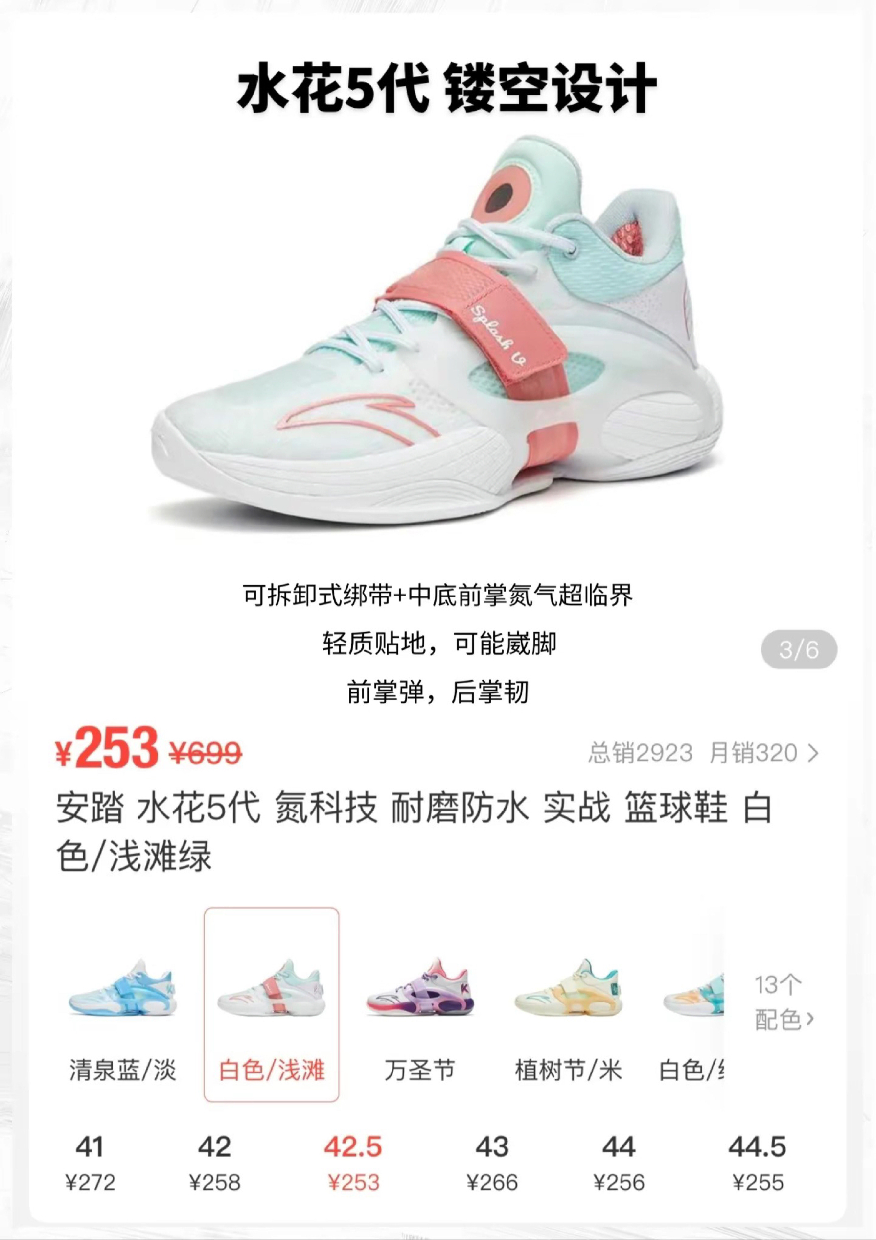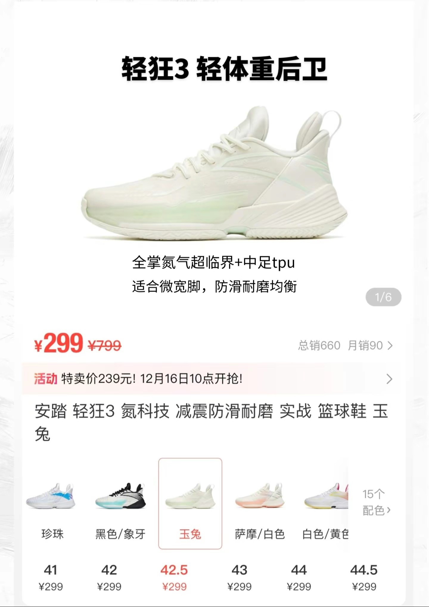 本篇笔记关联了安踏 狂潮3代 碳板 透气减震 防滑耐磨 实战 织物 篮球鞋 传承、安踏 轻狂3 氮科技 舒适减震 防滑耐磨 实战 篮球鞋 珍珠、安踏 水花5代 汤普森 篮球鞋 氮科技回弹透气防滑耐磨舒适百搭实战运动 男款/海浪蓝等商品,为用户提供真实的使用体验和购买参考。