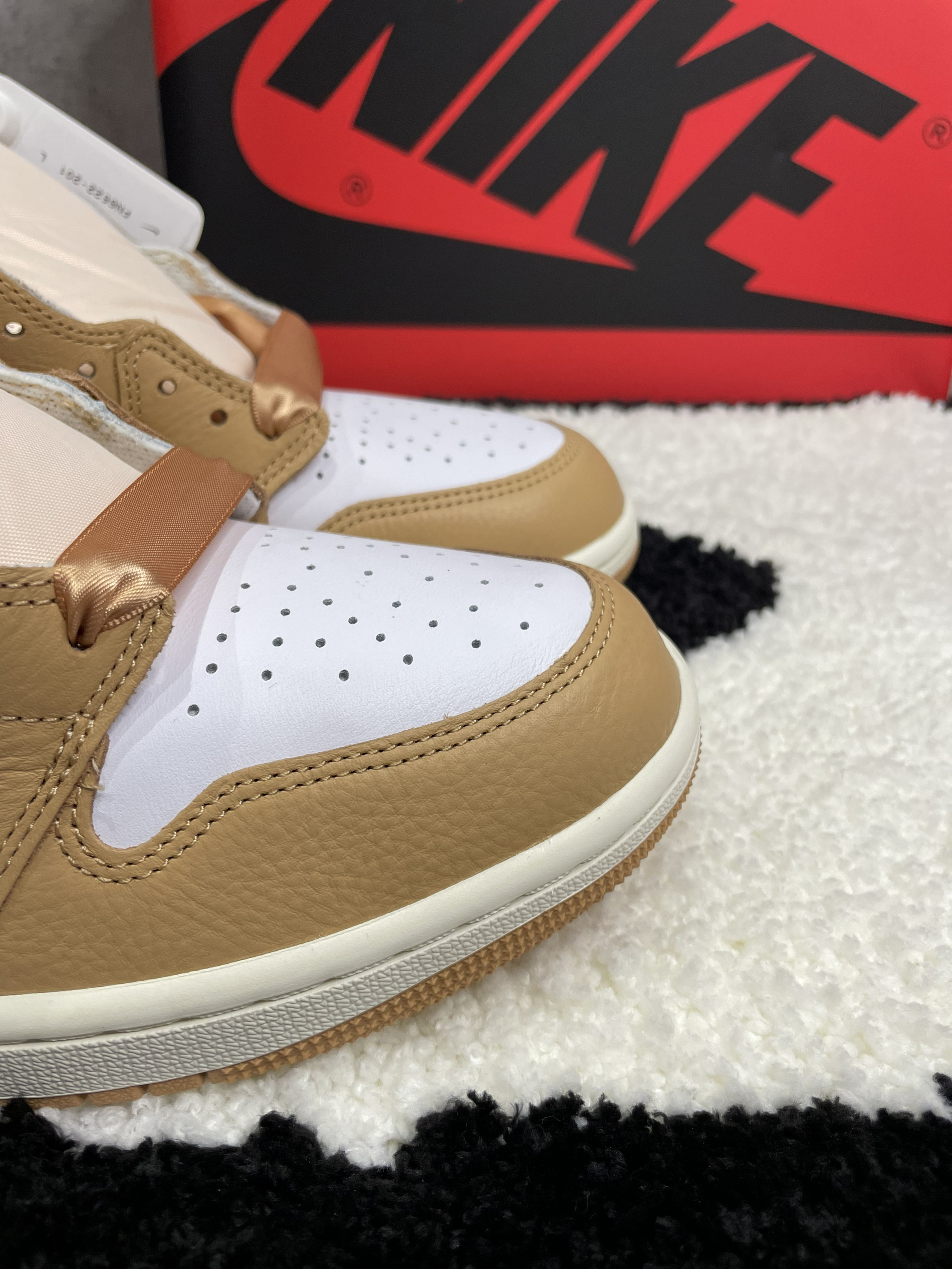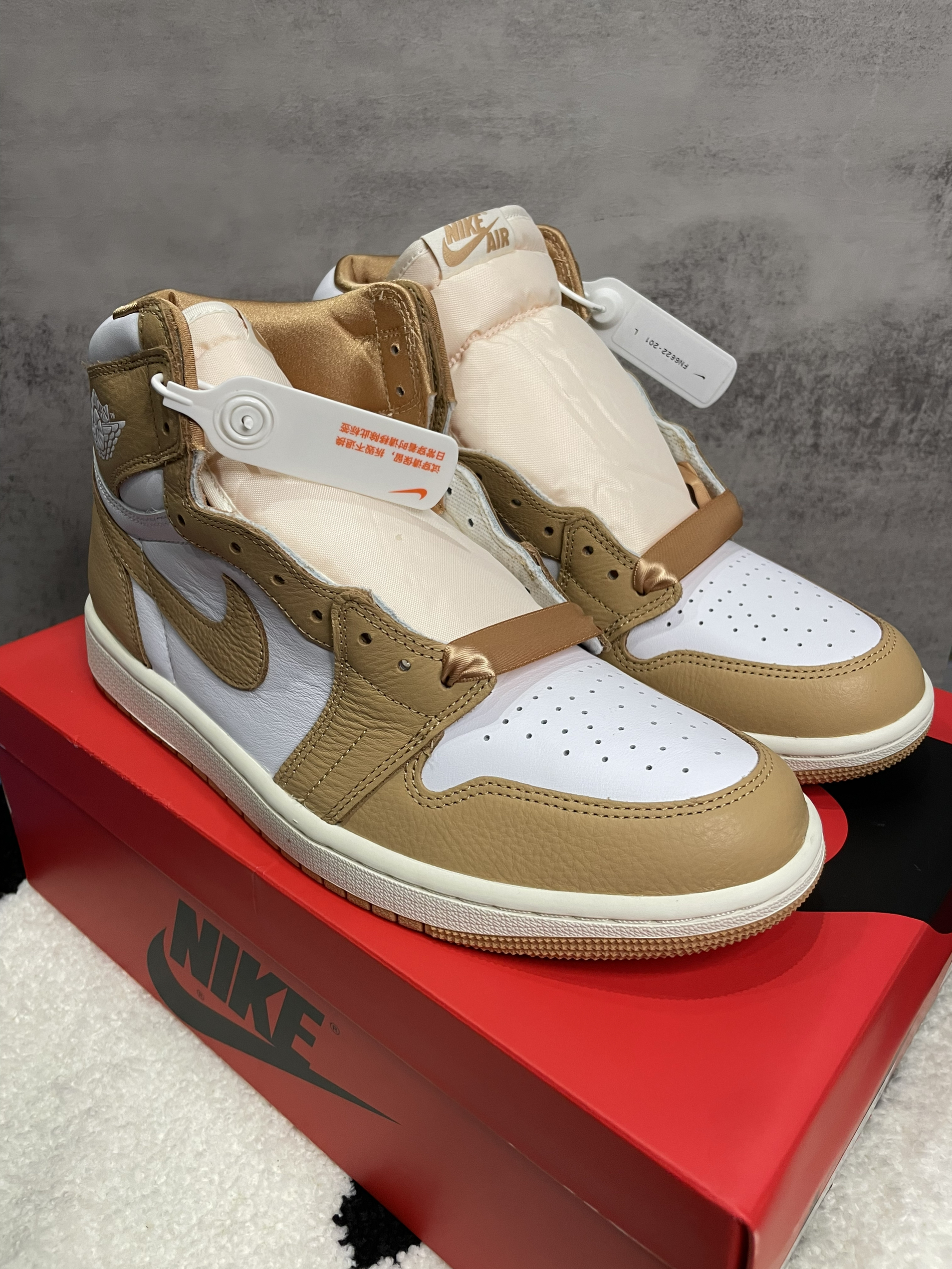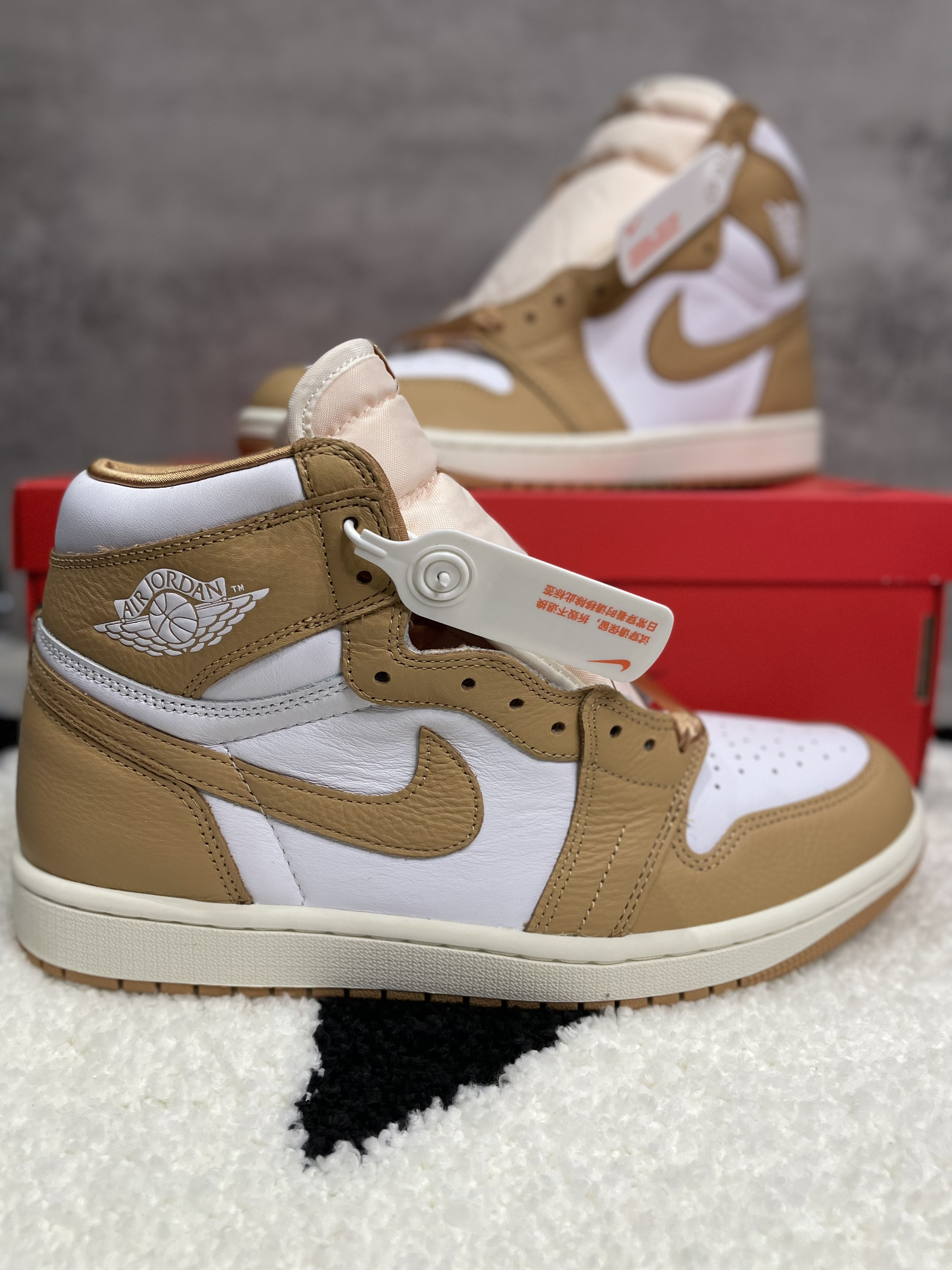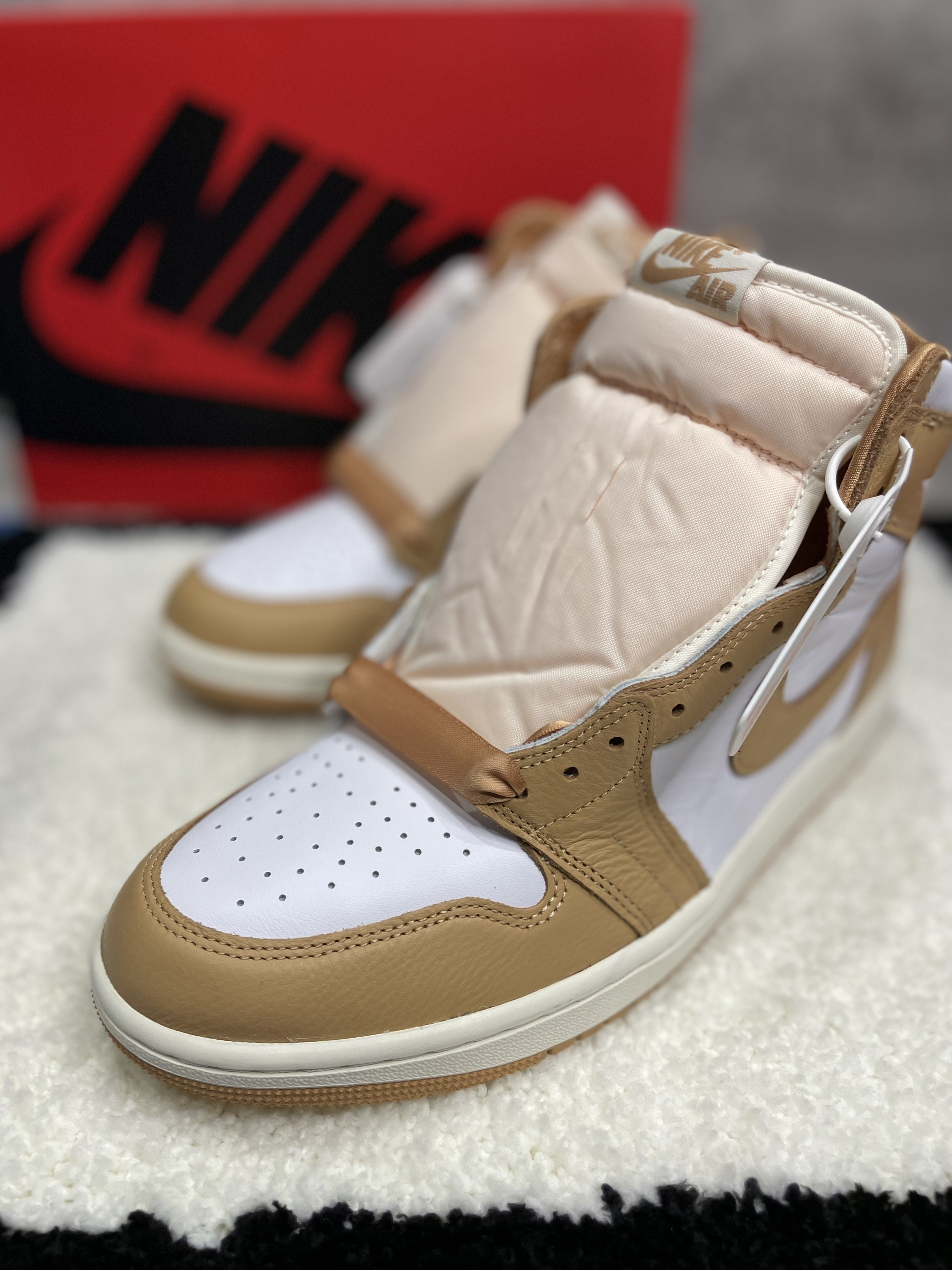 哈喽,大家好,随着热度褪去,现在很多球鞋都性价比很高,今天就和大家分享一款,我近期入手的比较宝藏的鞋款。它就是AJ1高帮女款奶茶色。 依旧是非常经典的九孔高帮正代鞋型,配色简单干净,奶茶色🧋非常的休闲。 鞋面是真皮材质,质感很不错。鞋带部分也用到了丝绸的材质,进一步提升质感。 大家觉得这款鞋怎么样呢?一起来评论区聊一聊吧。
