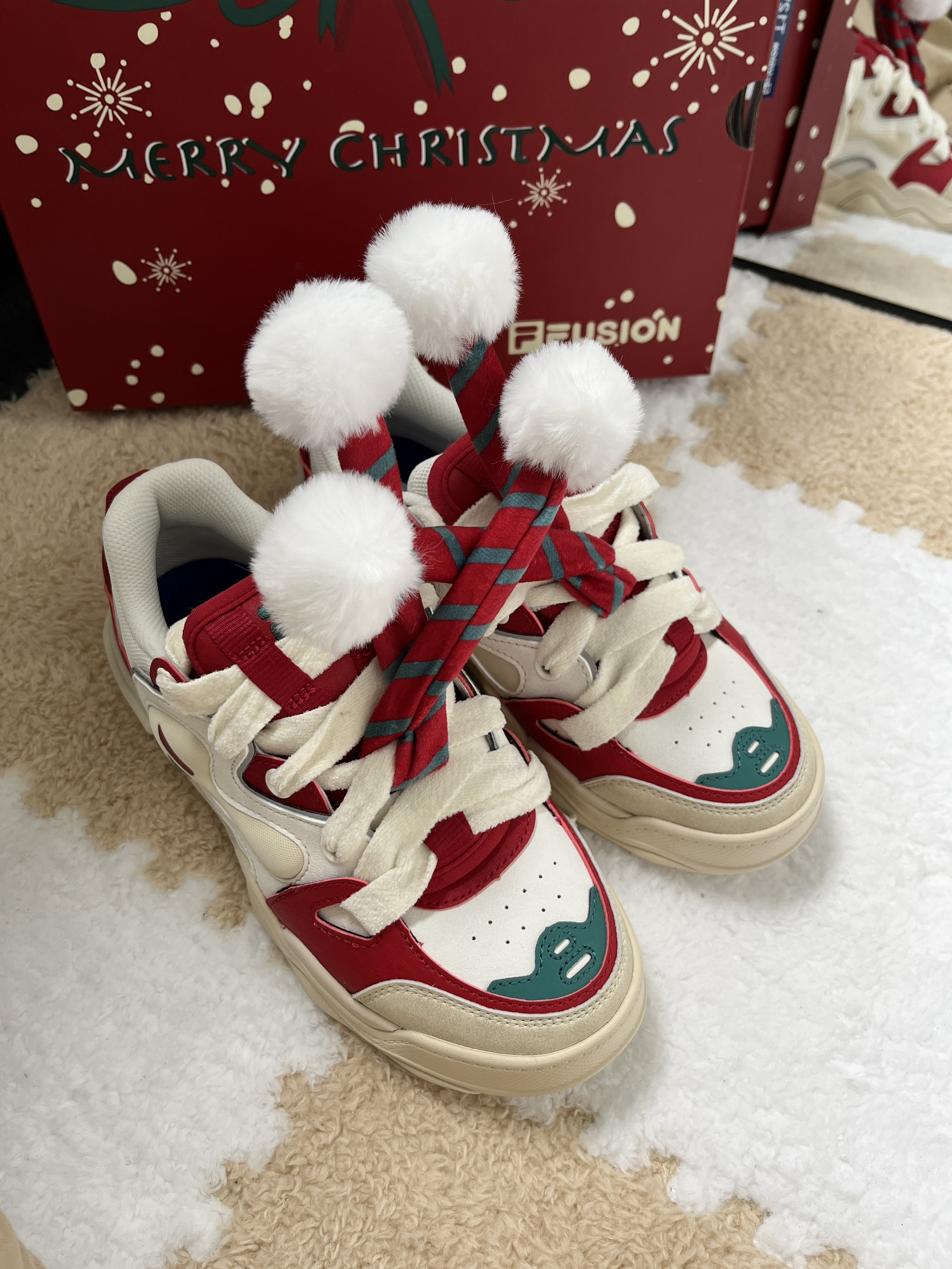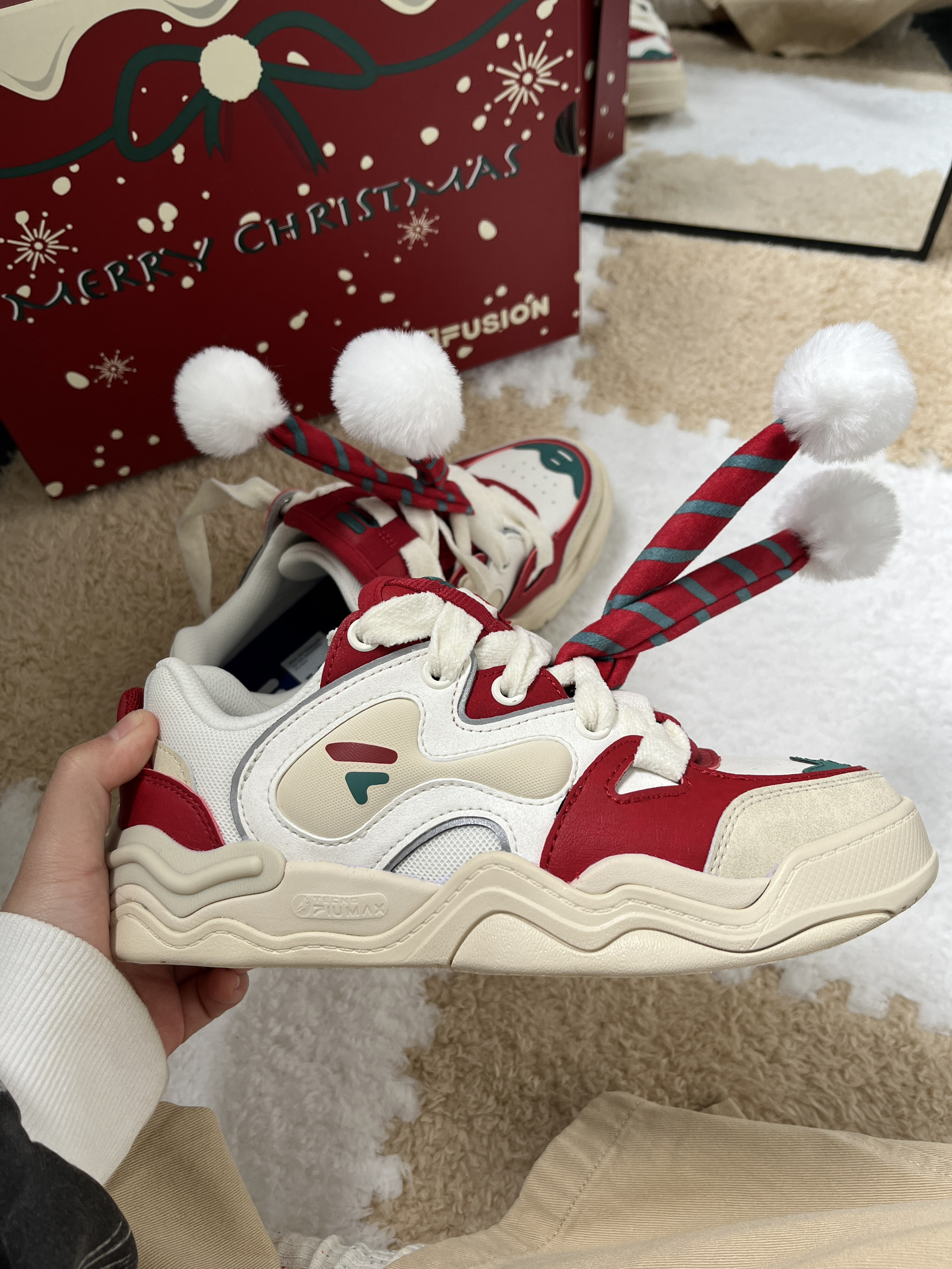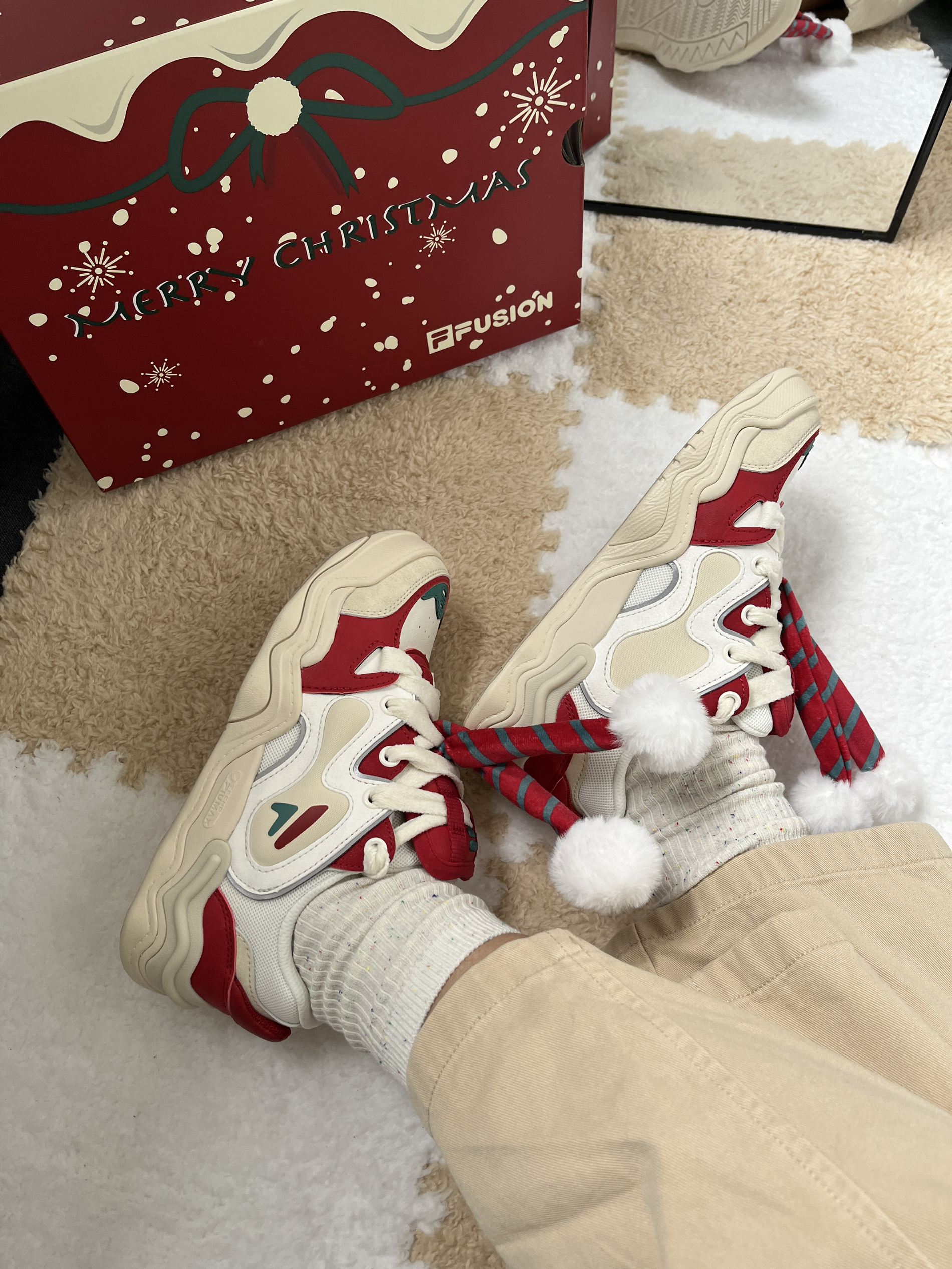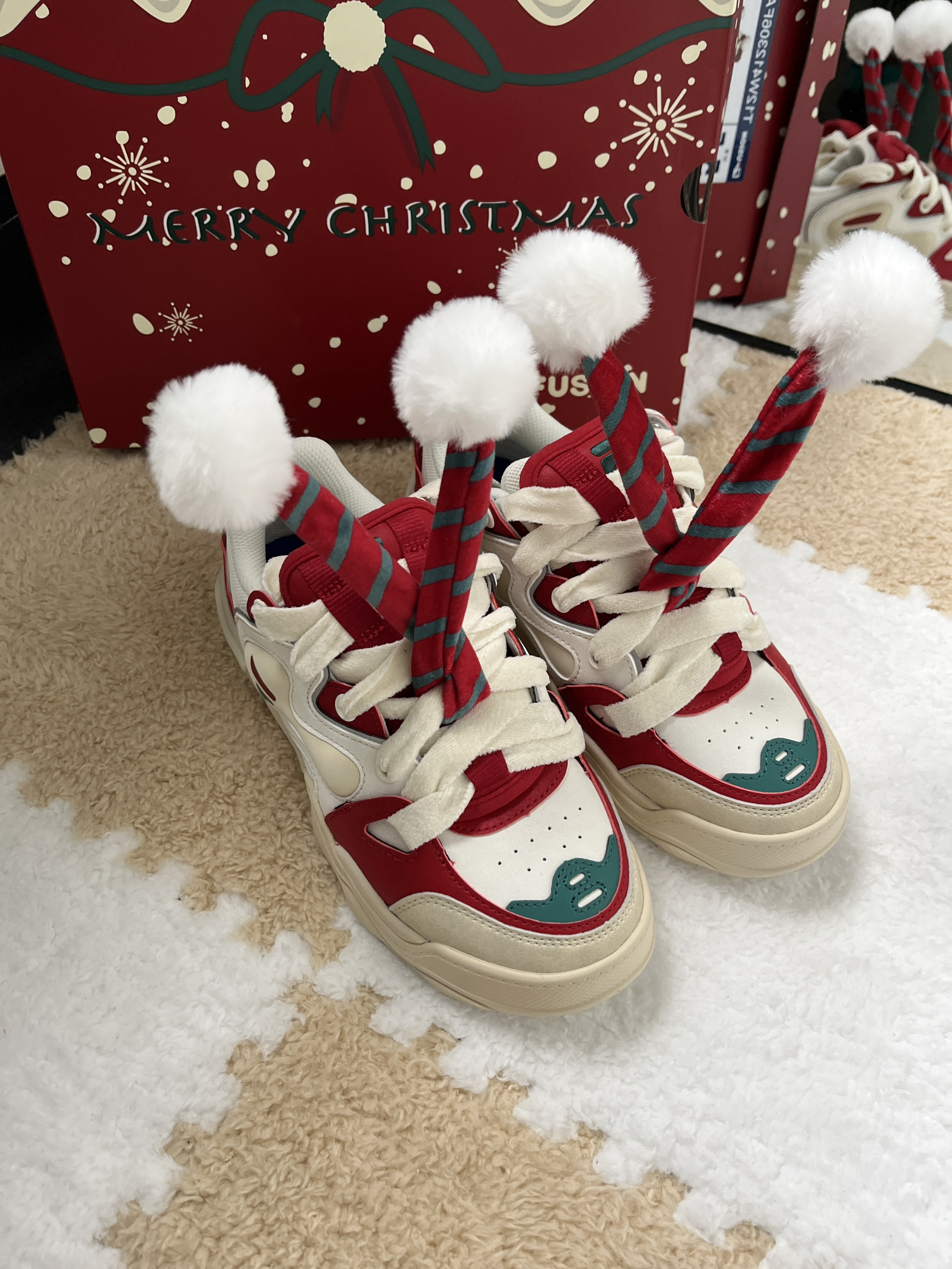 鞋子配色,非常的有圣诞节氛围感,还带了个小围巾🧣,可以任意塑造型的哟!可可爱爱~ 配色日常穿搭配,过年穿也可以呀!