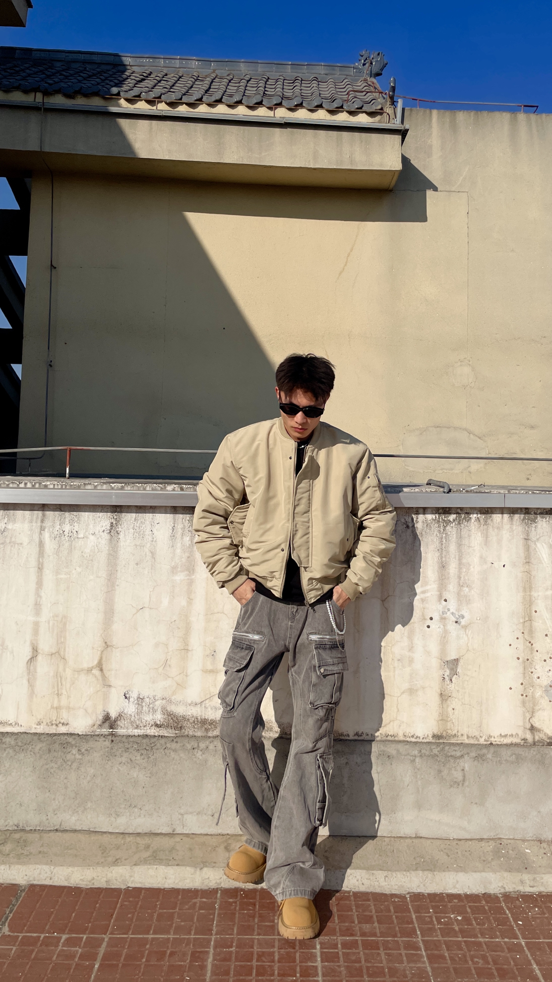 身高|体重:170cm|52㎏ 🧍♂️ 穿搭风格:港风 👔 上衣:Thurrewl 👖 下装:MANO美式复古高街 👟 鞋子:beier 🎒配饰:AKAK