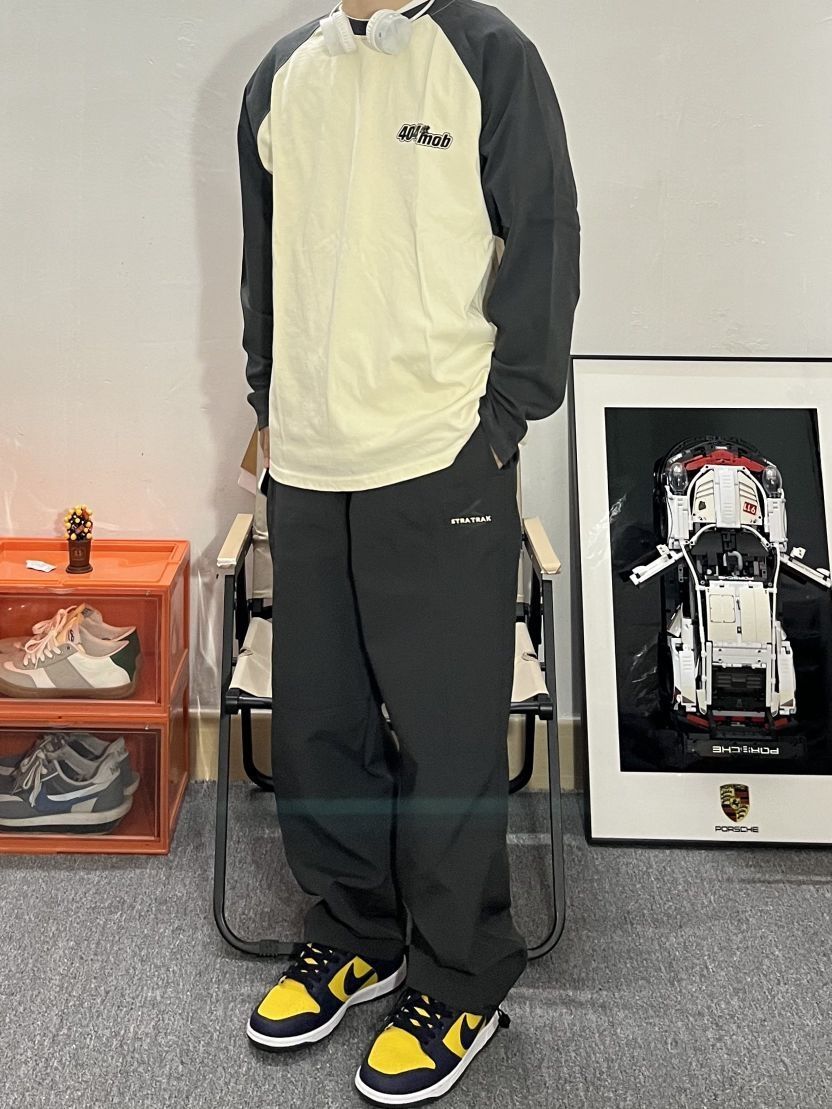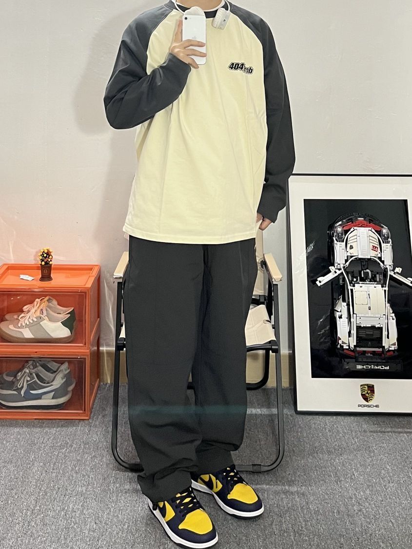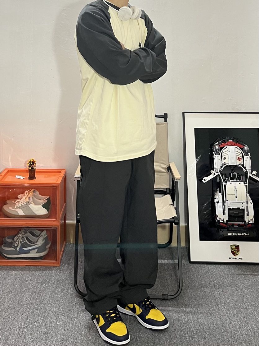哈喽这里是pupu同鞋🏄🏻♂️ ——————————— · 👔:404MOB GANG 撞色插肩长袖✔️ 今年真的好爱插肩长袖!🍂秋天太适合穿插肩长袖了~好舒服 我很喜欢这件美式插肩长袖的颜色,做的烟灰色与米黄的撞色拼接❗️ · 👖:拓路者 直筒宽松的版型很修饰腿型 遮肉显瘦 美式复古风格 简直谁穿谁好看❗ · 👟:Dunk密歇根 ——————————— 💁🏻♂️:170/115 以上都是个人...