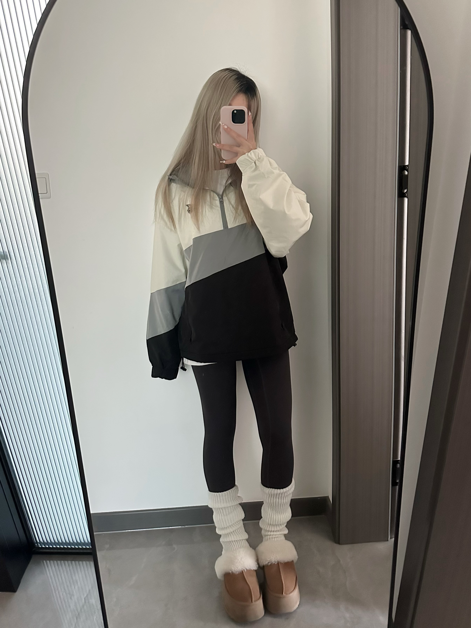 半拉链一直是我心头爱 风太大了冲锋衣夹克必备了 维动这款半拉链夹克恰到我心头 轻薄舒适 三拼色简单大方🥰 搭配瑜伽裤和袜套 层次感加成 干净舒适cleanfit一下🎀
