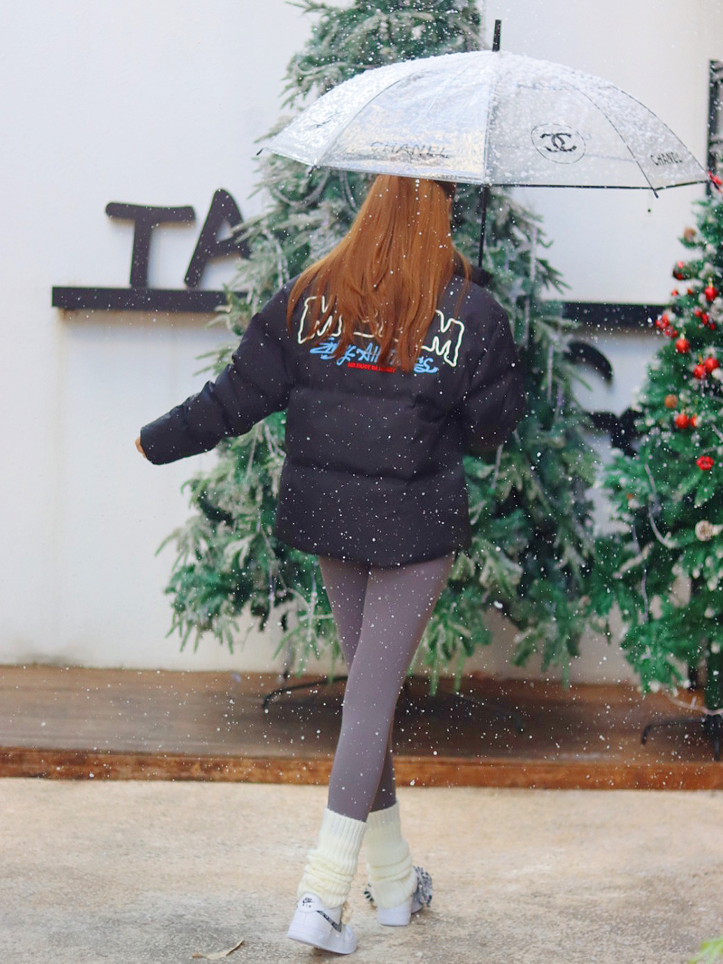 这组瑜伽裤,羽绒服,雪景照 真的超级有氛围感的 羽绒服很有冬天的感觉~⚪️⚪️⚪️ 羽绒服 MR.ENJOYDA MONEY 冬天有这一件羽绒服就够了 超级厚厚的一件 冬季保命棉服~ 这个款式我觉得真的很美式 很年轻,不会过时的款式,可以穿很多年 随便搭配一条瑜伽裤就可以出门了~