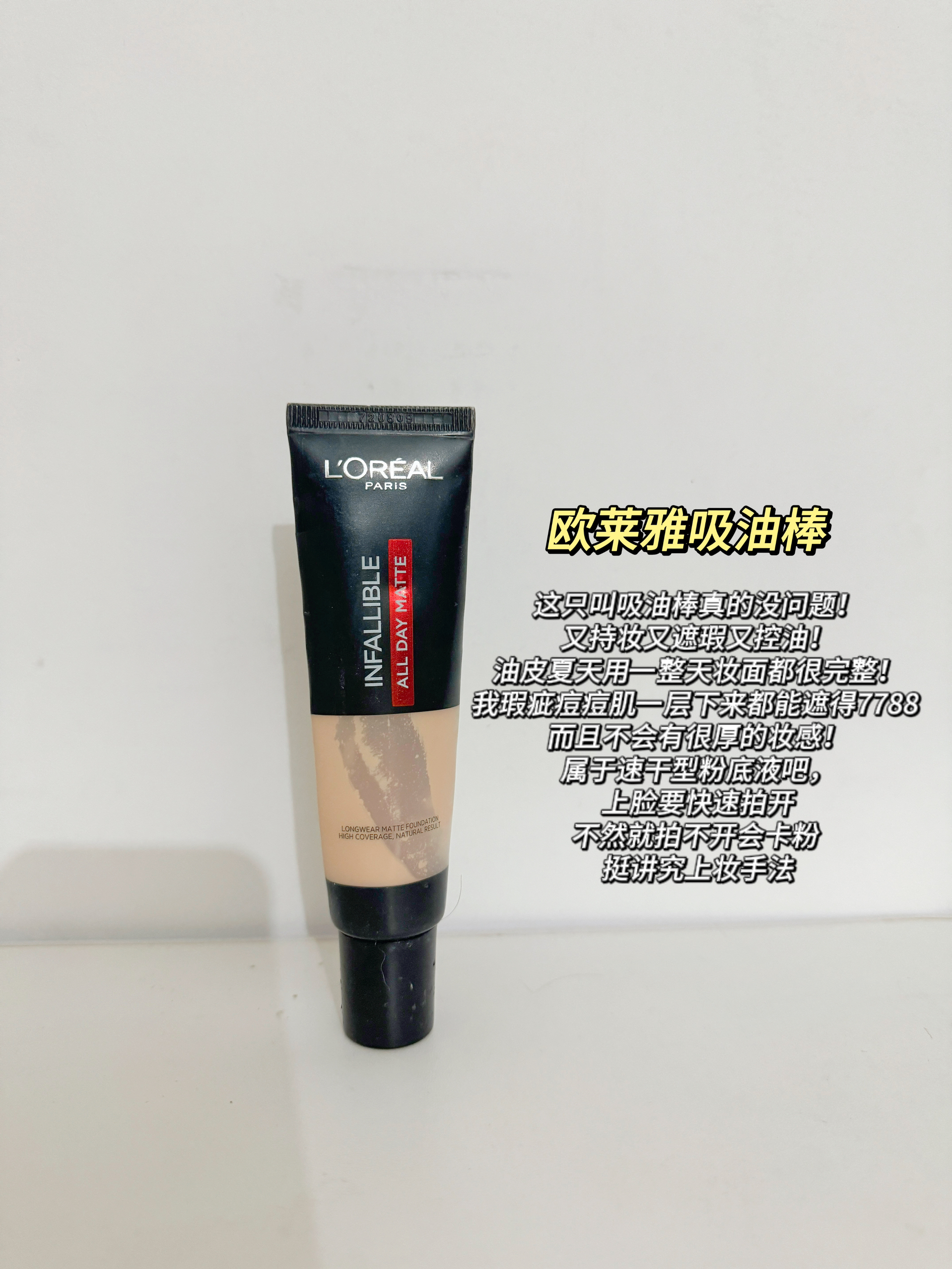 1️⃣ 乐德遮瑕 我经常用这只当粉底液用 妥妥伪素颜妆照 遮瑕力可能7分粉质挺细腻的 我自己用不会很暗沉但是好多人反馈暗沉!! 2️⃣欧莱雅吸油棒 这只叫吸油棒真的没问题!又持妆又遮瑕又控油!油皮夏天用一整天妆面都很完整!我瑕疵痘痘肌一层下来都能遮得7788 而且不会有很厚的妆感!属于速干型粉底液吧,上脸要快速拍开不然就拍不开会卡粉 挺讲究上妆手法的 3️⃣ BOBBI BROWN卸妆油 这瓶是水...
