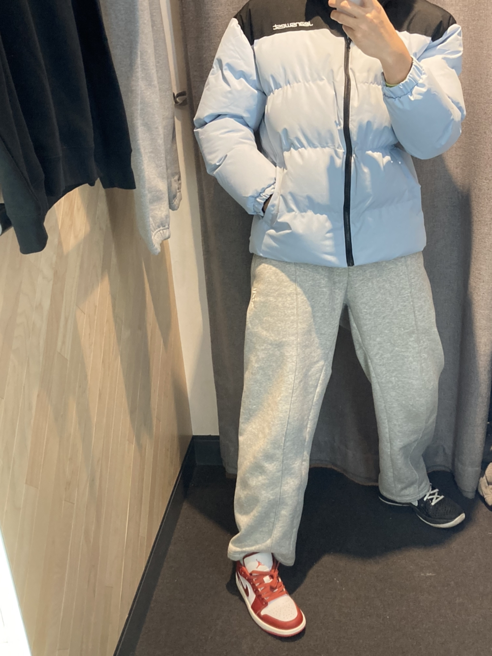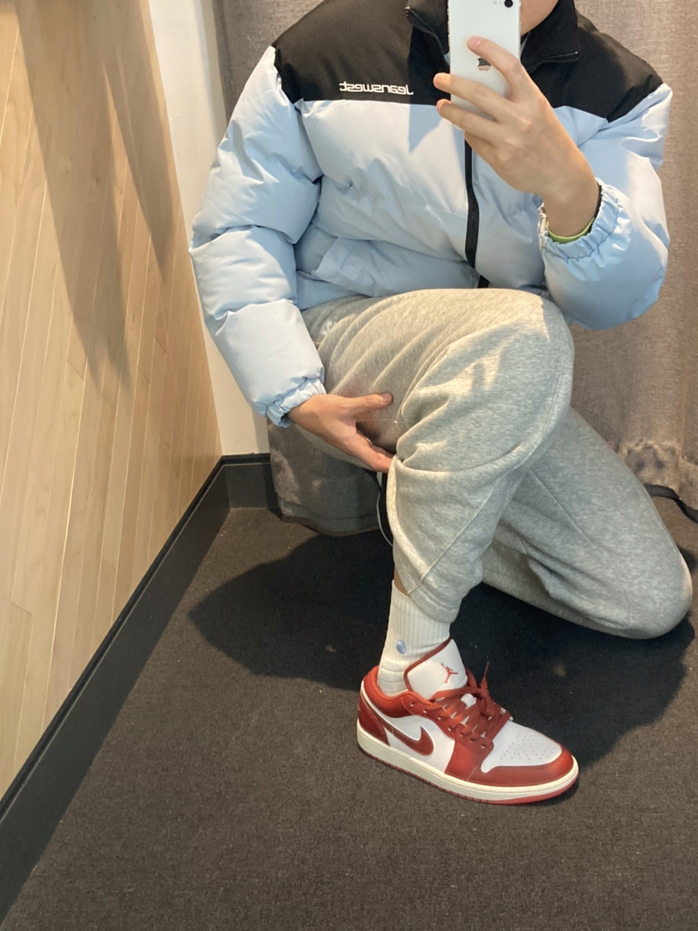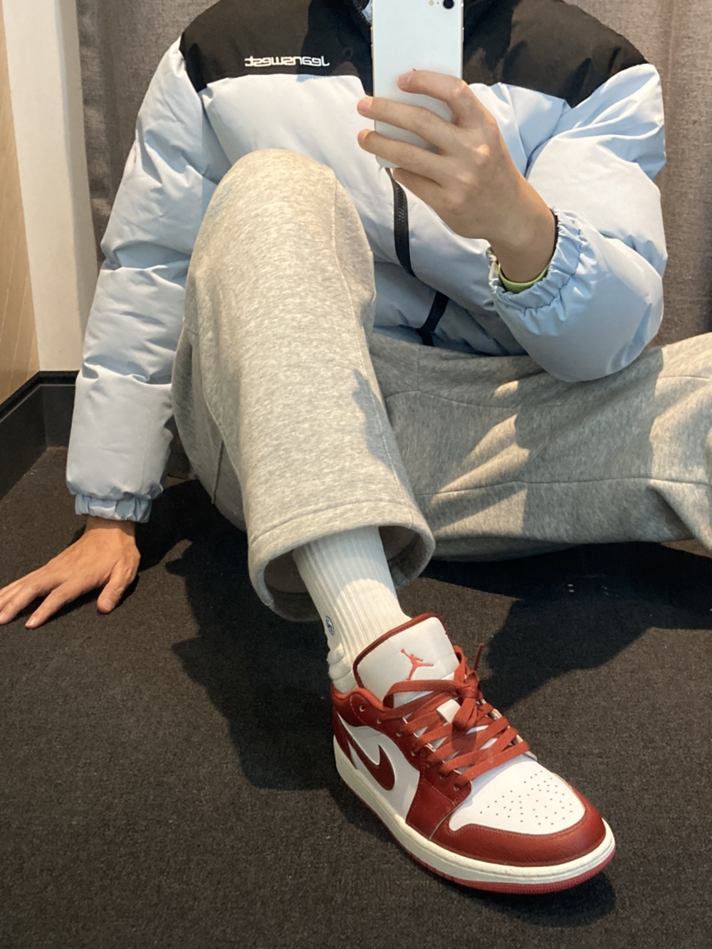 冬季的新品穿搭aj1怎么配? 👔真维斯棉服零下三十度没问题我们这 尺码偏小建议大一码 180/70kg。 xl码 👖uzis直筒加绒阔腿裤。xl码 👟aj1low白红色 尺码正常选择即可,42码 皮质这次是牛皮革,摸上去感觉很有质感 大红色很有质感,跨年元旦很有仪式感 喜欢好皮质的兄弟们别错过