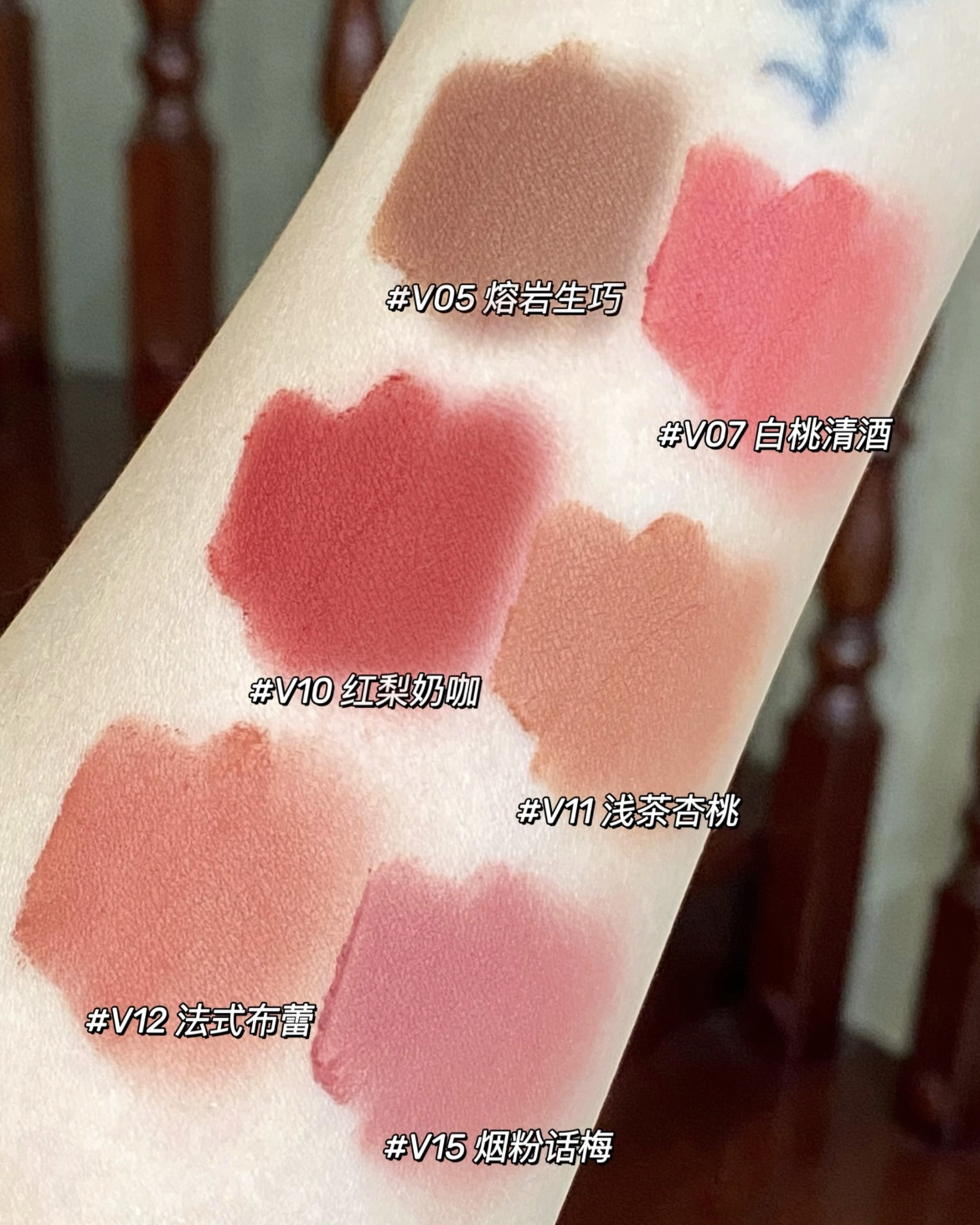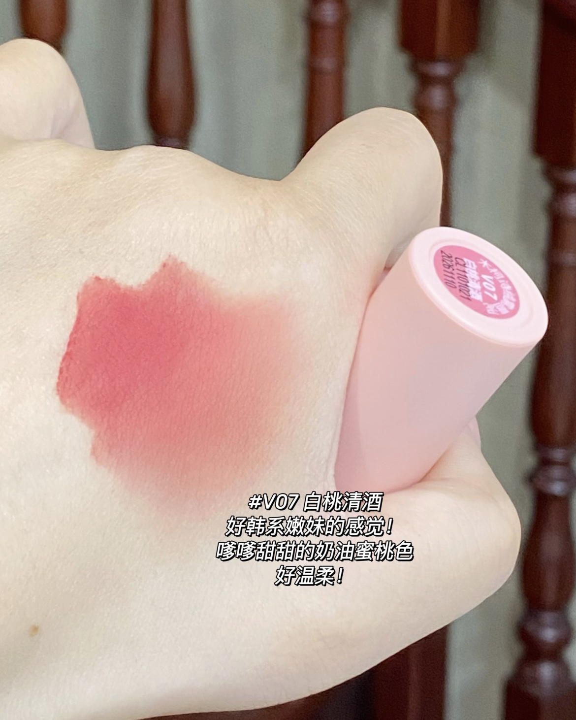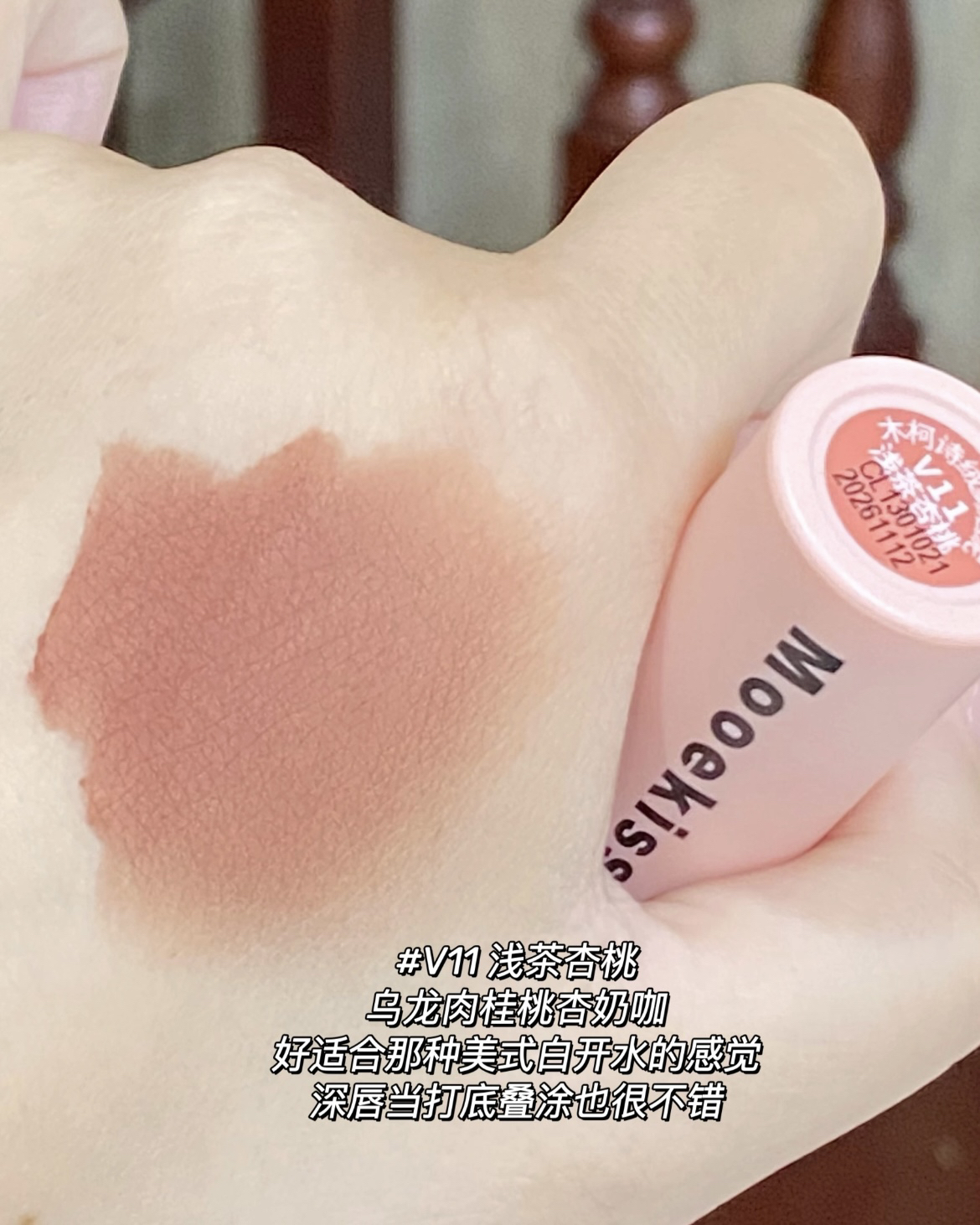 哦莫!是新牌子 木柯诗唇泥 嘎嘎好涂 感觉好可爱 粉嫩嫩的壳子少女感拉满 V07 白桃清酒 好韩系嫩妹的愿觉!嗲嗲甜甜的奶油蜜桃色好温柔! V11 浅茶杏桃 乌龙肉桂桃杏奶咖 好适合那种美式白开水的感觉深唇当打底叠涂也很不错