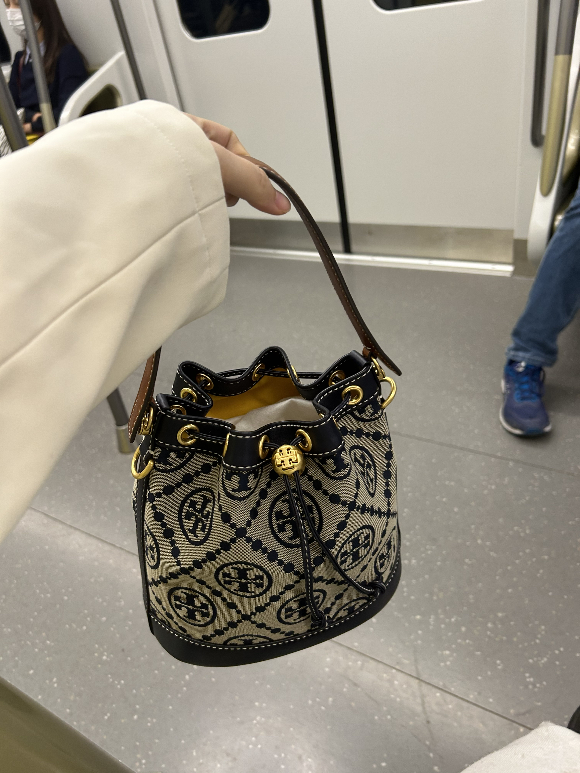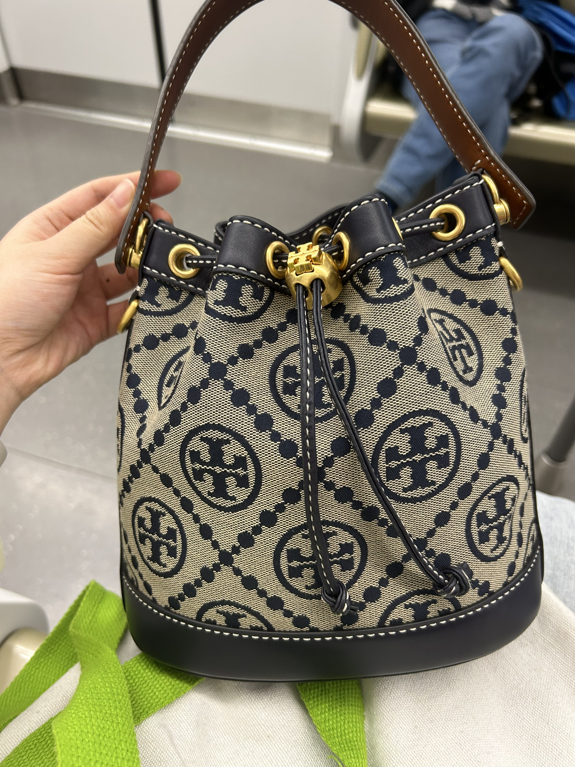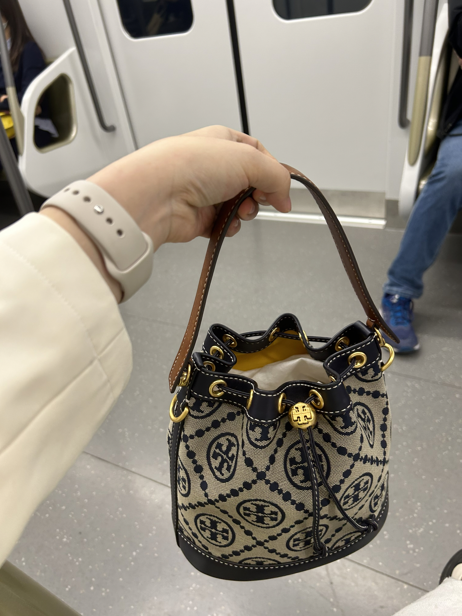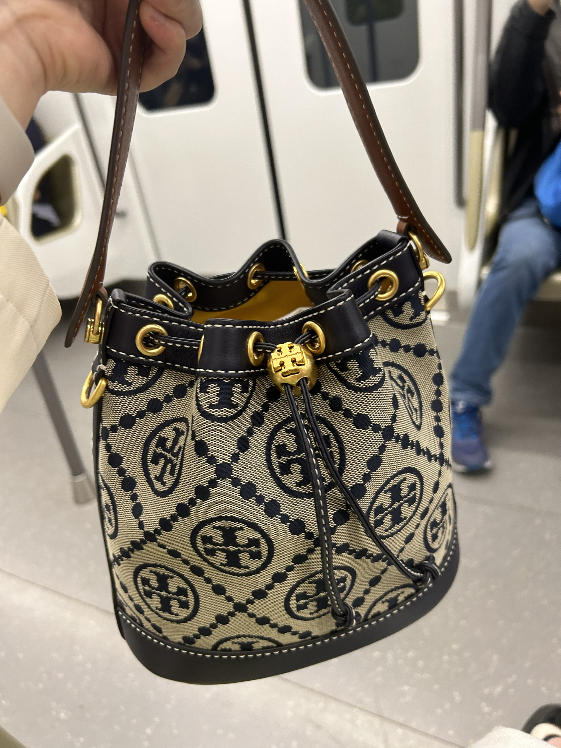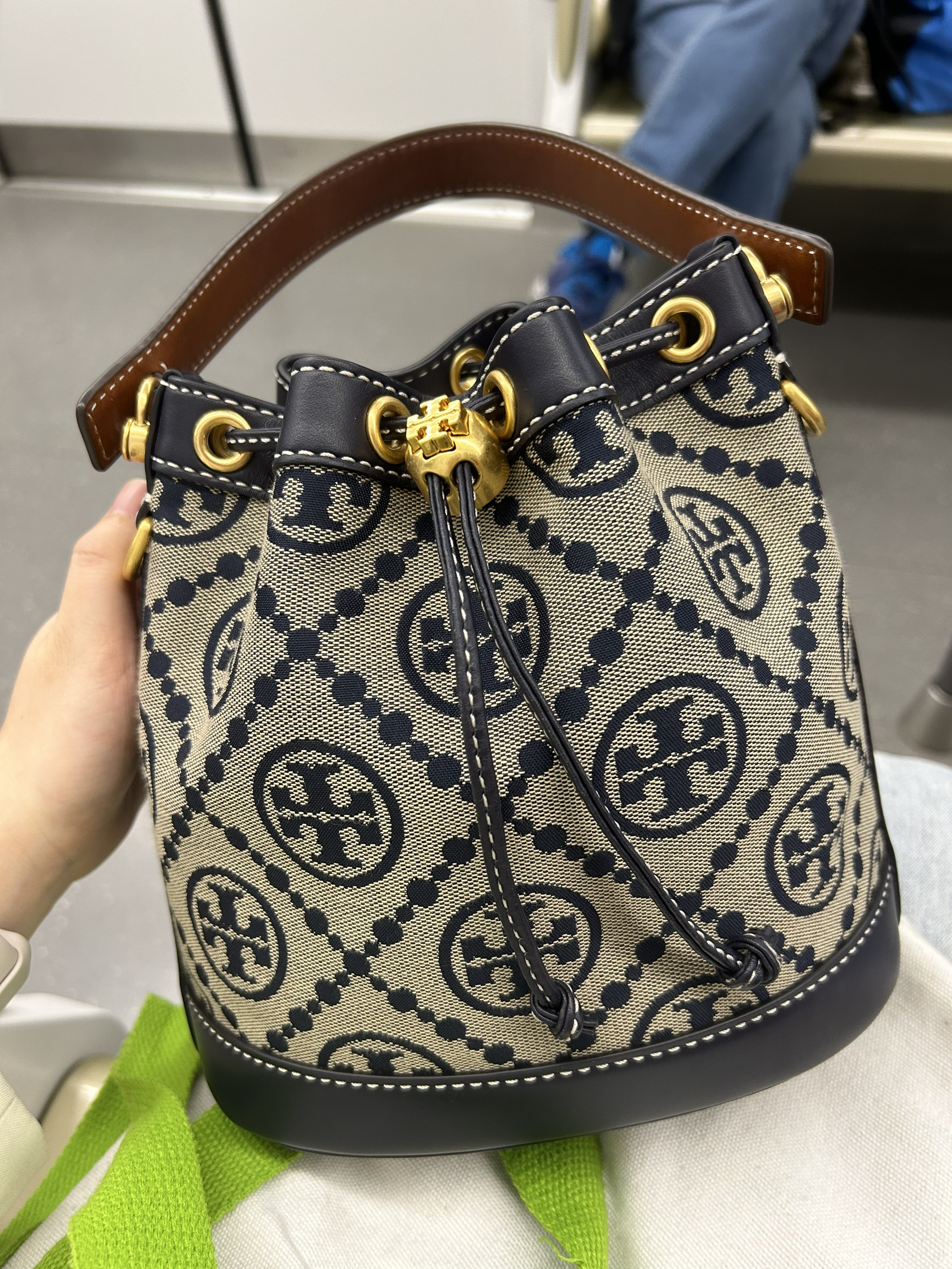 本篇笔记关联了【周雨彤同款】TORY BURCH/汤丽柏琦 T Monogram 老花提花满印皮革抽绳设计开合可调节斜挎包水桶手提包单肩包 深蓝色等商品,为用户提供真实的使用体验和购买参考。