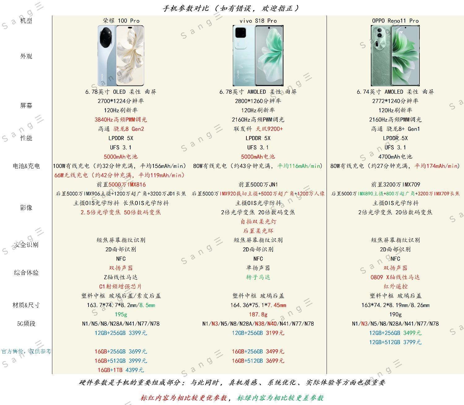 【荣耀 100 Pro「对比」vivo S18 Pro「对比」OPPO Reno11 Pro】,由用户 Sang三 分享,来自上海。这是一篇来自识货社区的真实用户分享笔记。