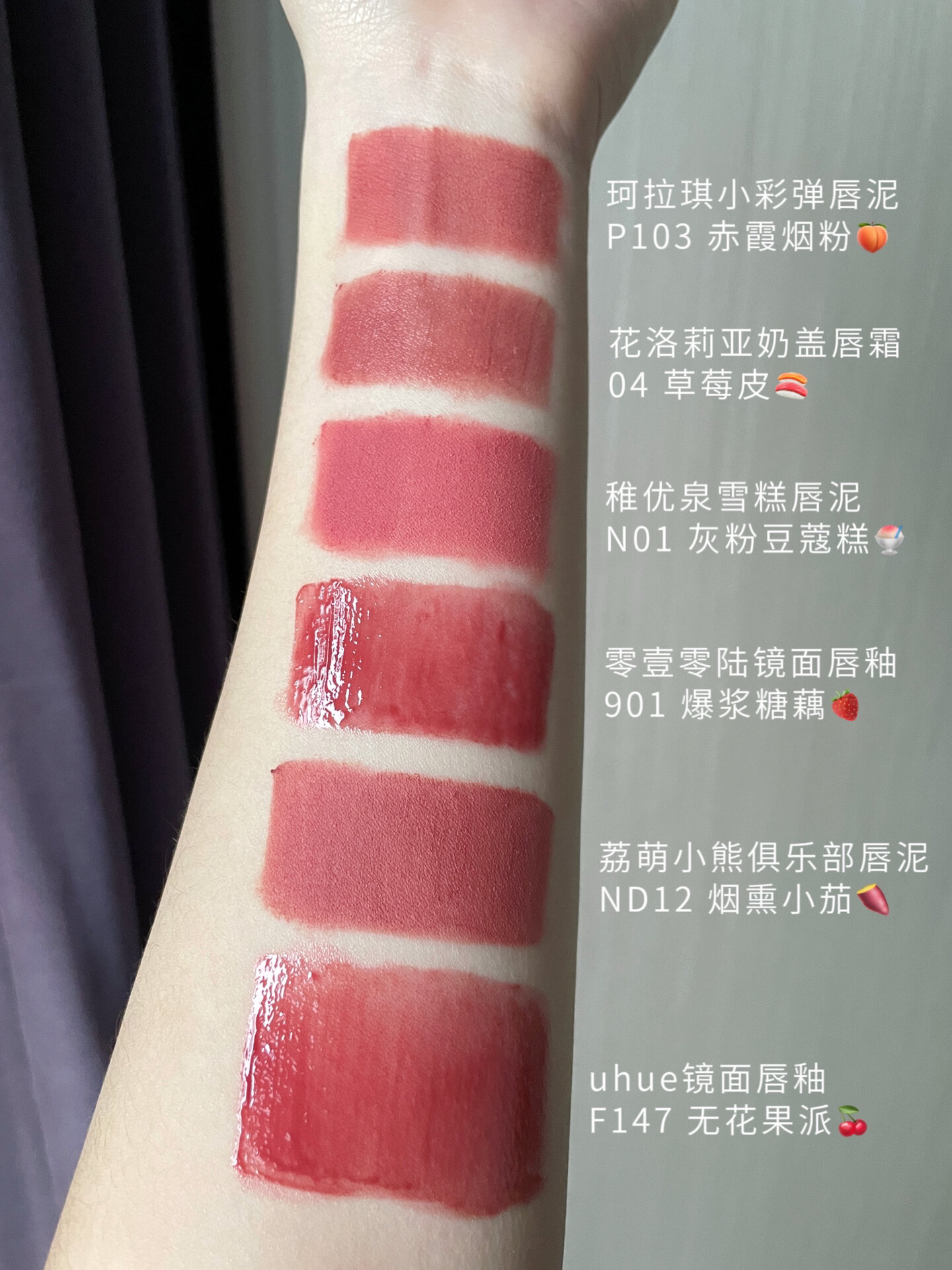 唯爱一些清纯嫩妹色... 低饱和不咋挑皮 日常百搭挂~ - 🍧珂拉琪 p103 前几篇po过上嘴 烟粉色好提气色 🍣花洛莉亚 04草莓皮 质地绵密丝滑 上嘴接近原唇色 很自然 🧁稚优泉 n01 明艳度比其他要高一丢 很春夏的蜜桃粉 🧀零壹零陆 901 镜面感水润清透 橄榄皮清冷感灰粉快乐色 🍭荔萌 nd12 黄皮深唇能涂 火很早的烟熏感灰粉色 🍬uhue f147 嘎嘎水嫩的一支唇釉 白桃无花果超...