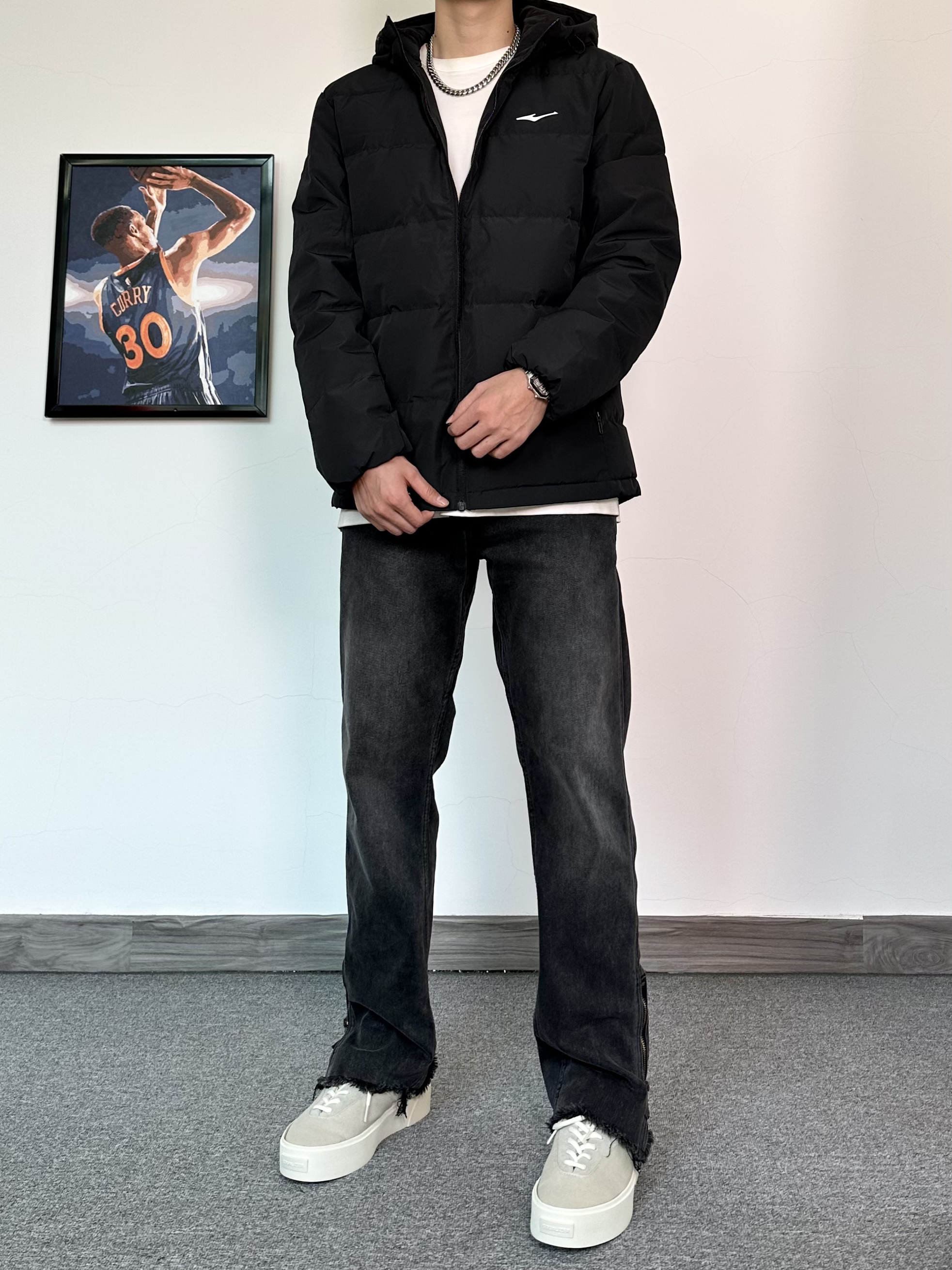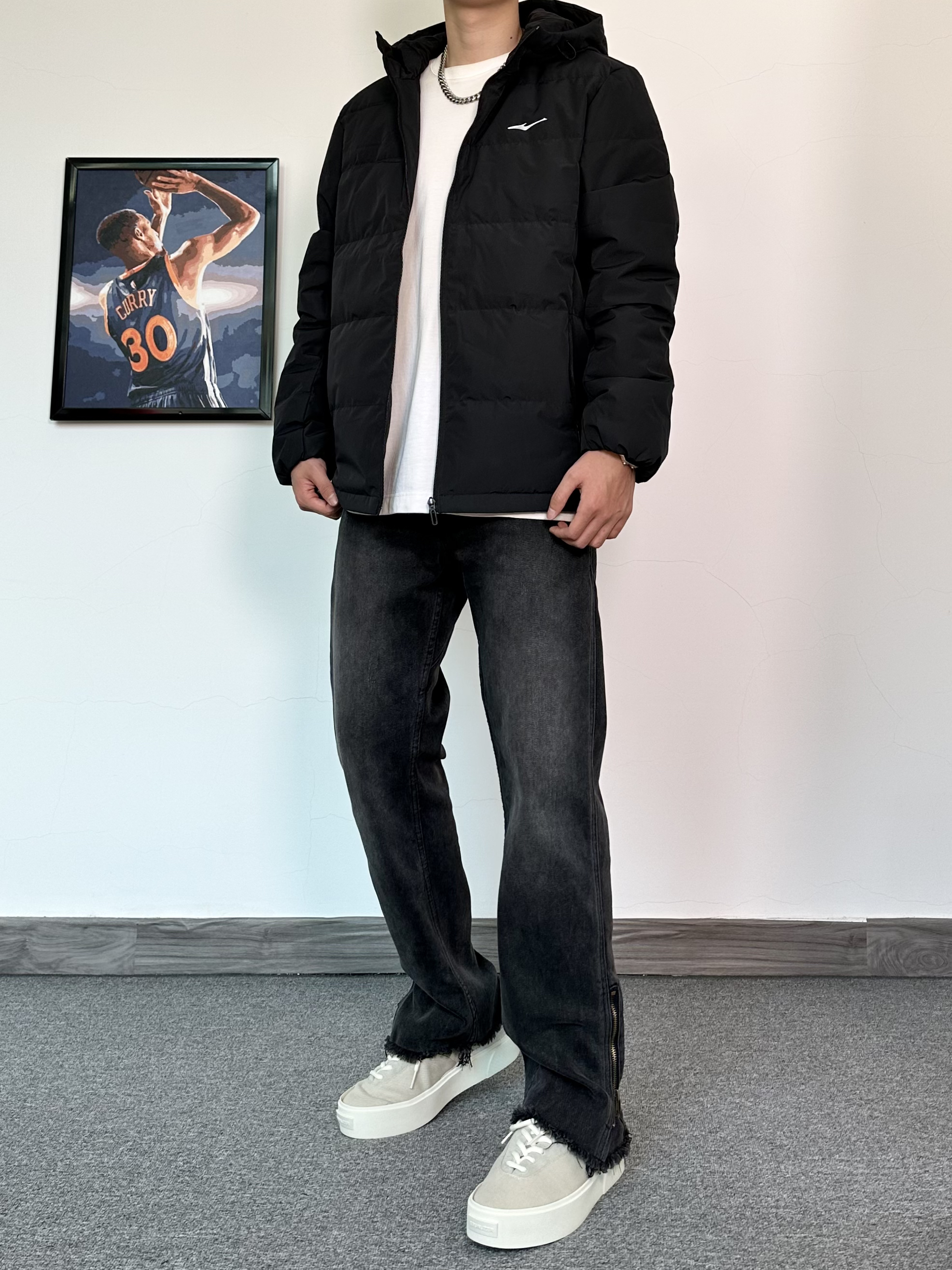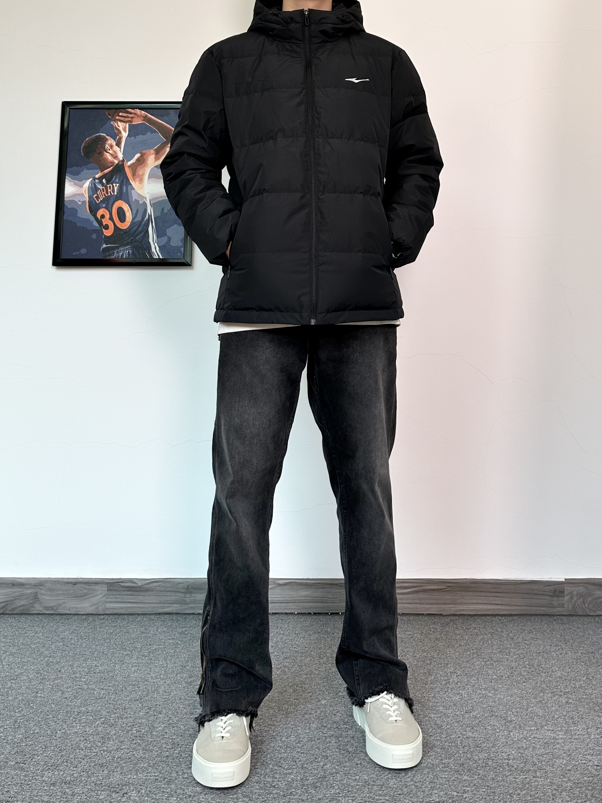 基础款的羽绒服也可以穿的不简单 冬季来一件纯色户外羽绒服保暖又帅气 防水的材质安全感满满! 版型很修身轻便,上身效果比较显瘦 刺绣logo的设计简约百搭又耐看 搭配一条微喇版型的黑色牛仔裤 最后再来一双我最爱的潮流板鞋 古白的配色很耐看,搭配羽绒服真不错!