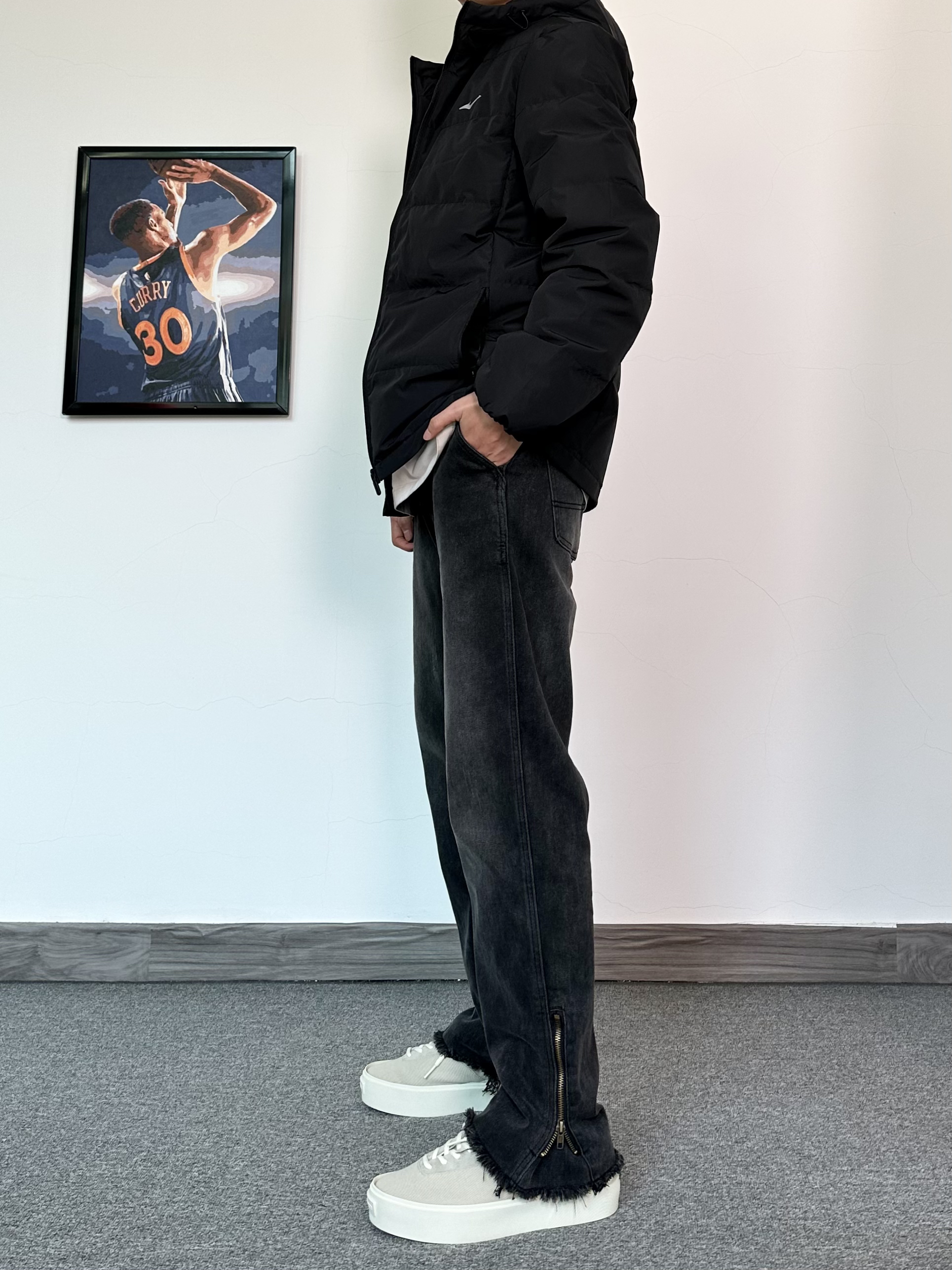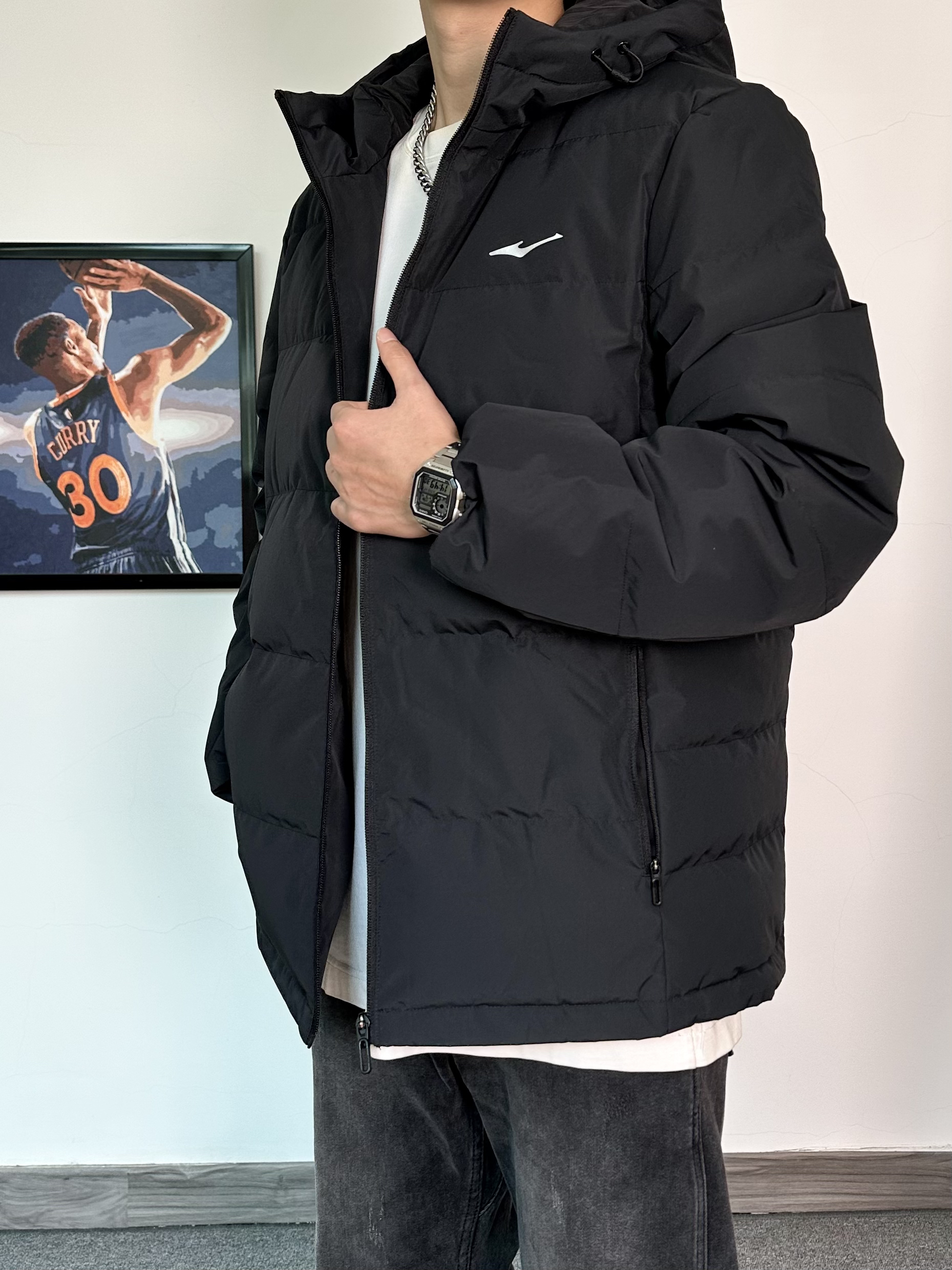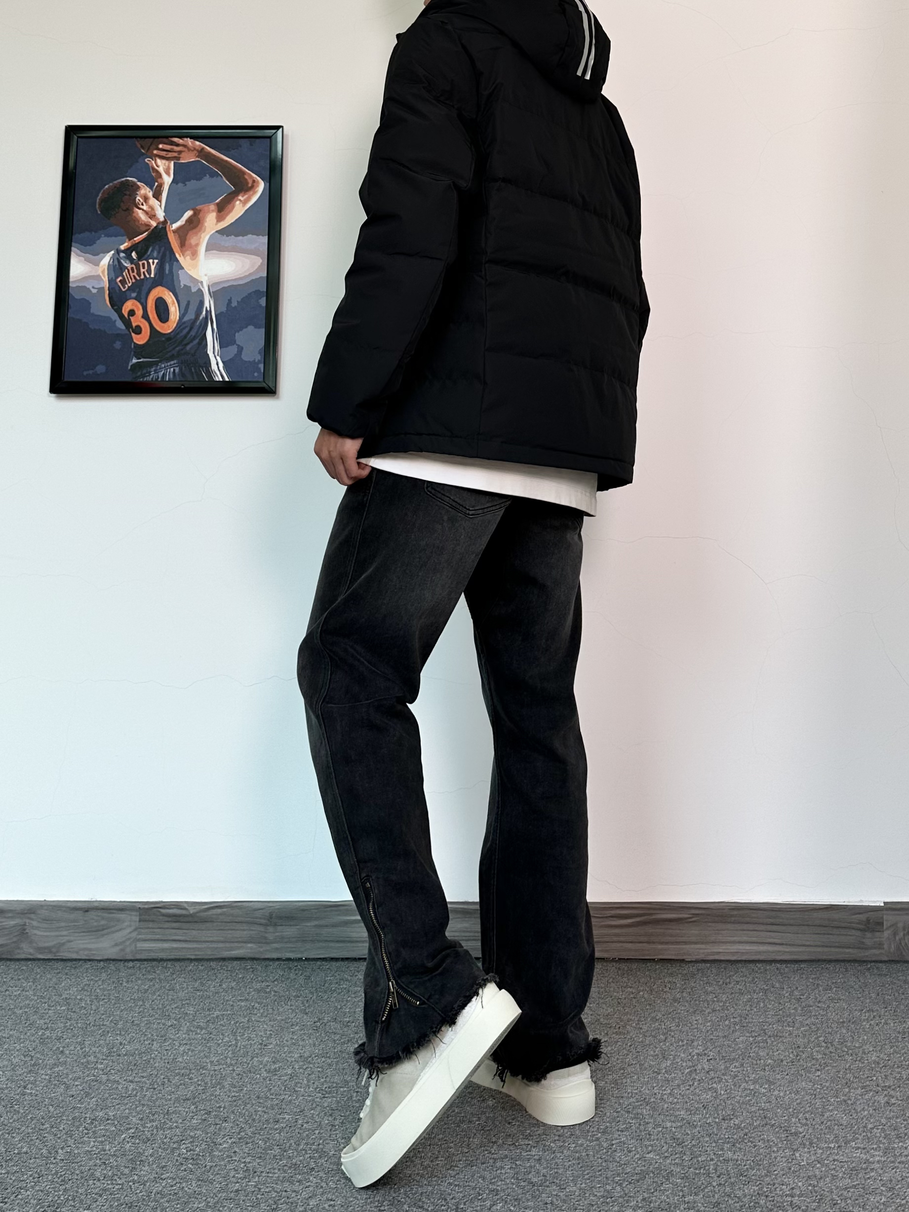 基础款的羽绒服也可以穿的不简单 冬季来一件纯色户外羽绒服保暖又帅气 防水的材质安全感满满! 版型很修身轻便,上身效果比较显瘦 刺绣logo的设计简约百搭又耐看 搭配一条微喇版型的黑色牛仔裤 最后再来一双我最爱的潮流板鞋 古白的配色很耐看,搭配羽绒服真不错!