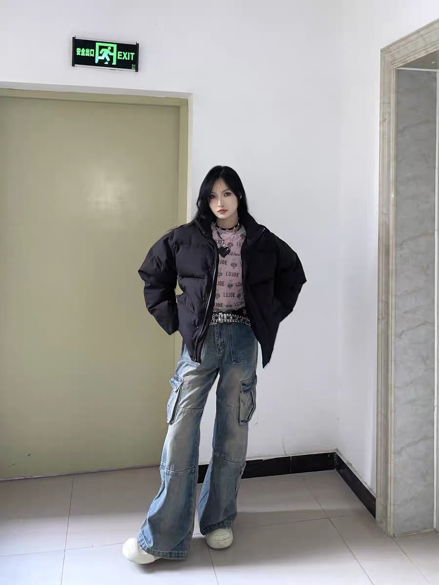 黑色系简简单单就能搭配出圈啦🔥 羽绒服蓬松度和充绒量都很不错 唯一的缺点可能稍稍容易皱💥 但这种简单又有细节的款真的很好搭配 偏短的款 男女都可穿 超级实穿🧩