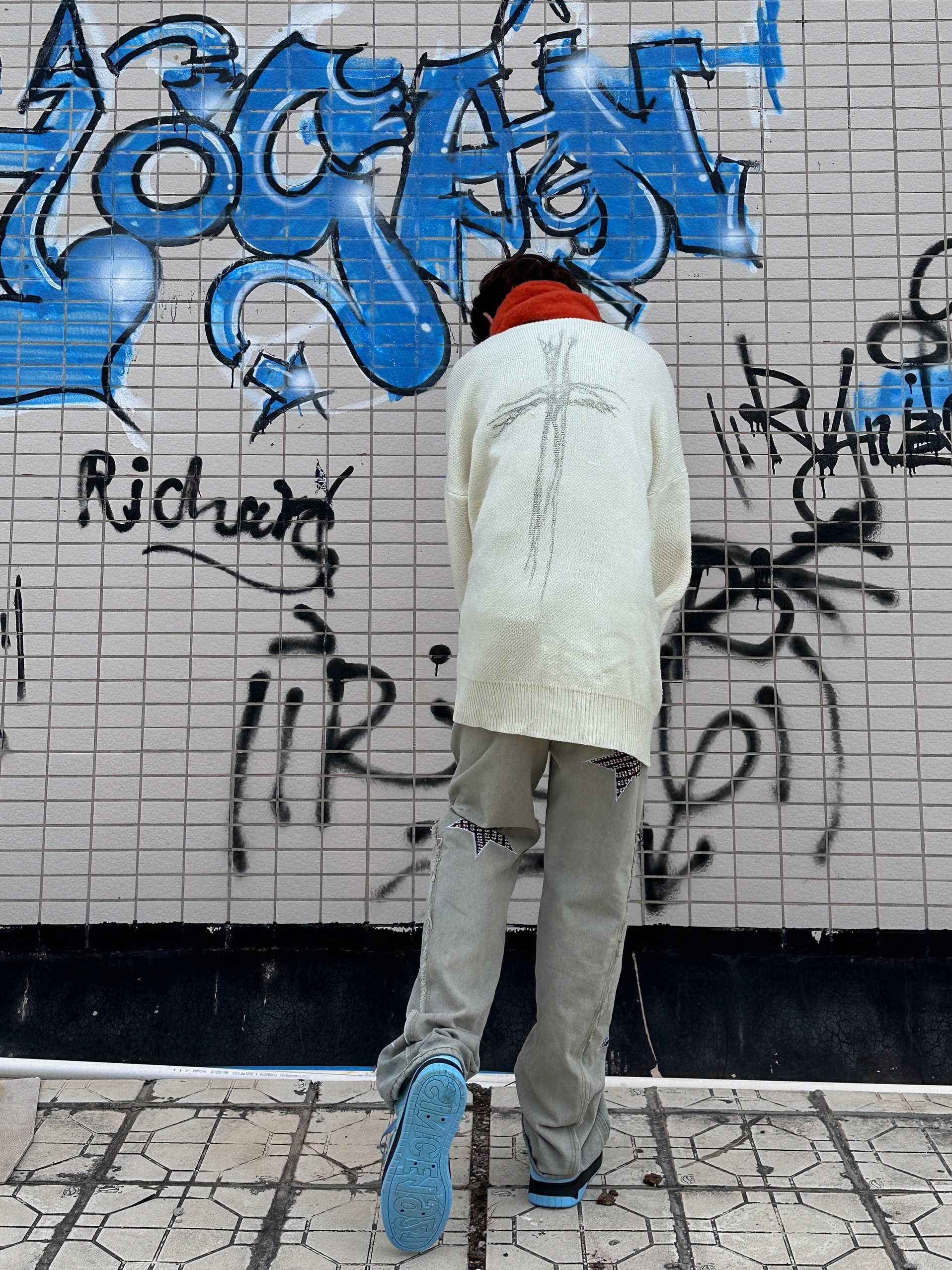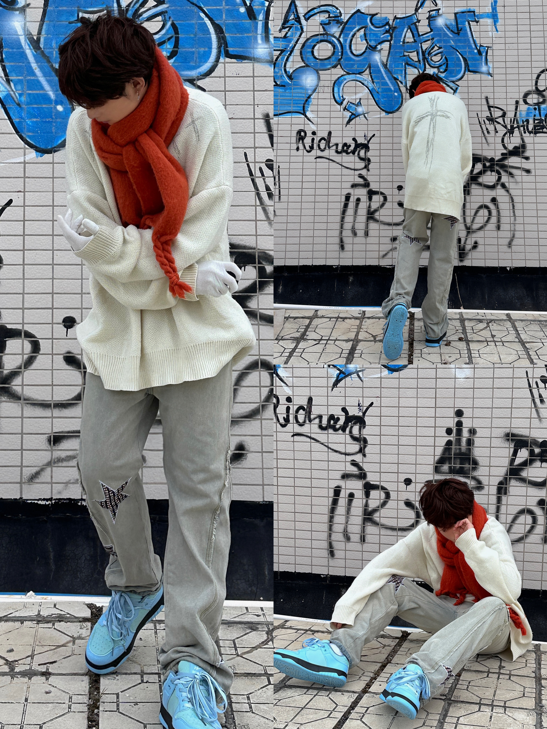 嗨咯👋我是小樊 分享今日校园穿搭⬇️ 👔: COOLALPACA 闪电十字架圆领毛衣 白色毛衣加上黑色十字架✝️图案最近超爱穿,宽大厚实,内穿一件秋衣搭配 FREE RABBITⅡ 红色围巾保暖就够了,氛围感也是给的足足的! 👖:搭配浅灰色系星星牛仔裤,修身的同时也非常百搭 👟: 双星八特 蓝色板鞋,细节方面鞋带有两种深浅蓝色,丰富视觉层次感,主体🔵蓝色加上⚫️黑色的修饰,同样是十分的百搭...