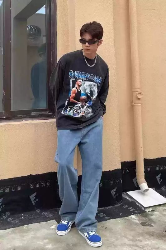 圣诞🎄节氛围感拿捏 宽松版牛仔裤真的显瘦! 圣诞节元旦 双🥚节 快到了 这一套直接拿捏住 喜欢宽松版牛仔裤👖的男生或者比较高瘦的男生 可以试试这条宽松版牛仔裤 直筒版型 面料厚实 柔软 适合秋冬穿 还有微微弹力不束缚 不卡链 不滑链 适合中高个子的牛仔裤👖