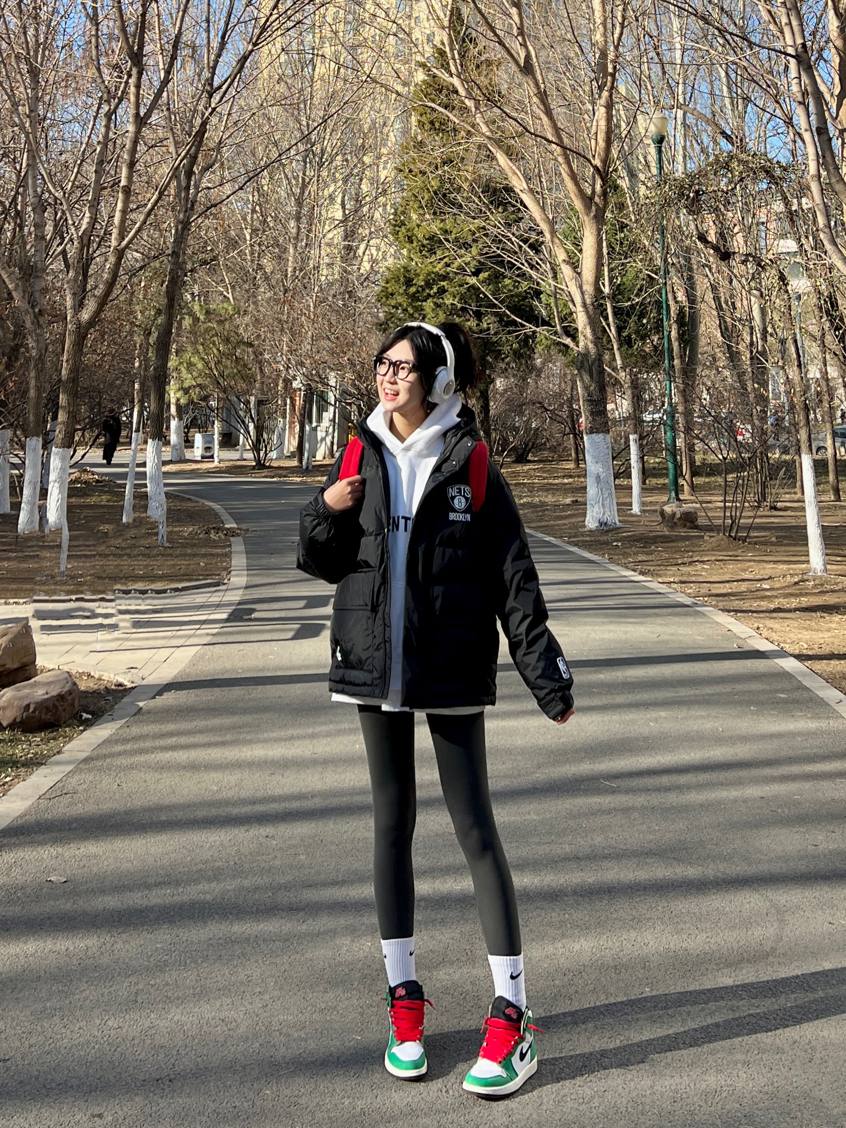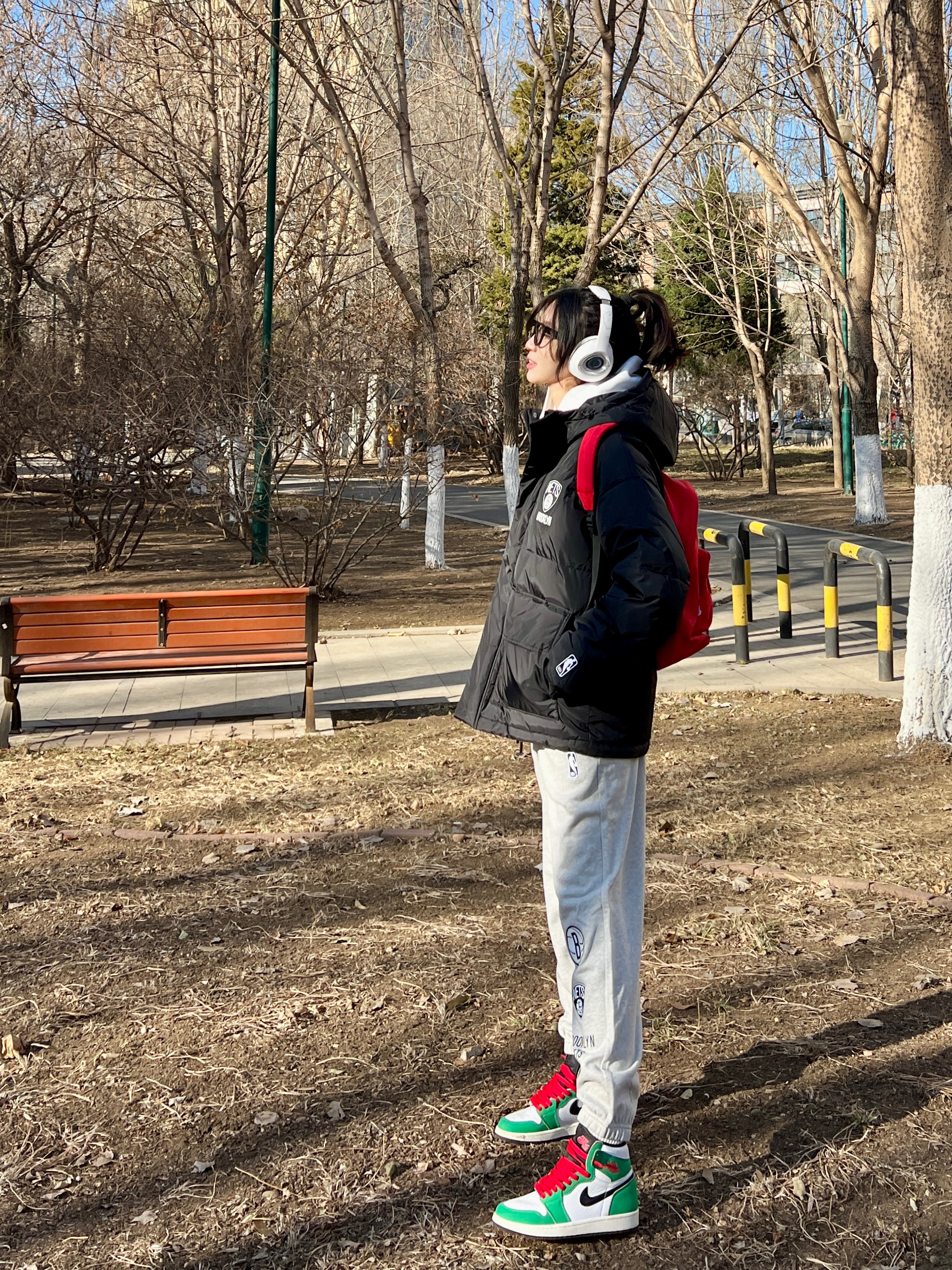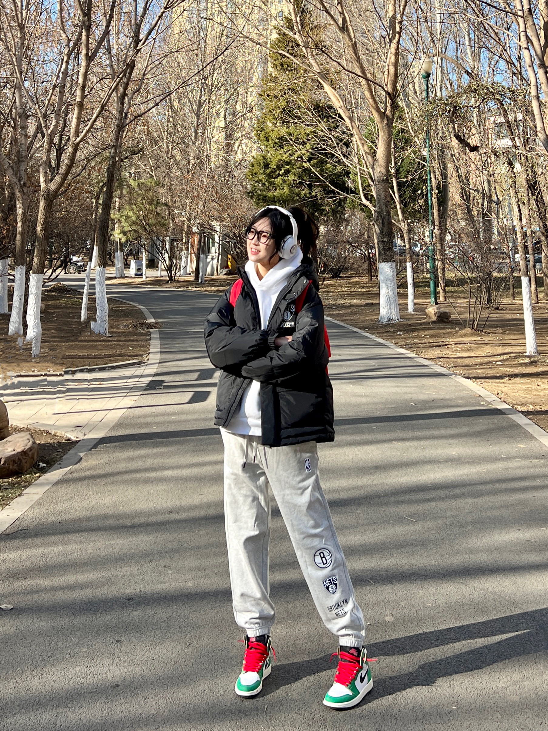 178/110 小喜力好适合圣诞穿呀~ 这个鞋子尊嘟经典配色,怎么看也看不厌 上衣搭配的简单黑白色系就OK~ 突出鞋子的亮点 搭配essentials连帽卫衣➕黑色羽绒服就可以啦 这个棉服也是适合学生的平价棉服 这一身穿出去回头率好高