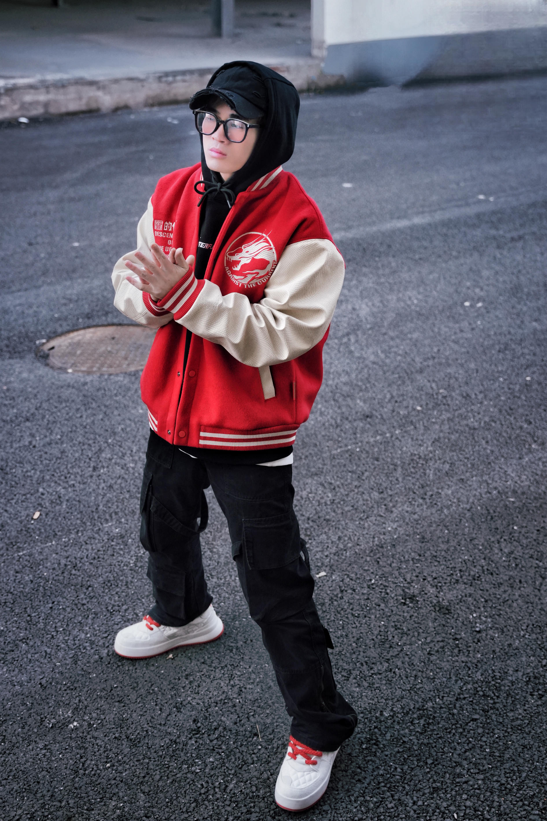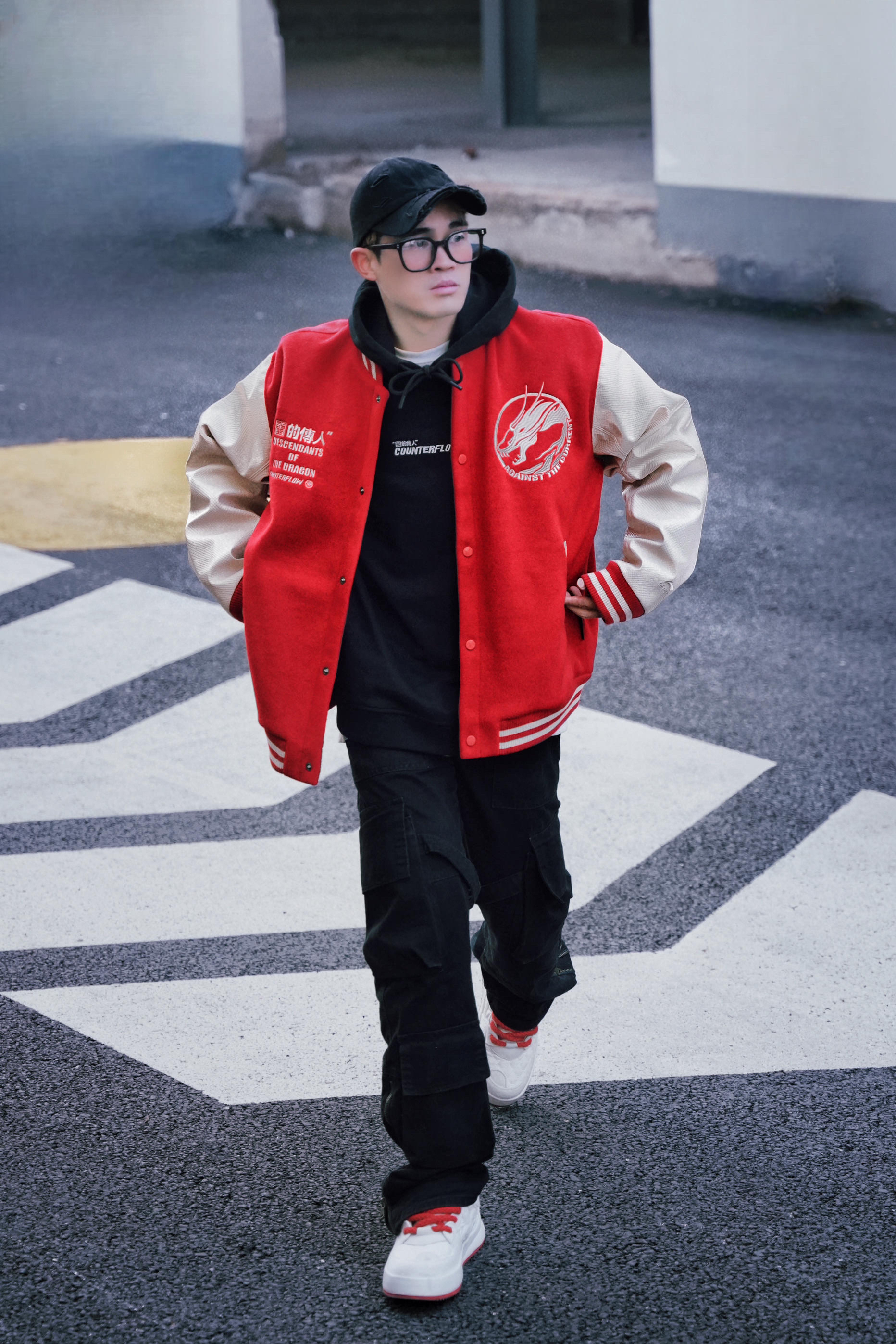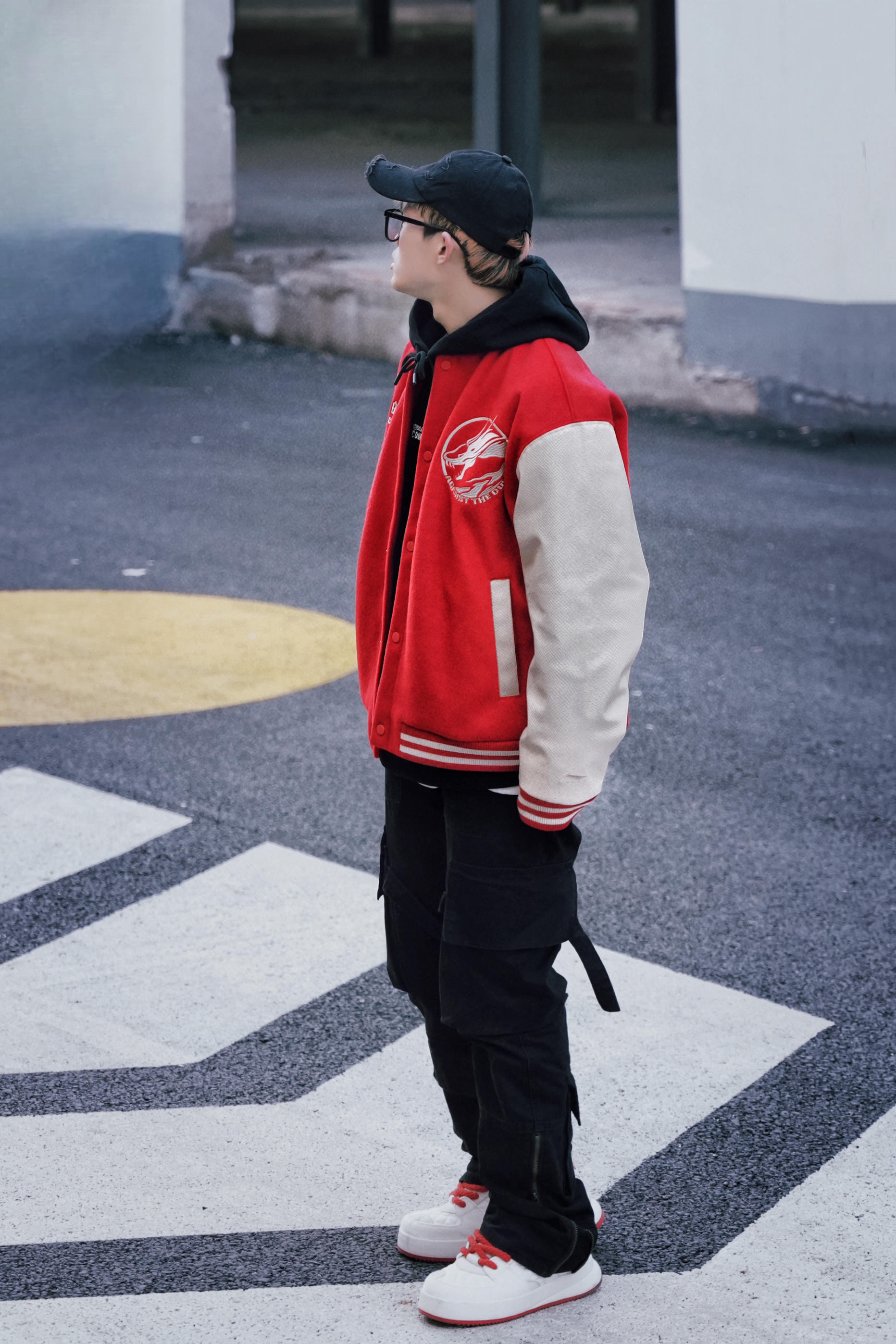 冬天穿搭离不开棒球服 撞色拼接的宽松外套✔️ 加上后背巨有辨识度的logo图案 吸睛指数是真的高🤭 - 搭配的话可以叠穿这种黑色连帽卫衣 正面的设计很干净❗ 背面就比较中式潮流 谁穿谁就是“龙的传人”hhh~🐉🐲 - 鞋子可以试试这种撞色休闲鞋❄️ 和外套是同色系的 搭配起来很有层次和氛围哦。 - #棒球服穿搭