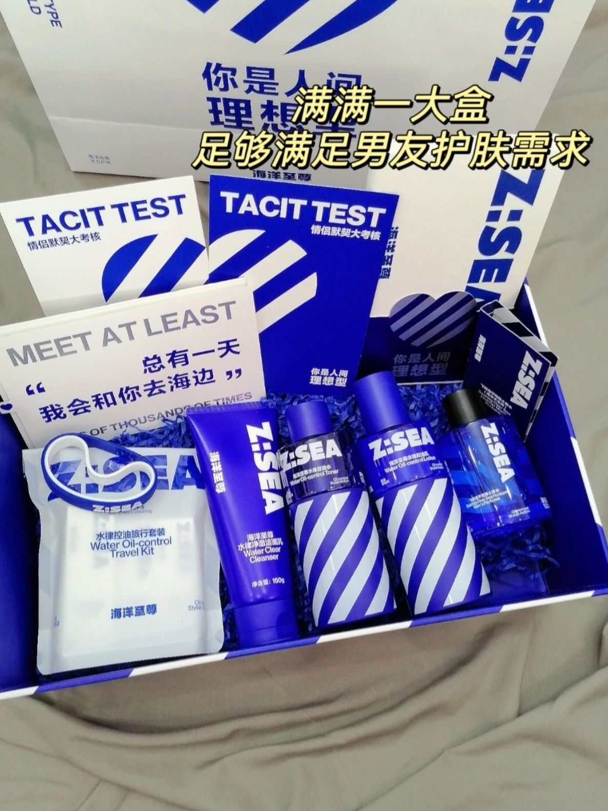 分享下送过男友的礼物🎁 其中最有仪式感的就是他家的护肤品套装了 蓝白的包装 给人一种设计感满满又不失高级感的感觉 里边的小物件也很多 打开以后满满一大盒 除了洗面奶水乳还有一瓶香水 还带有情侣默契考验的答题 一个具有纪念意义的笔记本 洗面奶的质地很软糯 上脸一点都不刺激 水乳的质地也很轻薄 控油的同时还可以给皮肤进行补水 香水的味道很清新 喷在身上 有种海洋的感觉 这个套装送给男...