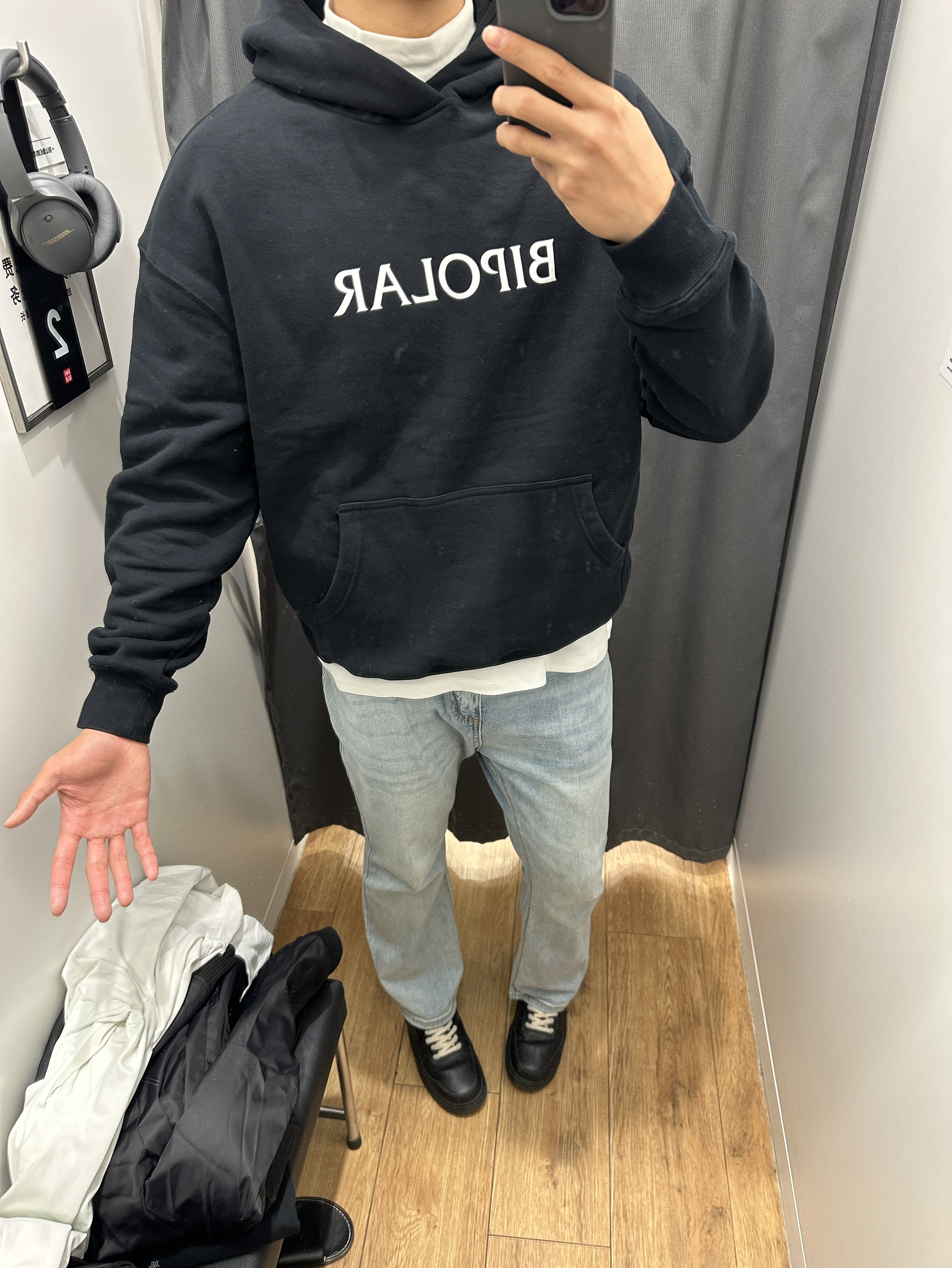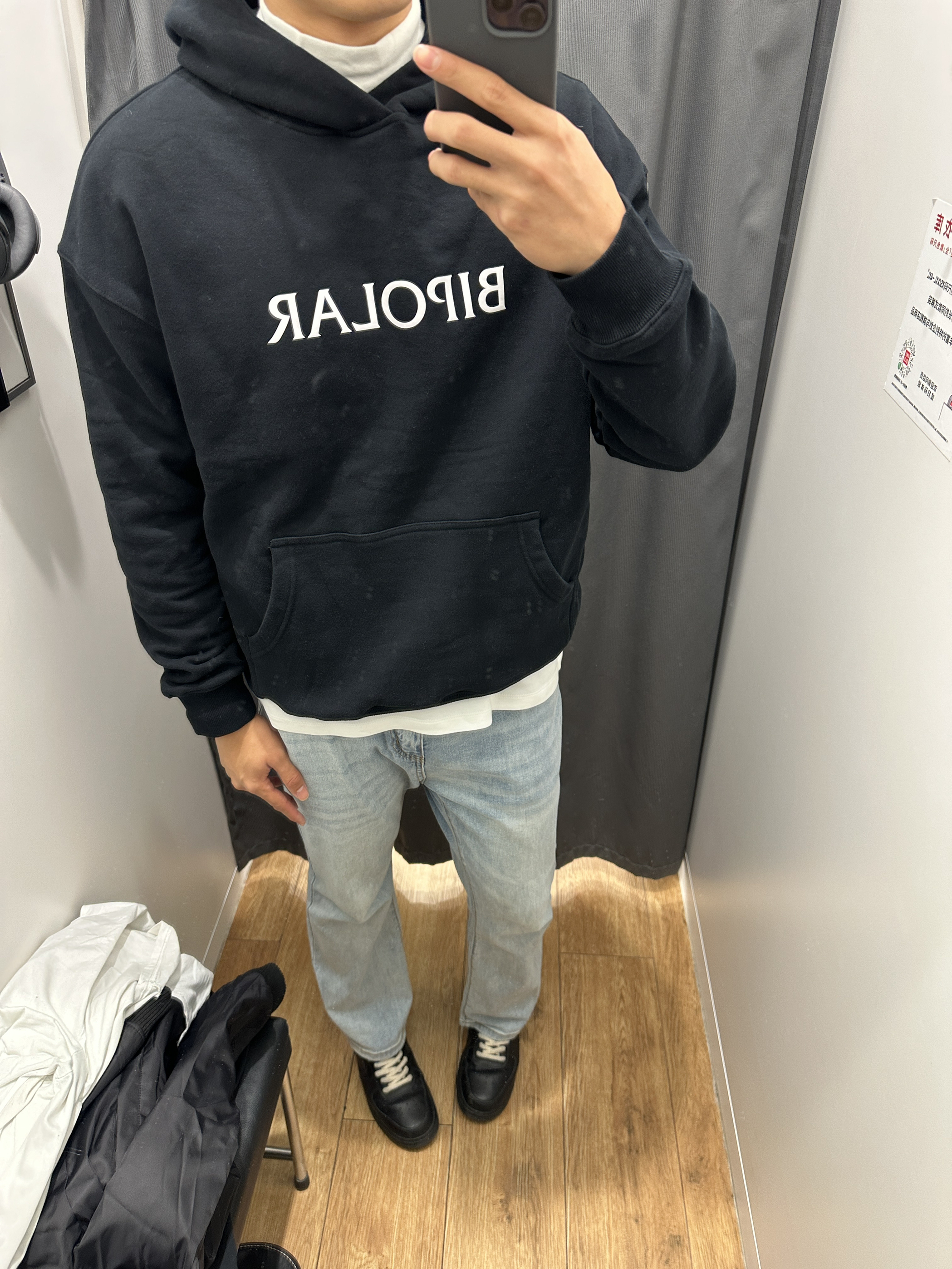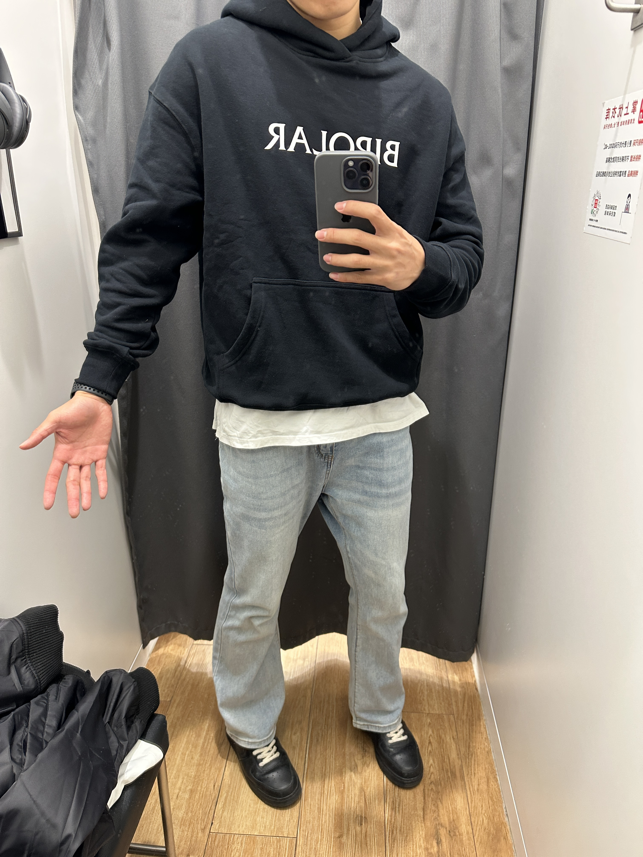 身高|体重:190/85kg xl 🧍♂️ 穿搭风格:黑色系 👔 上衣:bipolar美式街头卫衣 👖 下装:冰蓝牛仔裤 👟 鞋子:黑空军 🎒配饰: