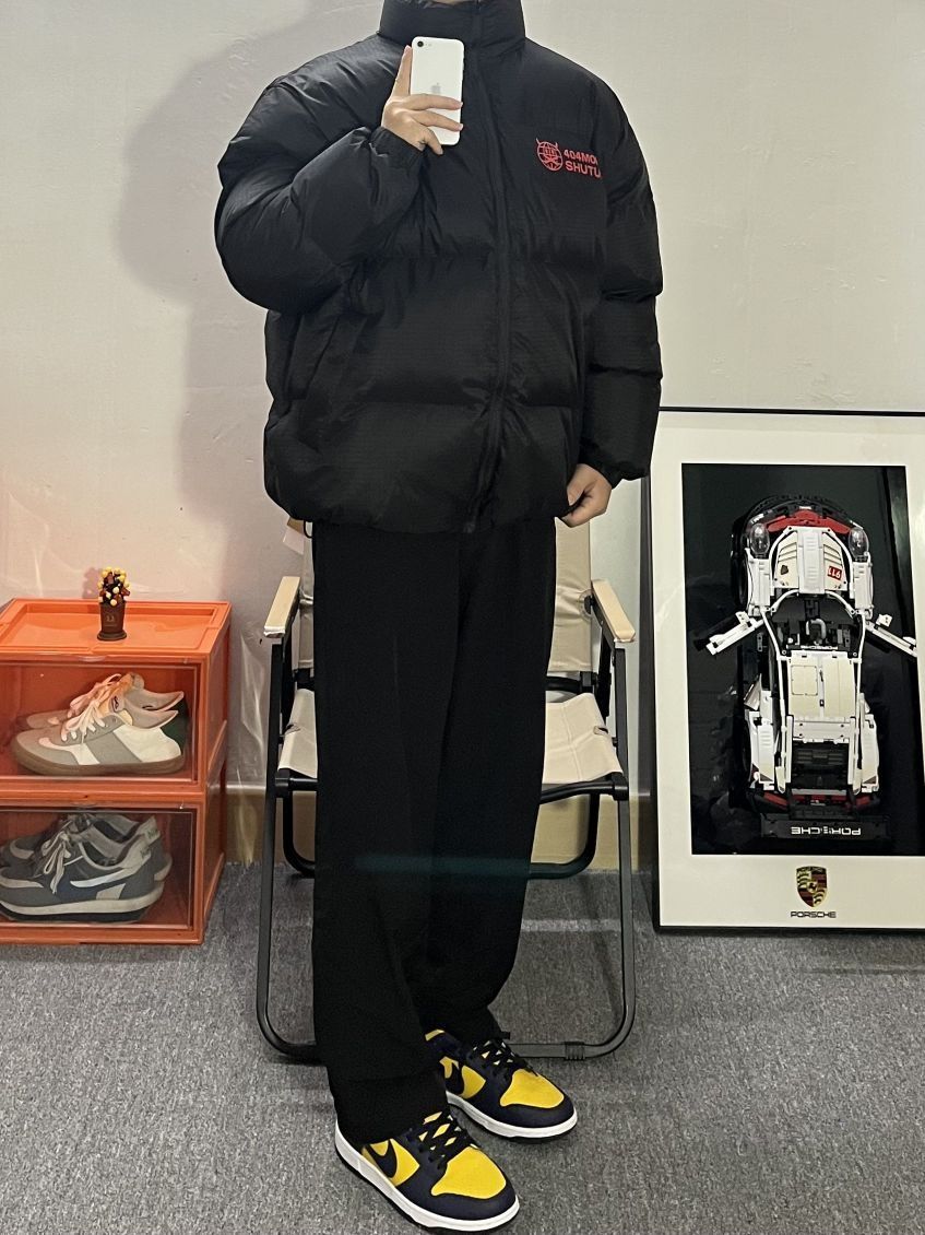 哈喽这里是pupu同鞋🏄🏻♂️ ——————————— · 👔:404MOB美式棉服 棉服填充特别饱满 印花超帅美式街头风 上身就能感受到那种厚实的包裹感舒服🤩 版型是短宽版型 显高显瘦 下摆有包围防风! · 👖:直筒休闲裤 也是经常上身的一款裤子百搭耐看 直筒宽松版型可以驾驭很多场合 · 👟:Dunk密歇根 ——————————— 💁🏻♂️:170/115 以上都是个人观点🍟欢迎讨论