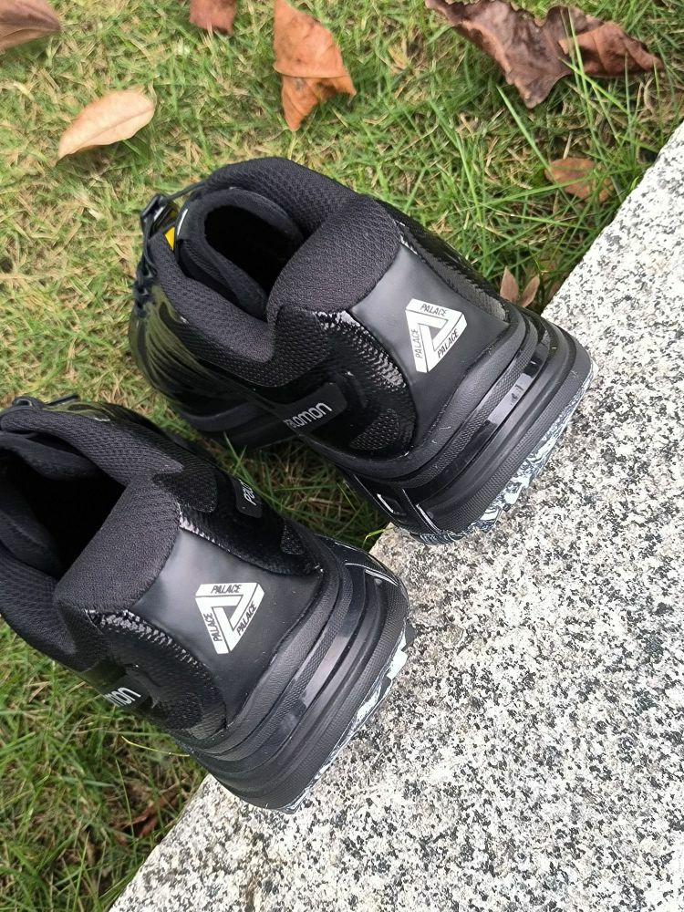 PALACE与Salomon别出心裁的联名XT2黑武士 -->外观⚪漆黑的织物鞋身,👟头鞋身热熔胶环绕包裹 热熔胶做了光面处理,提高鞋面强度看着很飒😲 鞋后跟白色PALACE △ LOGO表明联名身份🧐 采用大理石纹路的大底,看起来非常炫酷😎 -->感受🔵钉状的大底,中底搭载ACS科技👀 脚感比较硬朗,抓地力强,适合户外出行 休闲风穿搭及宽松的户外风穿搭都很飒👍🏻 尺码偏小,建议偏大半码到一码购...