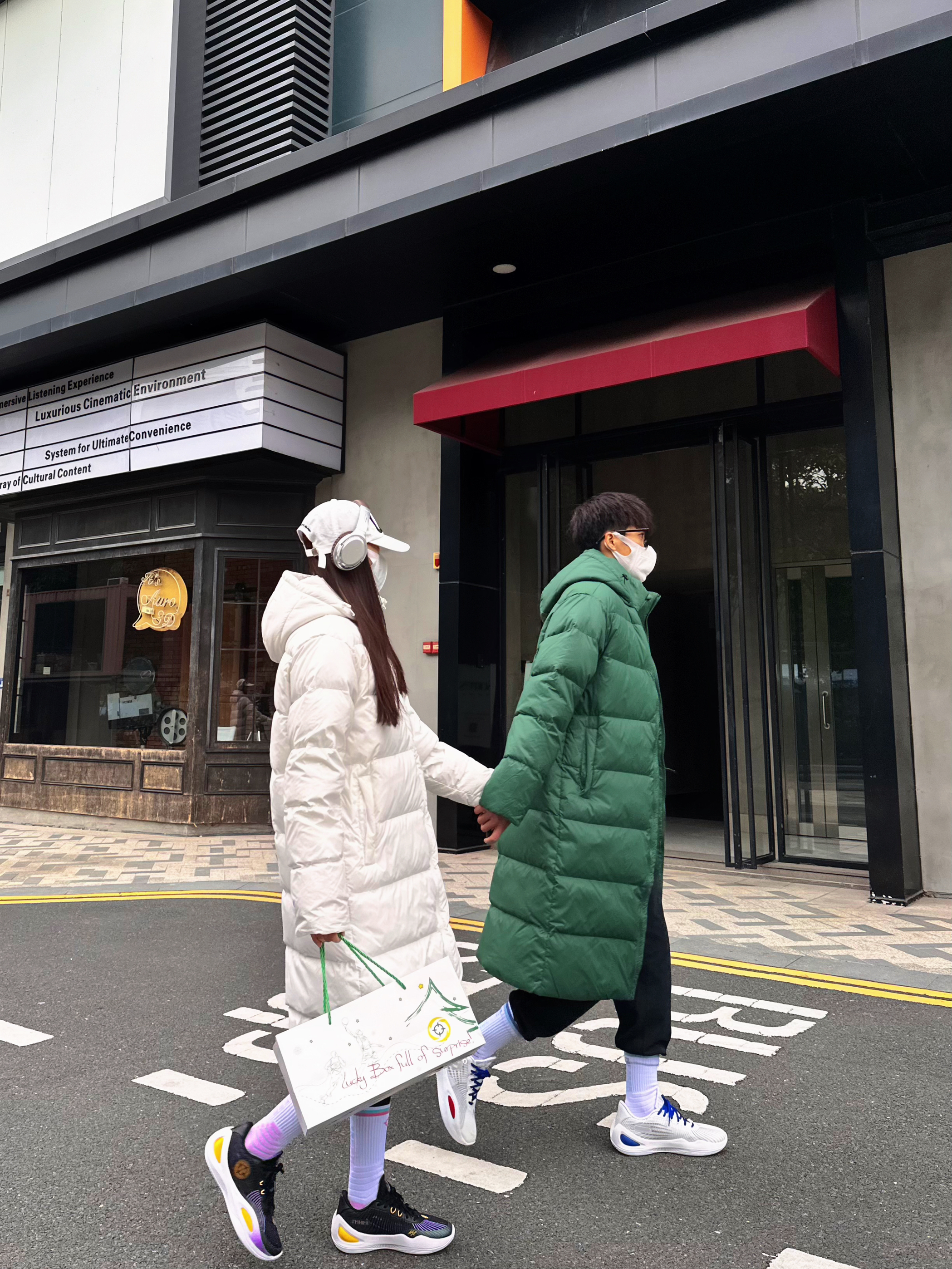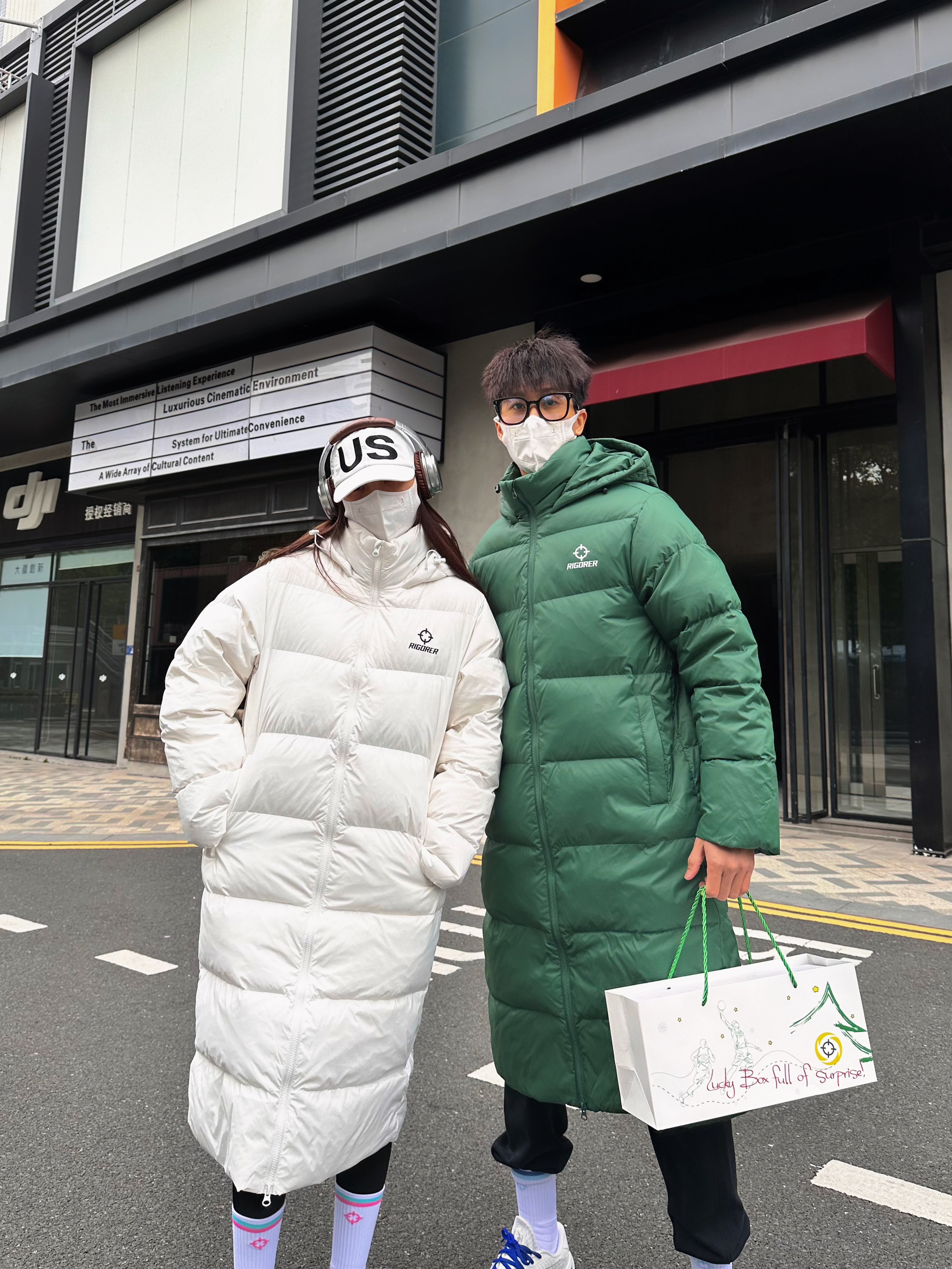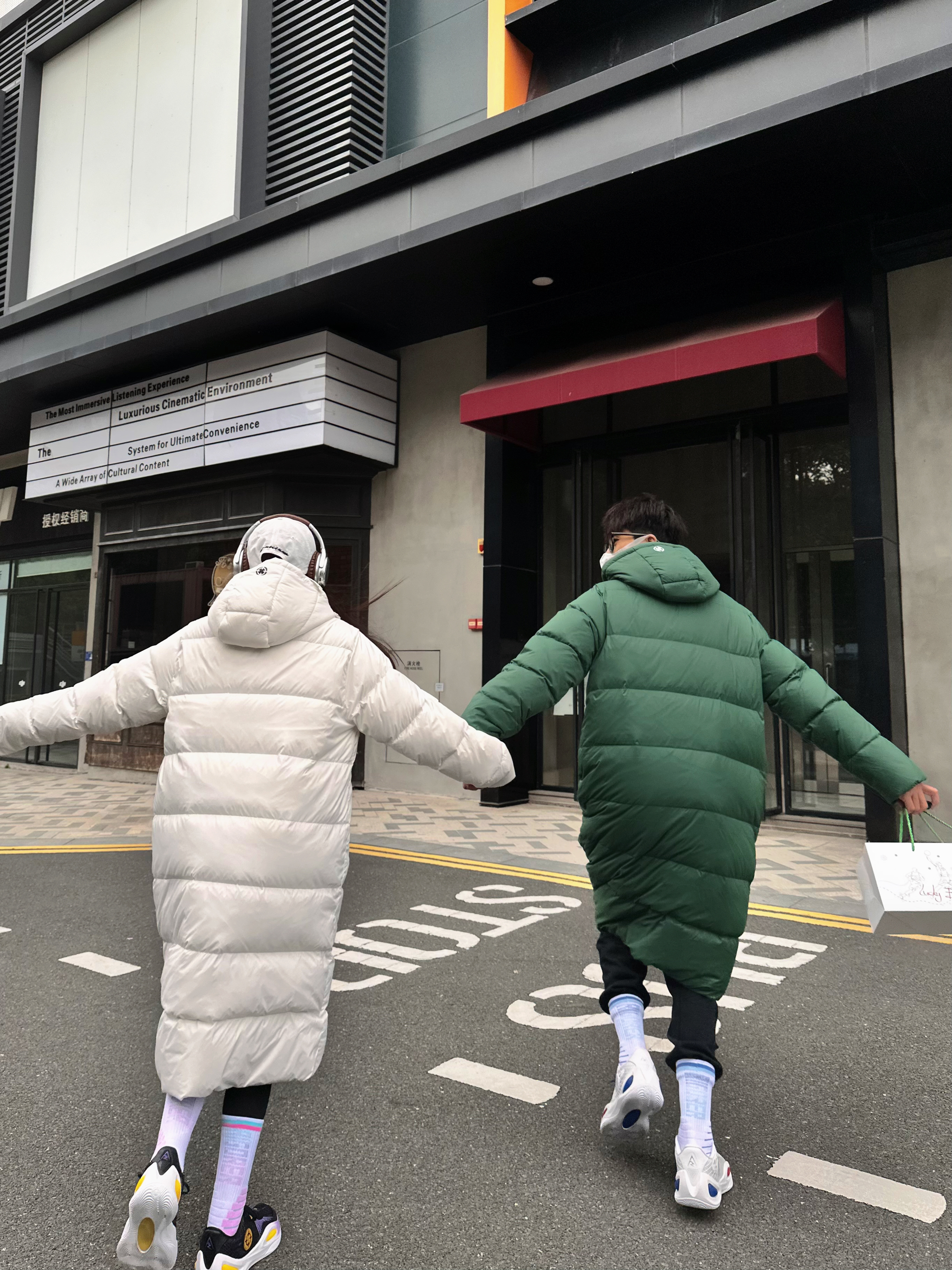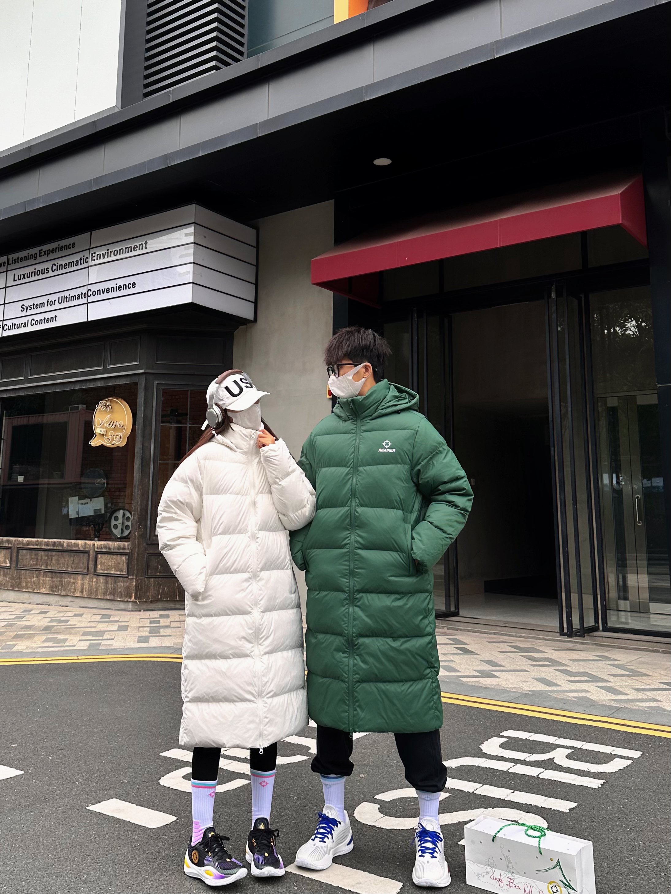 准者白花花的羽绒服太有安全感了⛄️ 上身一整个暖住! 长款就是很实用啊 适合北方~ 军绿色男生穿自带硬汉的帅气感🕶️ 一起搭配他们家的篮球鞋和球袜🧦⛹🏻 运动感满满 舒适帅气🕶️ 就这么一起出街暖呼呼的安全感满满👩🏻🤝👨🏼