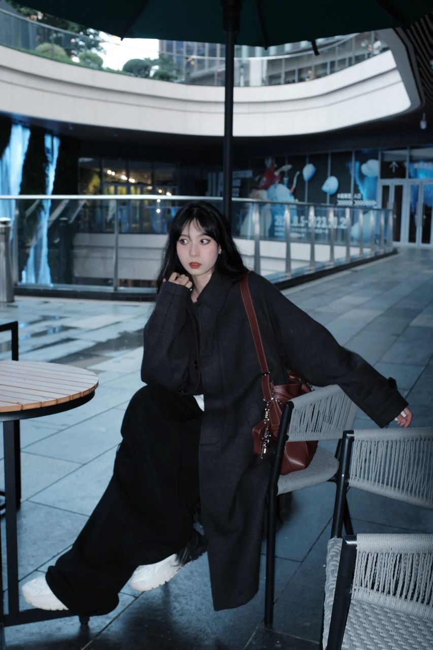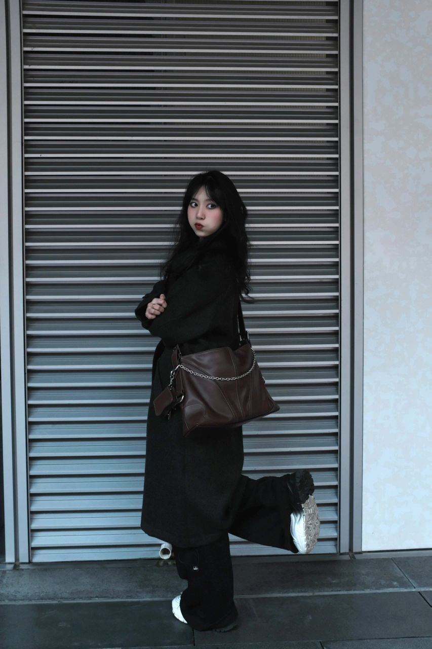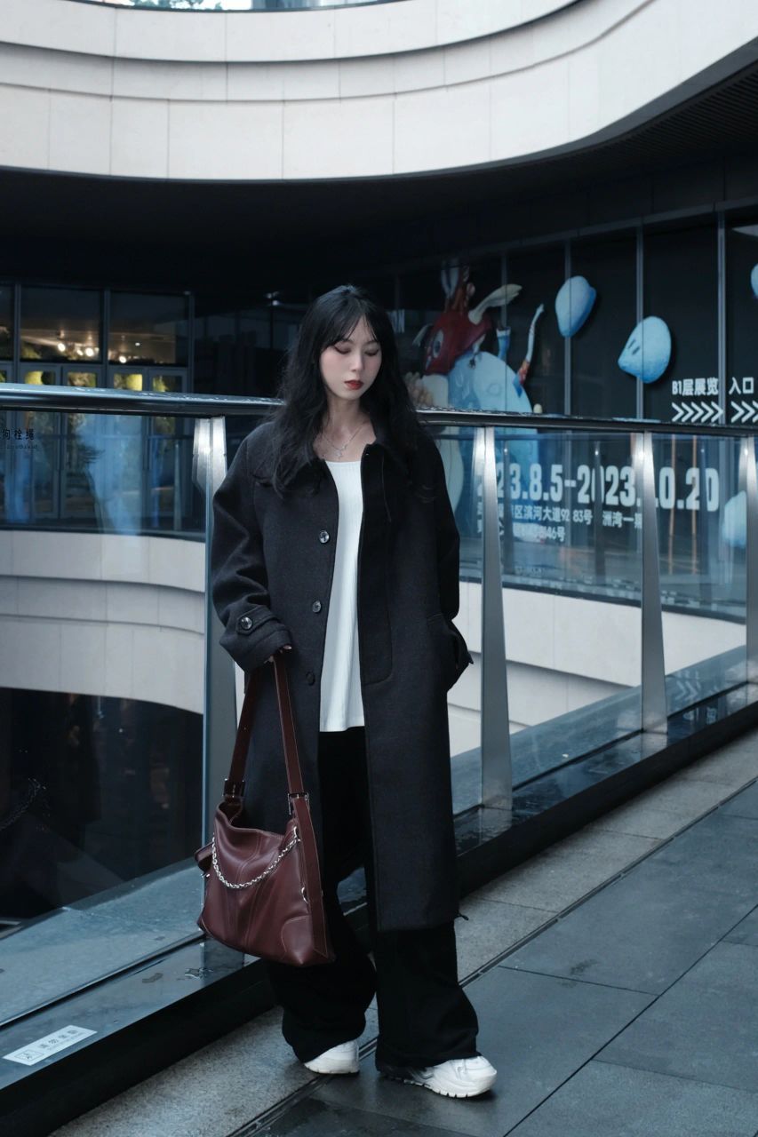 眼神坚定的可以入党 一身黑配酒红色的包 有种眼前一亮的感觉🤩 很喜欢这种重磅的大衣 冬天穿很有安全感 小个子嘛 鞋子当然要选有增高的芒果鞋 增加视觉效果 我有我的矮子乐 -