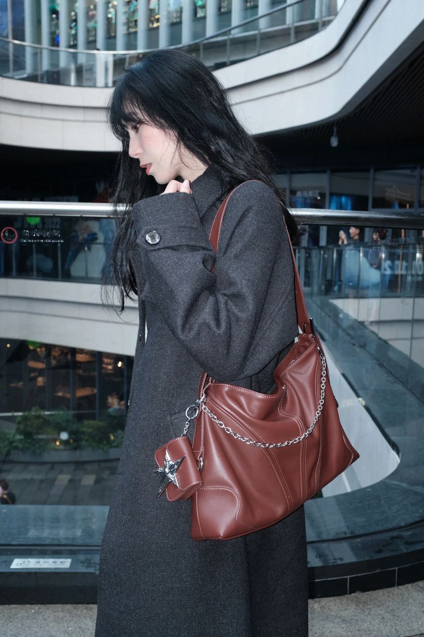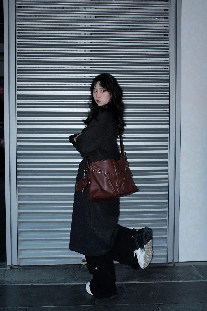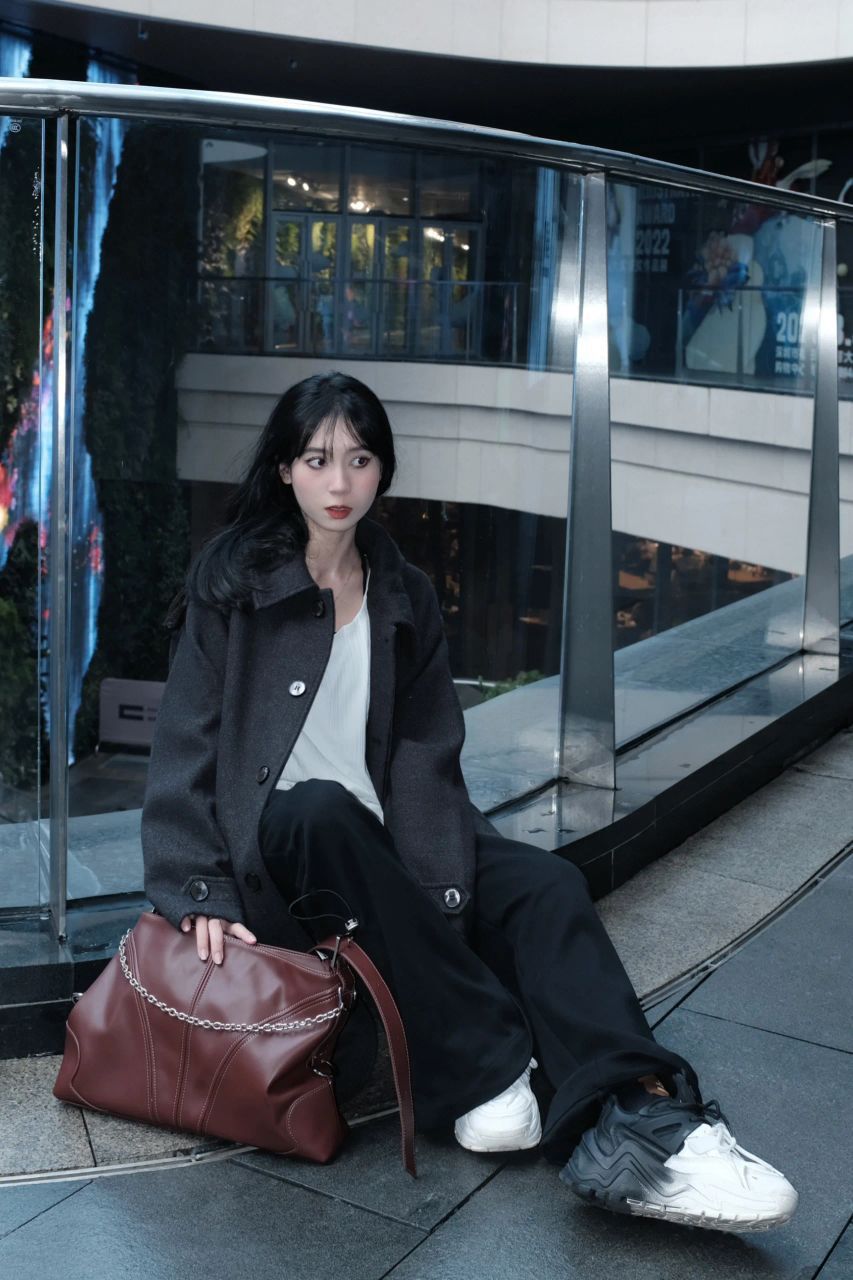 眼神坚定的可以入党 一身黑配酒红色的包 有种眼前一亮的感觉🤩 很喜欢这种重磅的大衣 冬天穿很有安全感 小个子嘛 鞋子当然要选有增高的芒果鞋 增加视觉效果 我有我的矮子乐 -