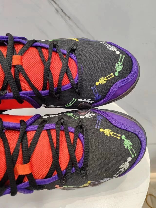 鞋面:以黑色为主,橙色的部分为较细腻的皮质材料,前掌鞋面则为全编织网面。鞋跟则为麂皮,包裹感非常的强,鞋面是有亡灵节的小人围圈,质感也是满满。 配置:中底材质并不是之前一直应用的 phylon,而是更换为相对柔软的cushlon,而在连续起跳的过程中,双脚前掌部分并没有很明显的震脚感,而是有更加明显的反馈感。大底方面则添加了XDR外场耐磨橡胶,以及本身鞋面的纹路很深,耐磨性也是比较妥滴啦~