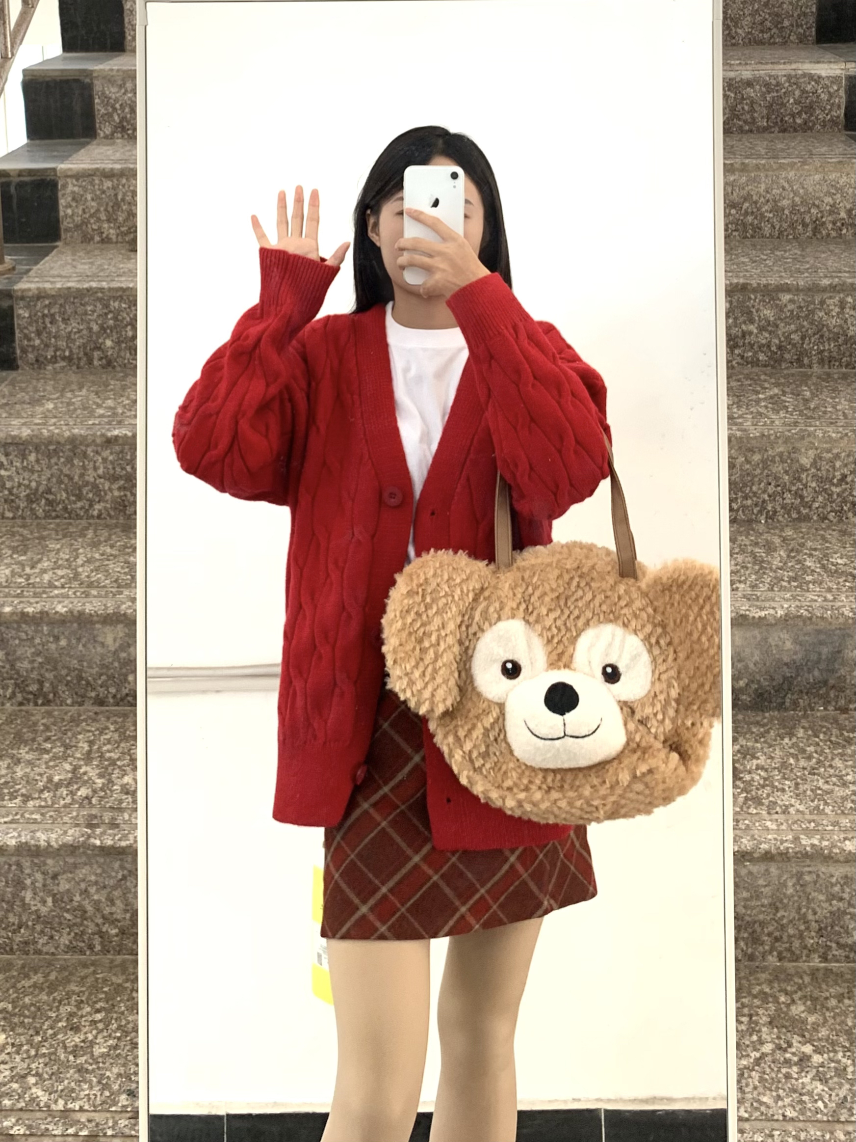 身高|体重:160 88 穿搭风格:节日氛围很浓,适合圣诞穿! 👔 上衣:上衣搭配了白色的打底和红色的开衫,这件红色开衫颜色很正,不会让人觉得很红很土,然后面料是针织的,不是特别薄,穿着很舒服!白色打底是特别百搭的,用来搭配很多衣服了~ 👖 下装:红色格纹裙就不用多说了,真的很百搭,同时也是今年很火的裙子👗 👟 鞋子:厚底靴搭配堆堆袜太好看啦!今年冬天特别喜欢这样穿~超级好看 🎒配饰:大...