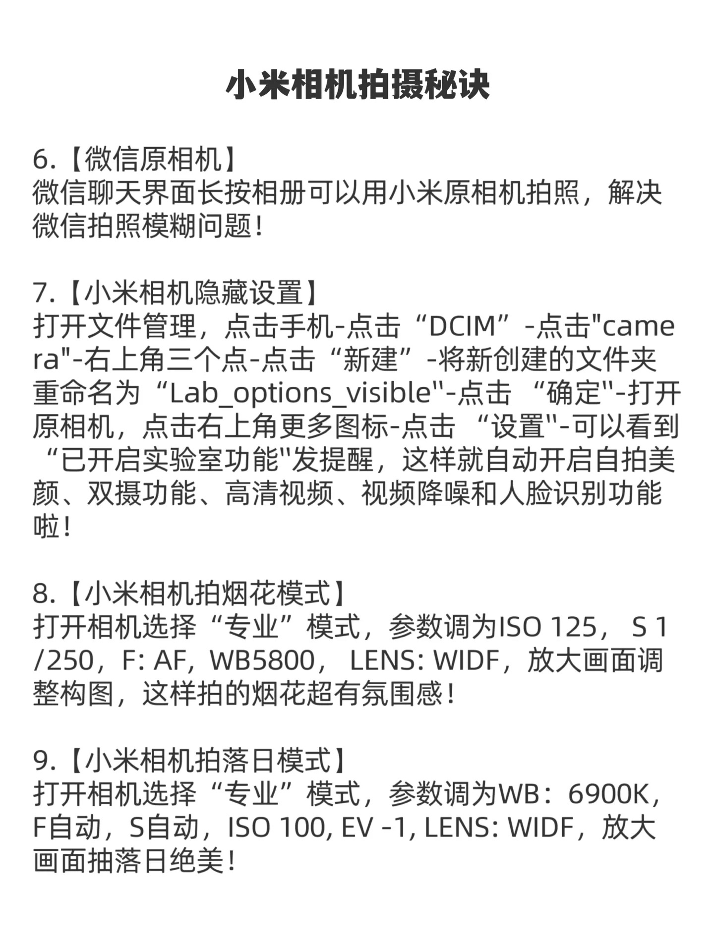 拯救小米原相机‼️这才是拍照好看的隐藏秘诀|||宝子们,原来小米手机还有这么多隐藏的拍照秘诀! 别再说小米手机拍照不好看啦,学会这些秘诀随手也能拍出氛围感大片! 如果这篇笔记对你有所帮助,可以帮忙点个关🐷,有什么其他问题也可以在评论区问我,咱们下期再见~ #小米[话题]# #小米手机[话题]# #红米[话题]# #红米手机[话题]# #玩机攻略[话题]# #拍照[话题]# #原相机[话题]# #我...