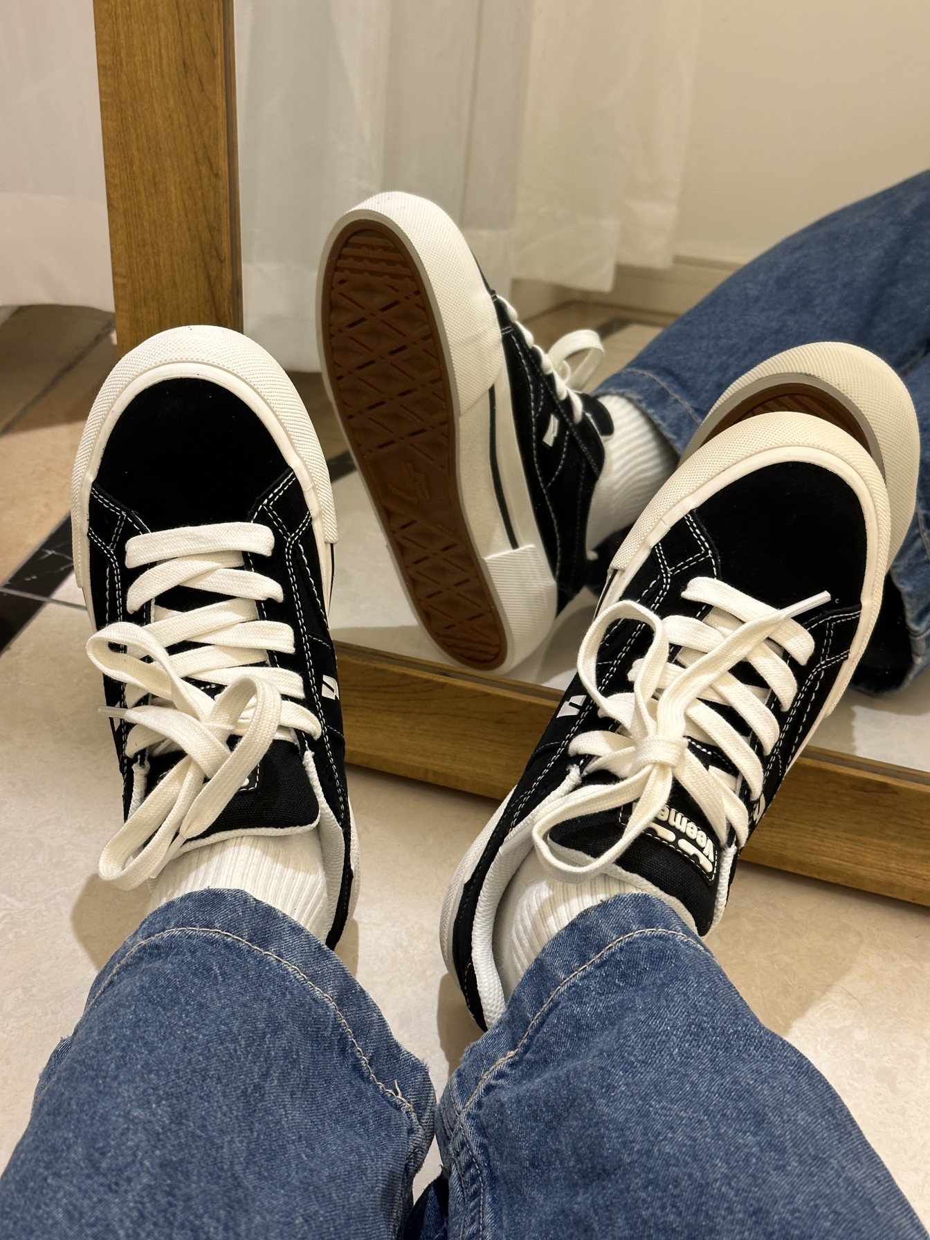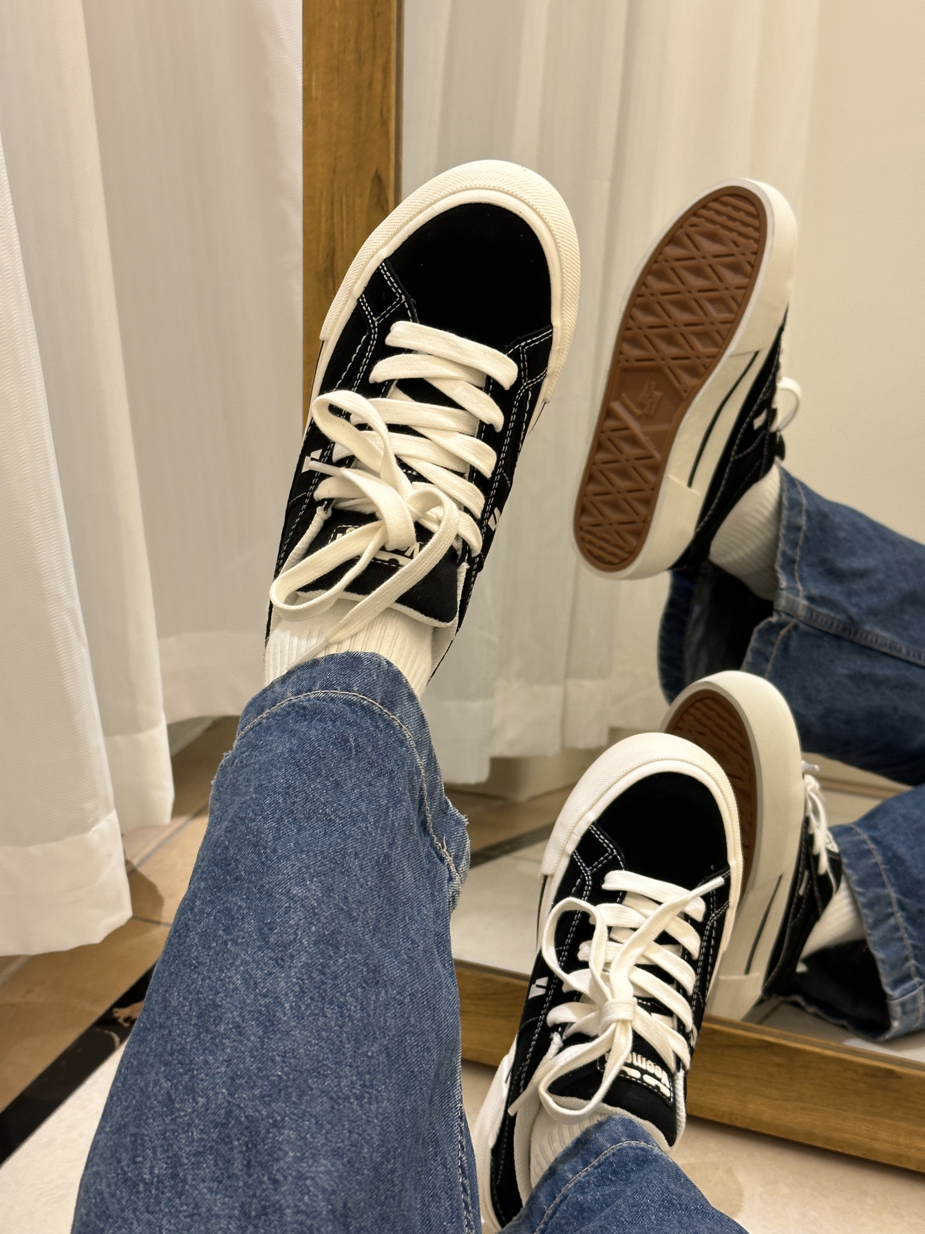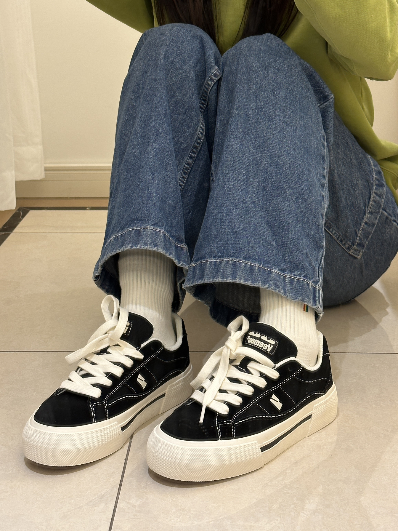 真的太喜欢veemes这款板鞋了 黑白配色真的很经典啊 上脚效果超好看 弹性好穿的很舒服 #veemes