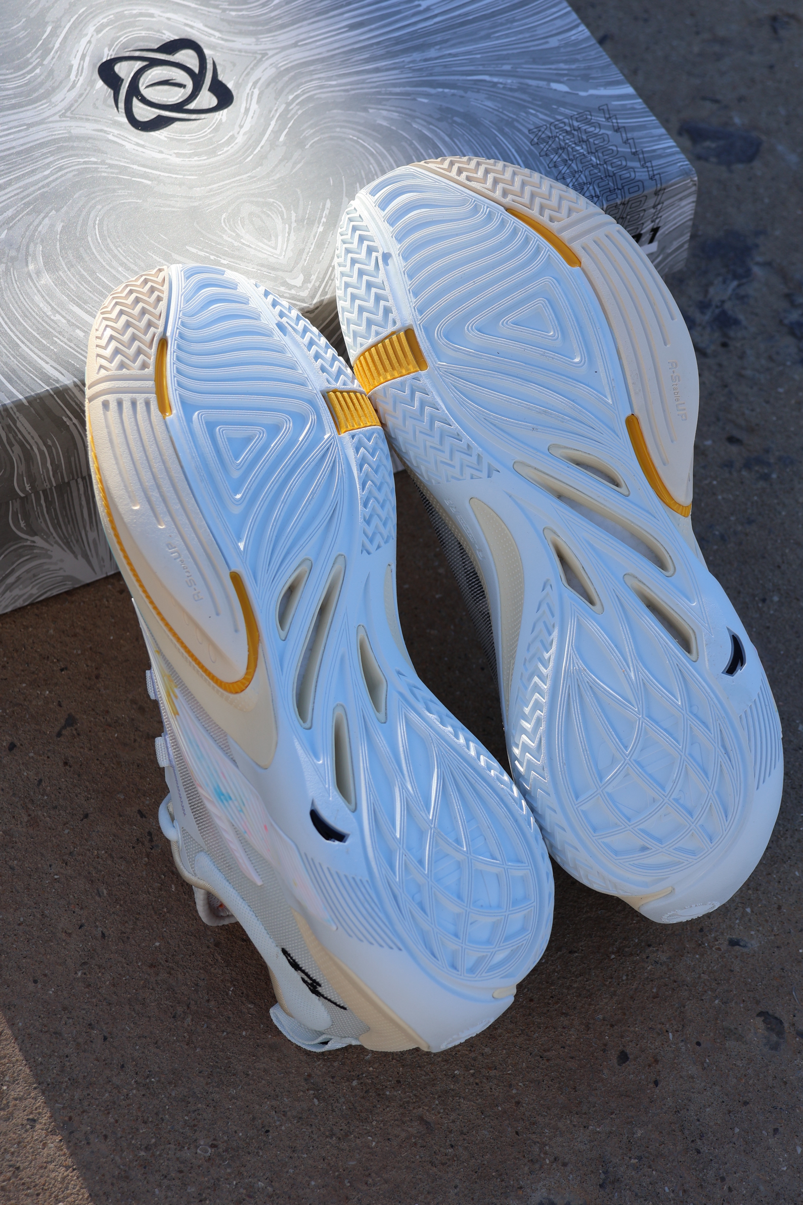 👟:Anta安踏 瞬息1纽约掠影 氮科技篮球鞋 男款 白米! 来自迪文琴佐的代言的瞬息一代,也可以叫迪温琴佐一代,把火热的 DDDD 用在这里,很有创意! 42.5码单只仅为365g穿着体验轻便无负担,两块tpu的组合加上泡棉包裹的氮科技! 脚感软弹贴地,抗扭和防侧翻都很到位内侧的支撑也十分给力。总共五组鞋带孔,第一组联有动态绑带并且每边都各有两组孔可以穿过有着更大的可调节范围,适应更多脚型,后跟...