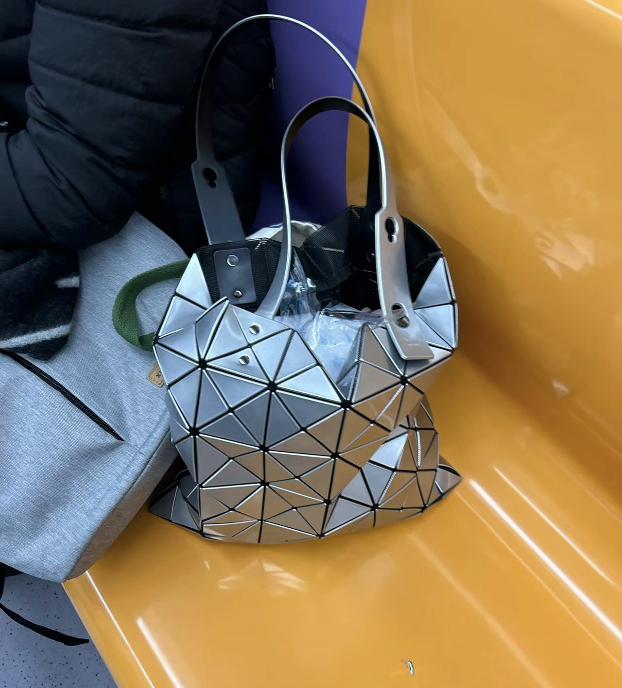 本篇笔记关联了Issey Miyake/三宅一生 Lucent系列 六格 三角菱格亮面聚氯乙烯树脂哑光托特包电脑包PVC手提单肩包 金属灰等商品,为用户提供真实的使用体验和购买参考。