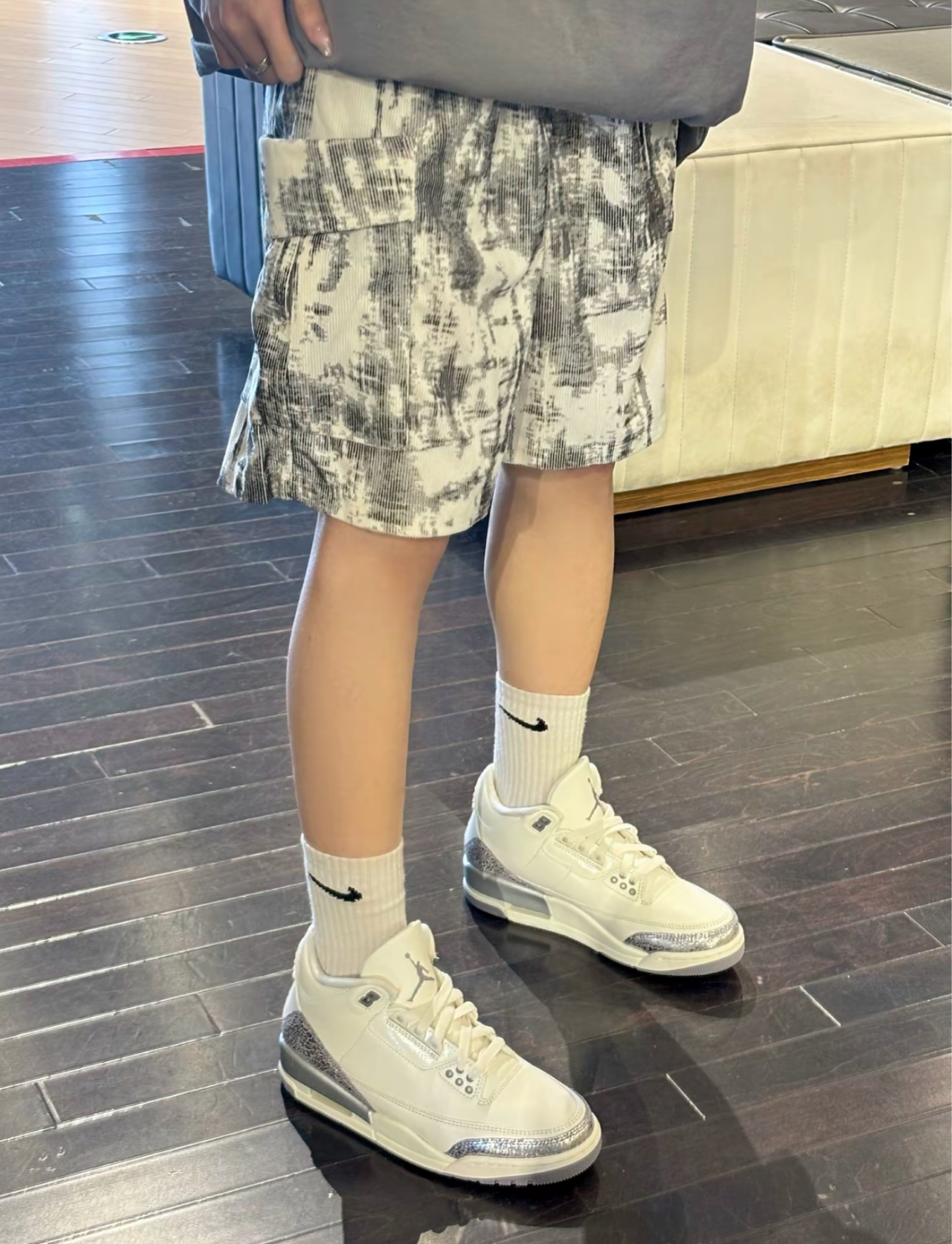 一直都很喜欢这个浅灰色爆裂纹 官方大量补货后价格直接从原来的 3⃣️0️⃣0️⃣0️⃣➕千到目前的5⃣️0️⃣0️⃣左右 像我这样的学生党也是趁机入手了一双-这双鞋子不管是日常穿搭还是球场打球🏀都是可以的 鞋面用到了合成皮革拼接工艺把米白色作为鞋面的主色调再点缀上浅灰色整体搭配出来效果很吸睛🆗 魔术贴可以说是这双鞋子的一大亮点不过起到收紧作用的还是鞋带,鞋底上能看到AJ3爆裂纹的影子 这双鞋子的爆...
