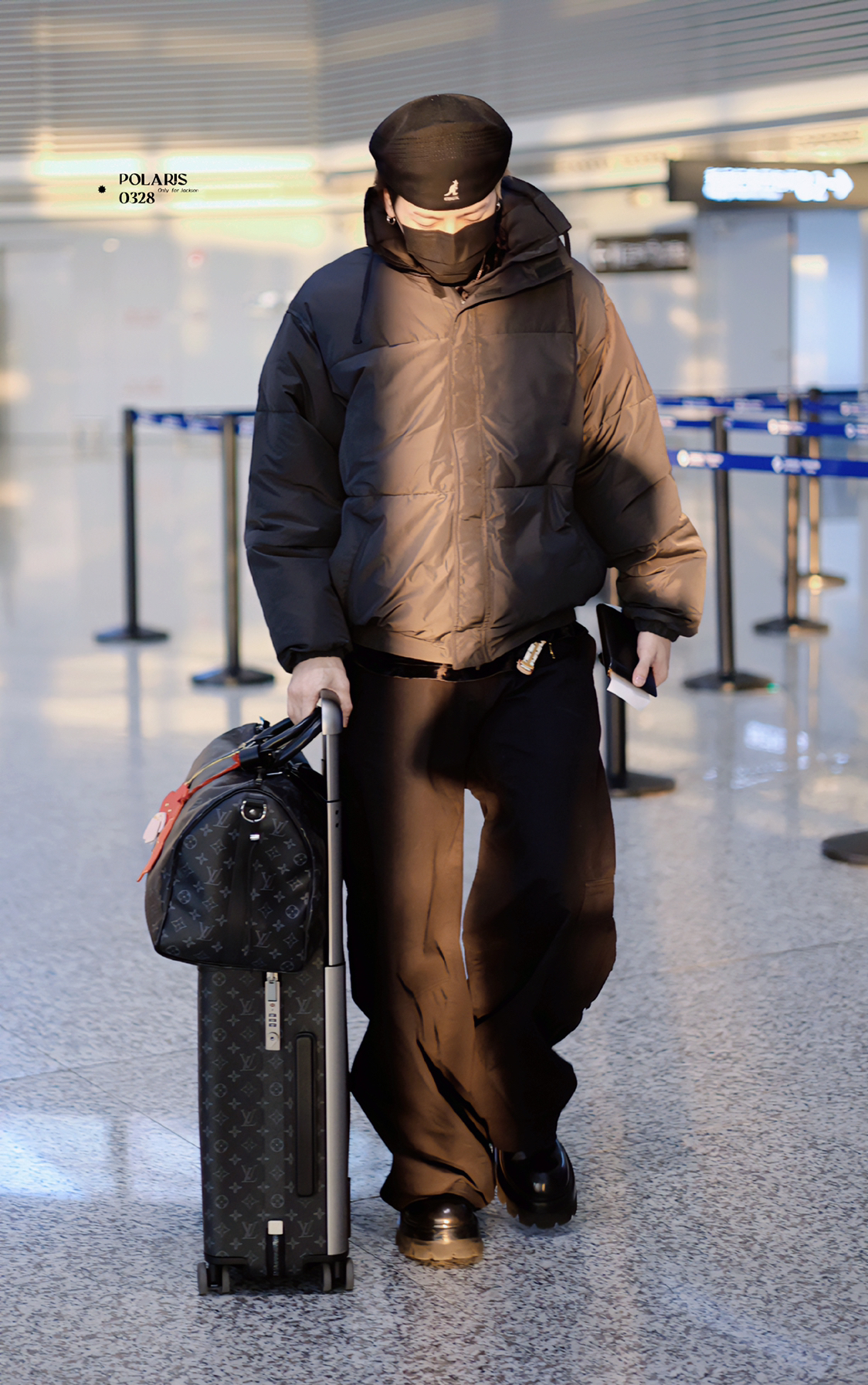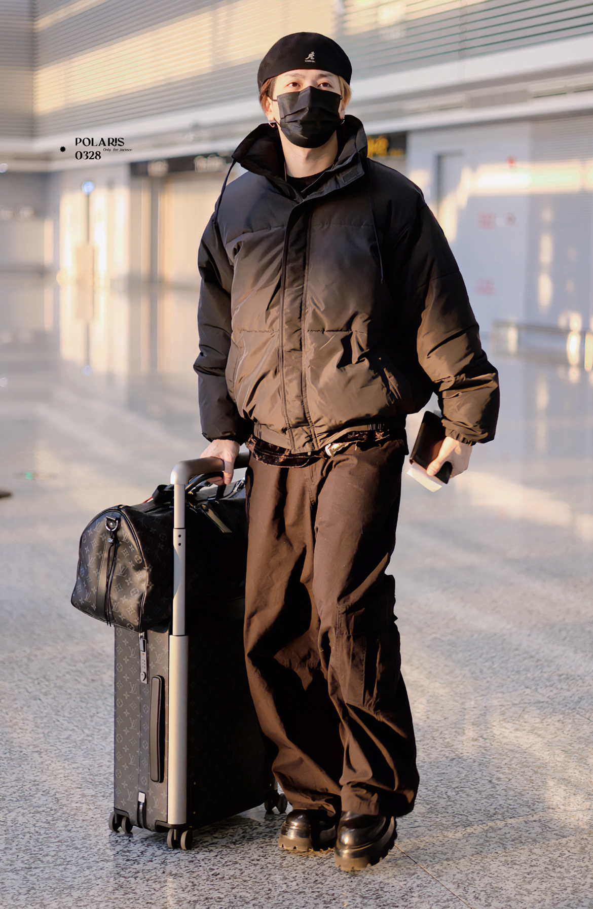 王嘉尔更新了12月24日平安夜机场私服,全套黑色酷帅有型,是个会穿搭的潮男没戳了! 图片来源:@-Polaris0328 外套: Fear of God 帽子: KANGOL 箱子: LOUIS VUITTON 包包: LOUIS VUITTON