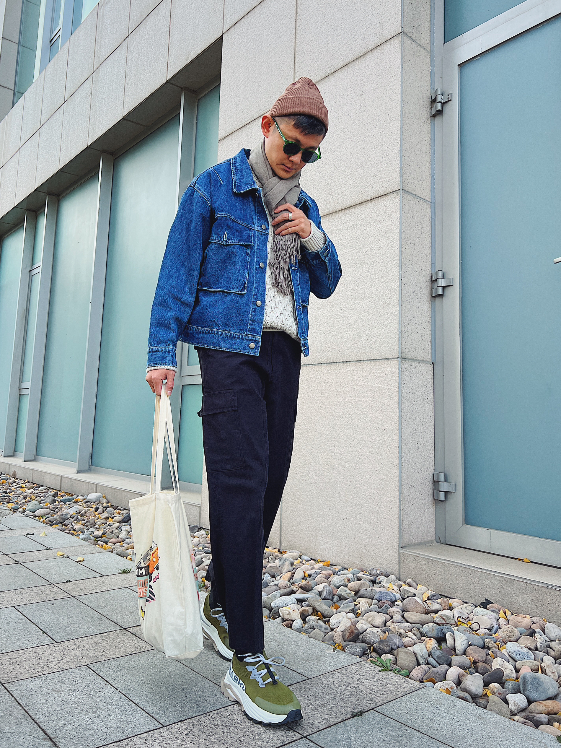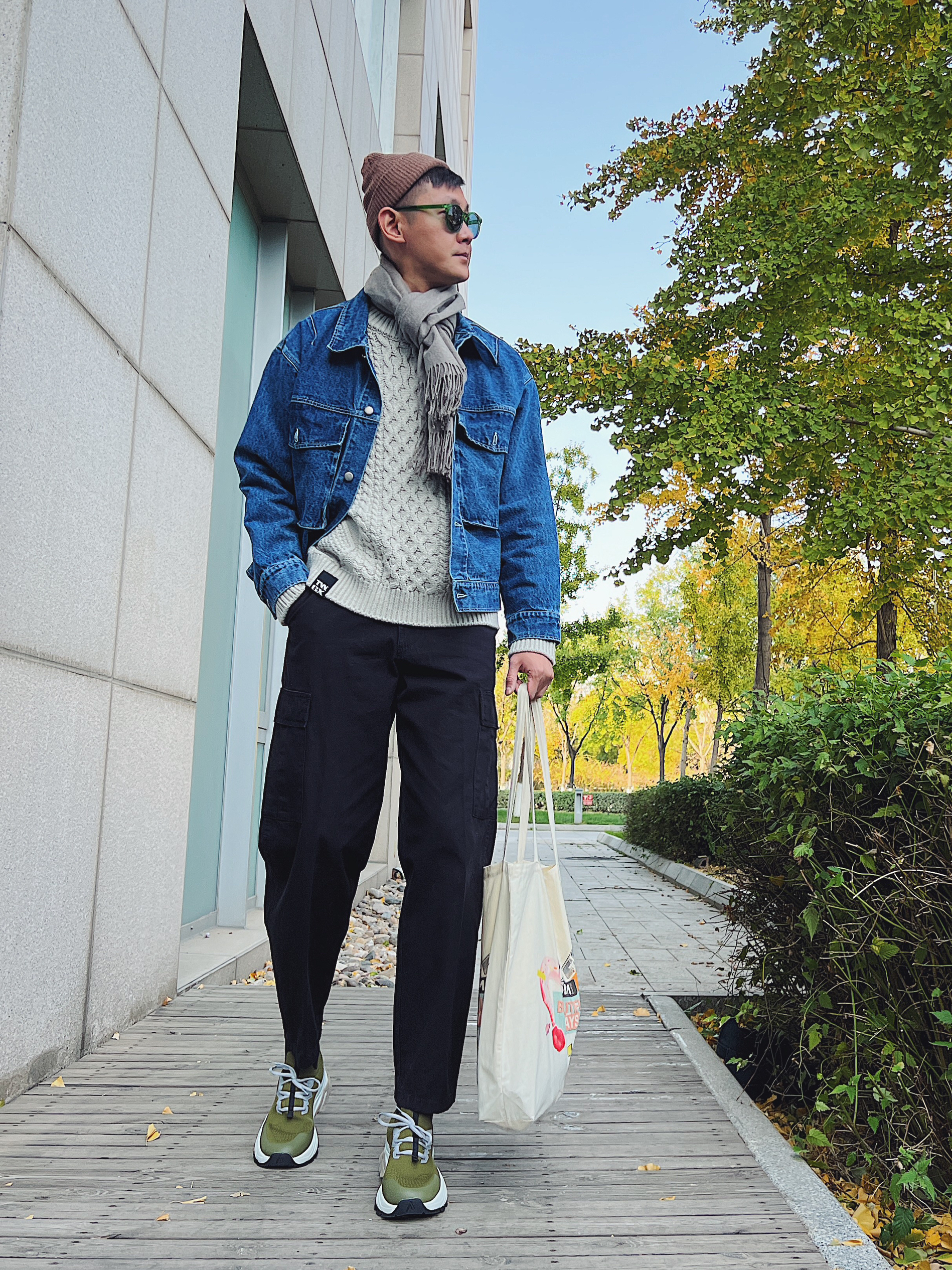 北欧极简风易搭配,ARKK袜套鞋上脚比耐克舒服,配色和设计也加分不少,给秋冬多了些点缀 毛衣很适合秋冬,室外搭外套,室内单穿,一天两种穿搭感觉,浅色针织麻花纹设计,复古沉稳低调,日系即视感,又有北欧街头的惬意