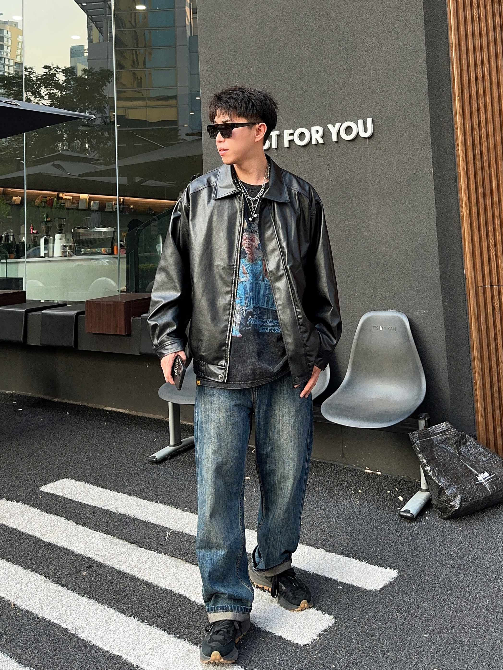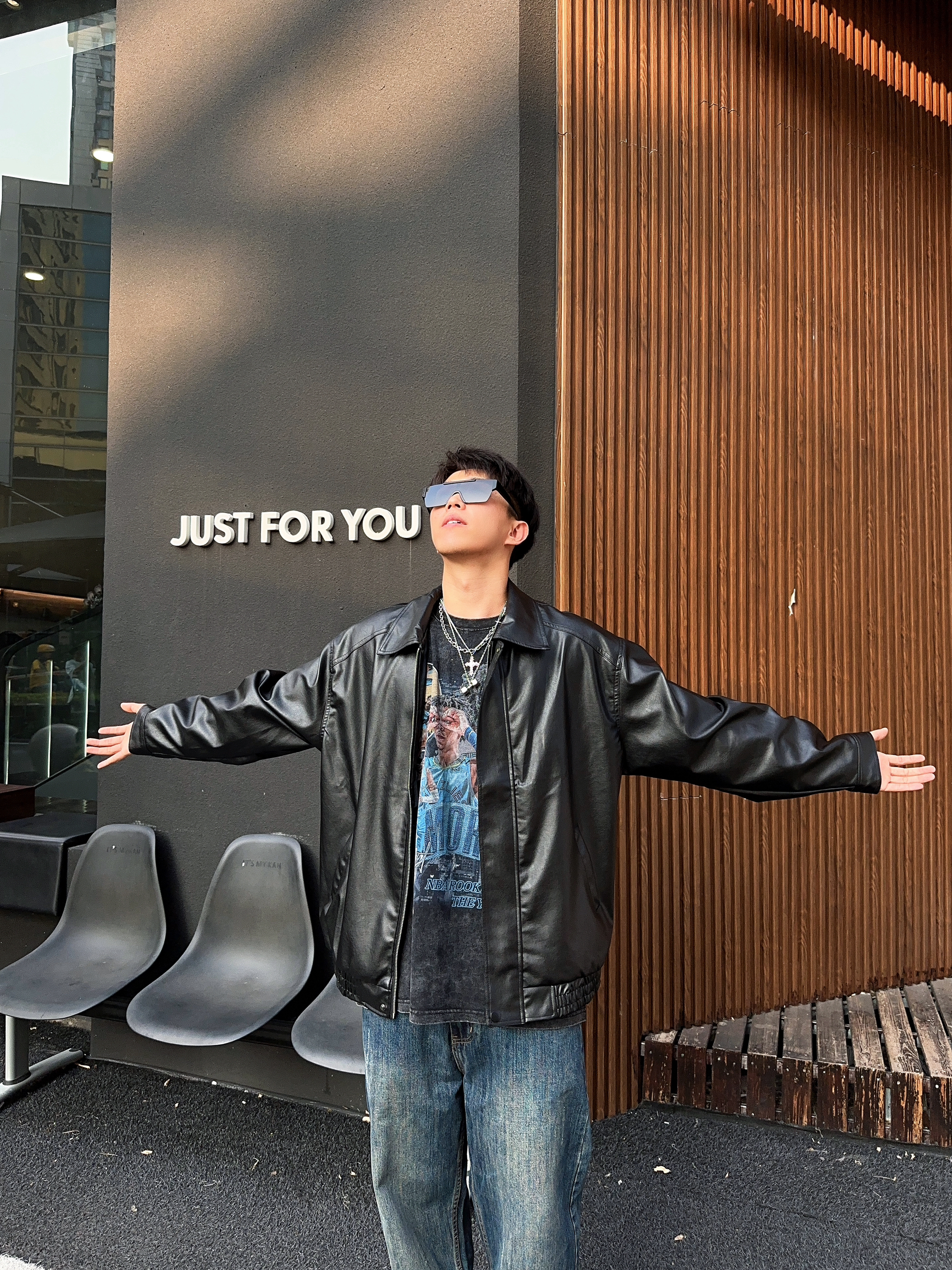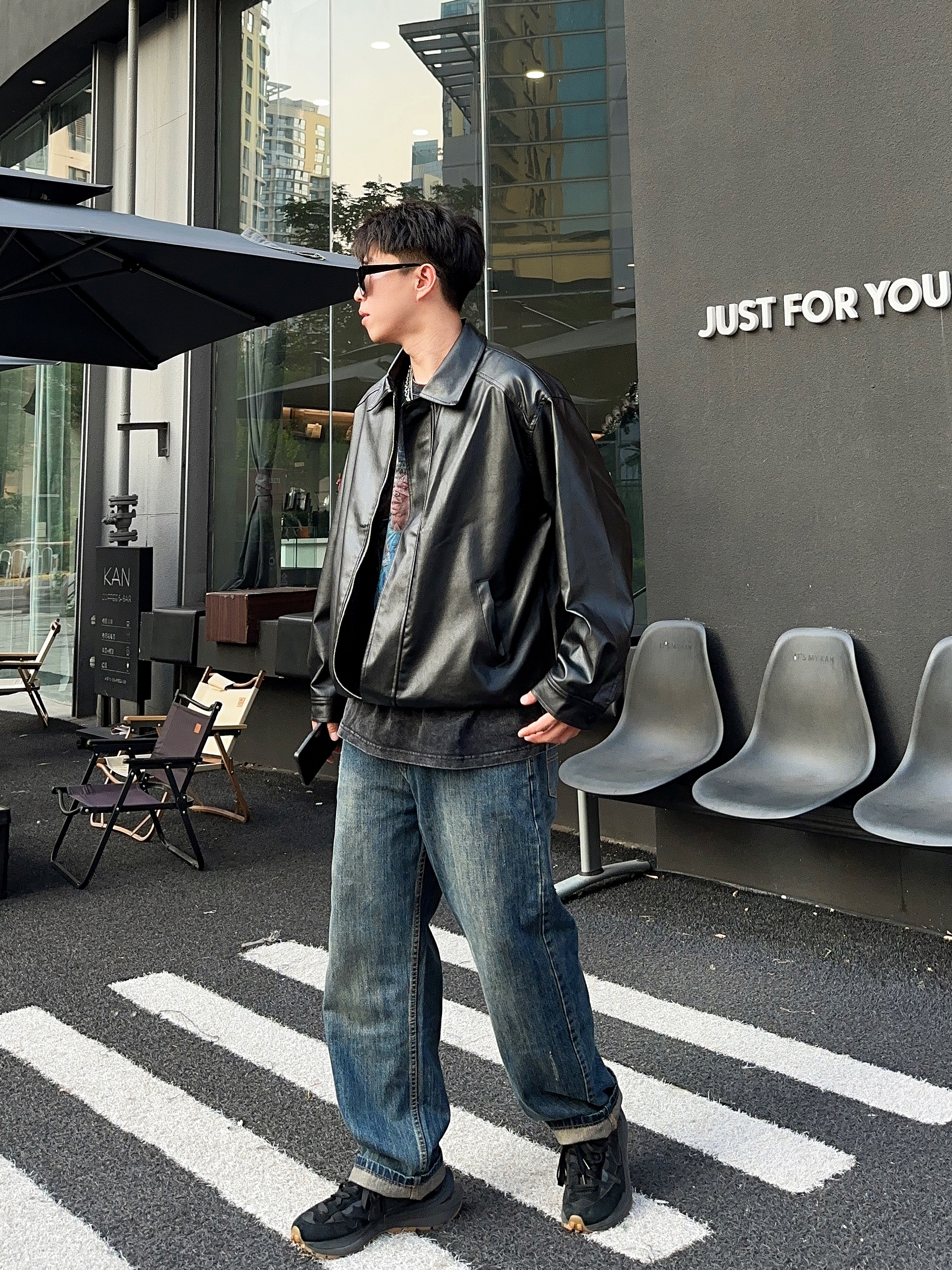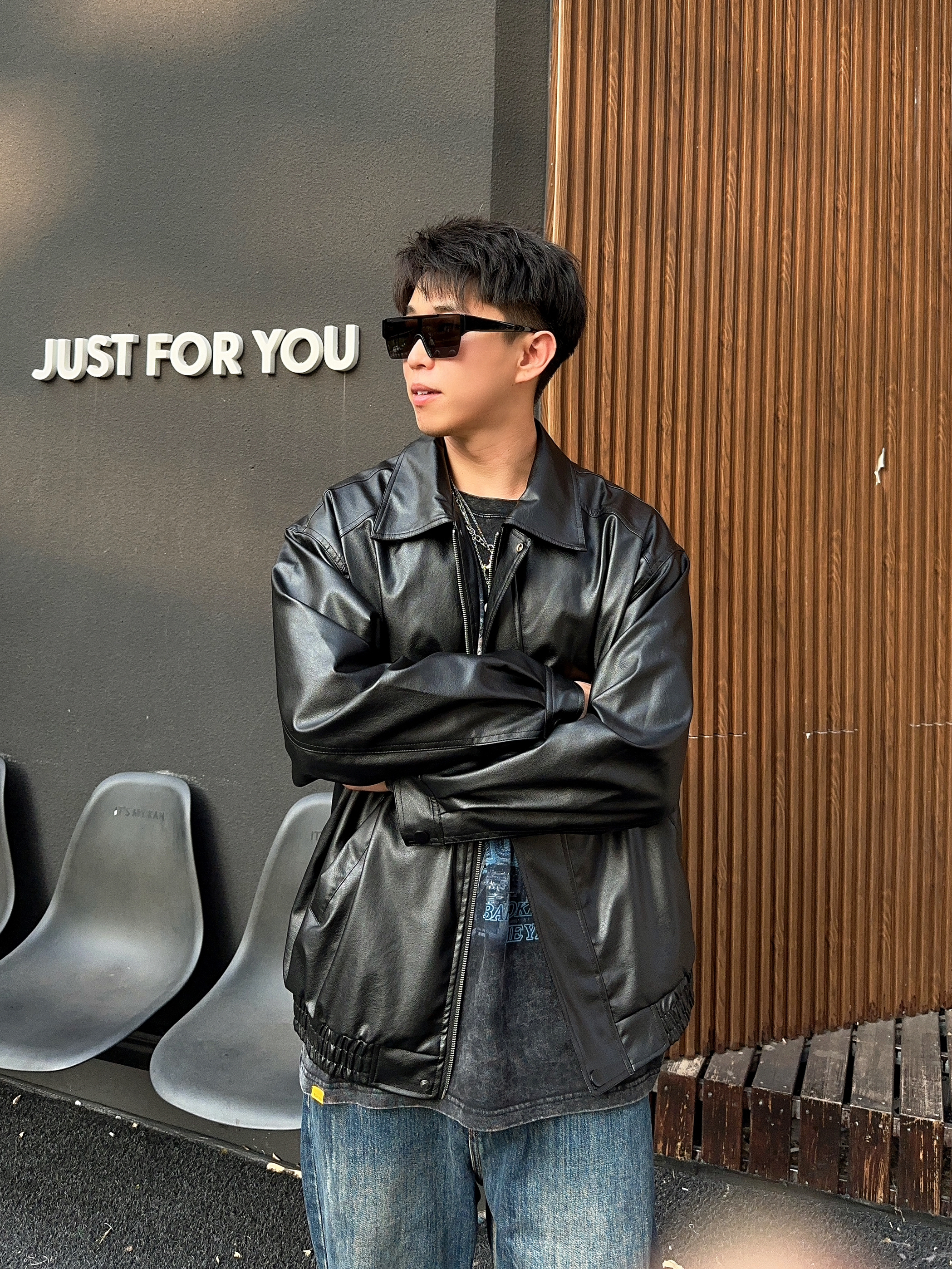 ✅:一场秋雨一场凉🍂北方气温就这么突然间凉了下来了,每天多了一项任务就是思考要穿什么外套🤔️记得有句话说“皮衣就是秋天的入场券🎫”。看来今天问题解决了✔️ —————— 今天是介于机车与美式复古之间的皮衣➕牛仔裤搭配,单品极好掌握,很容易穿出风格。 上身这件皮衣不同于短宽的款式,更有些高街特色的oversize,肩线和长度更适合大众身材,好驾驭,上宽下摆收缩,美式风格很有感...