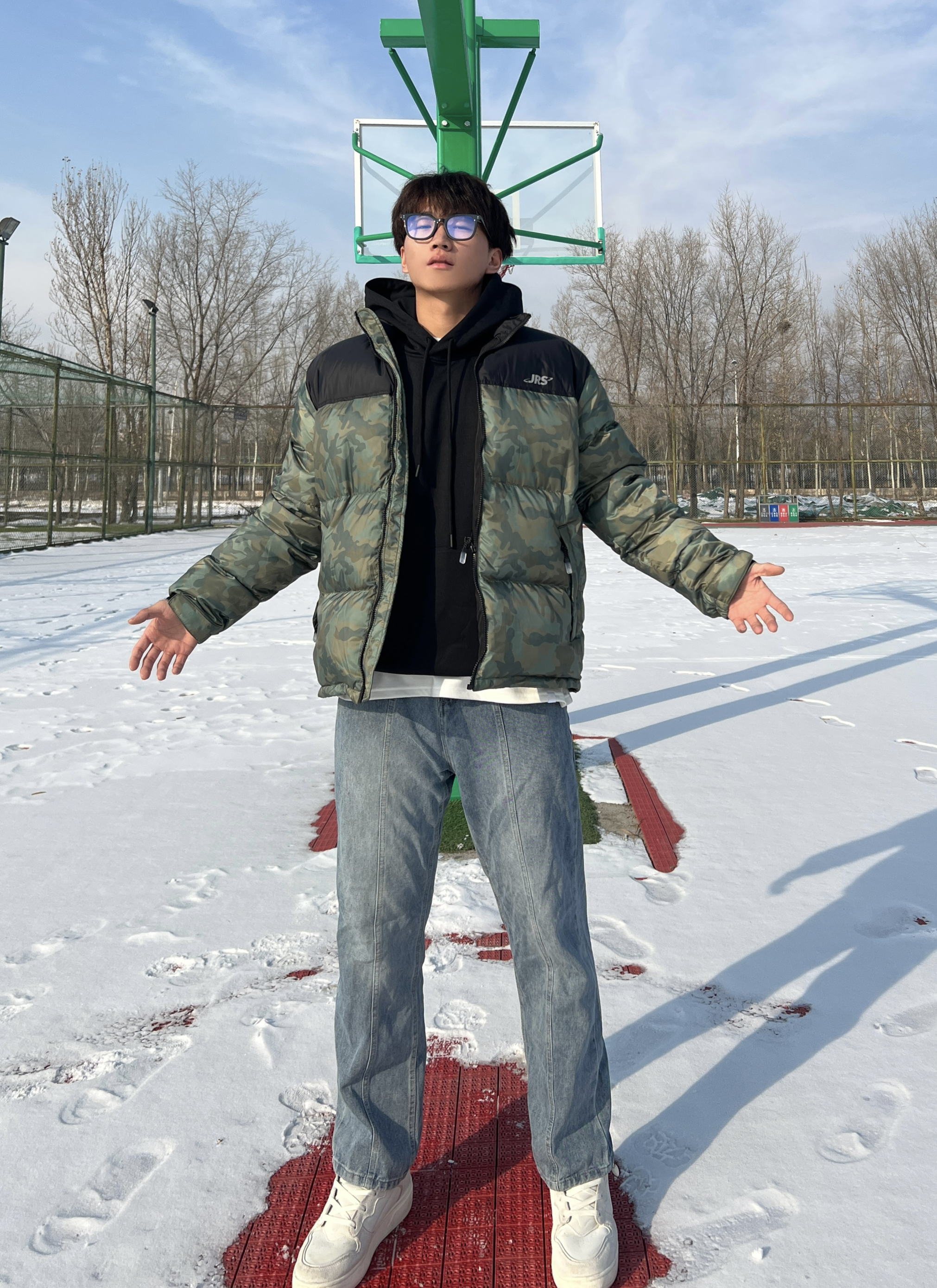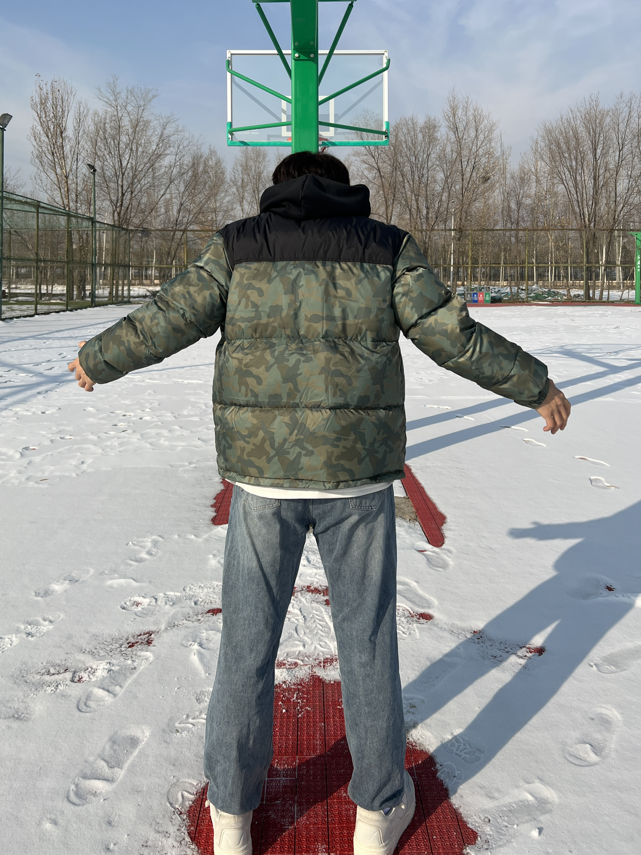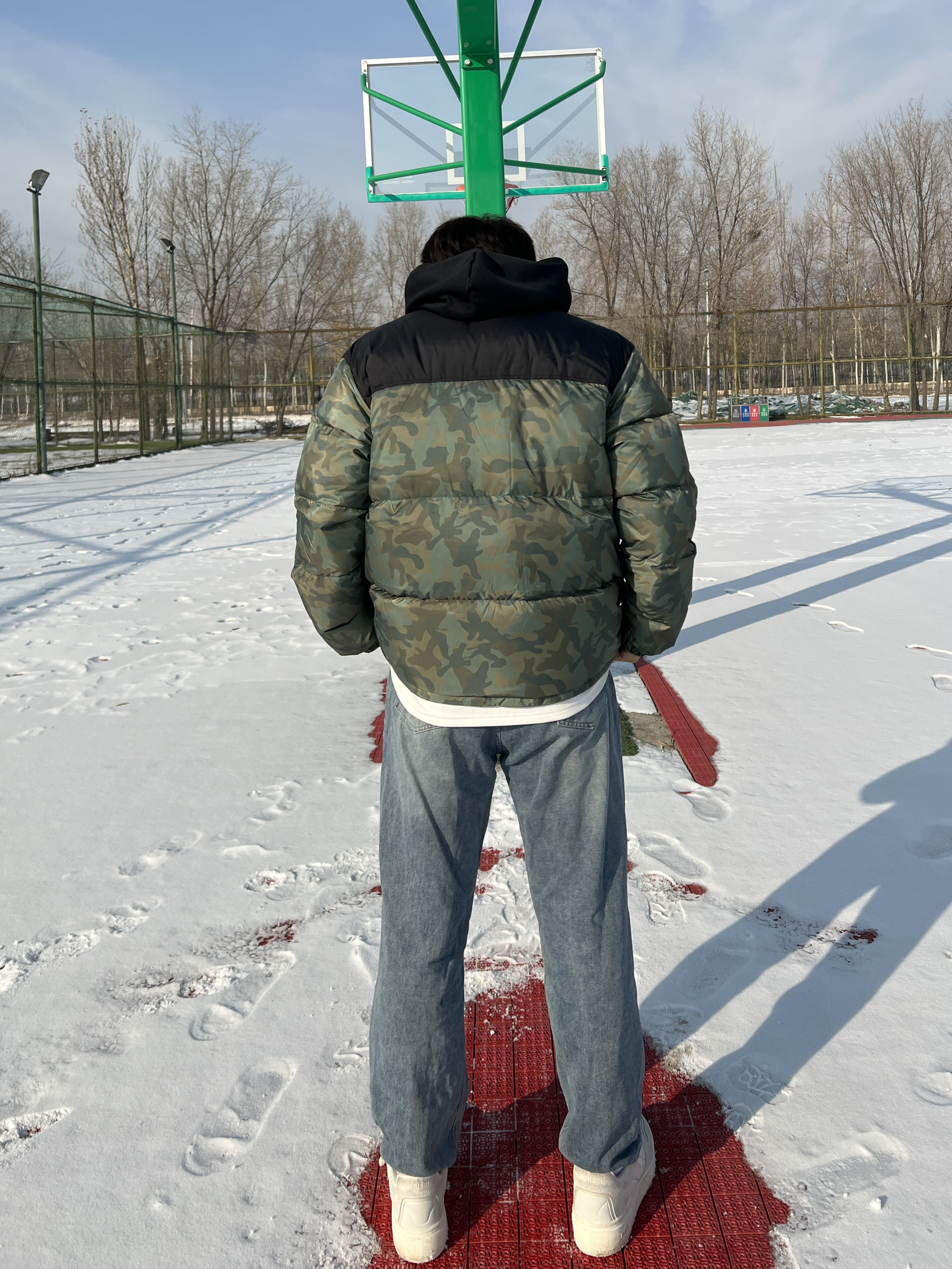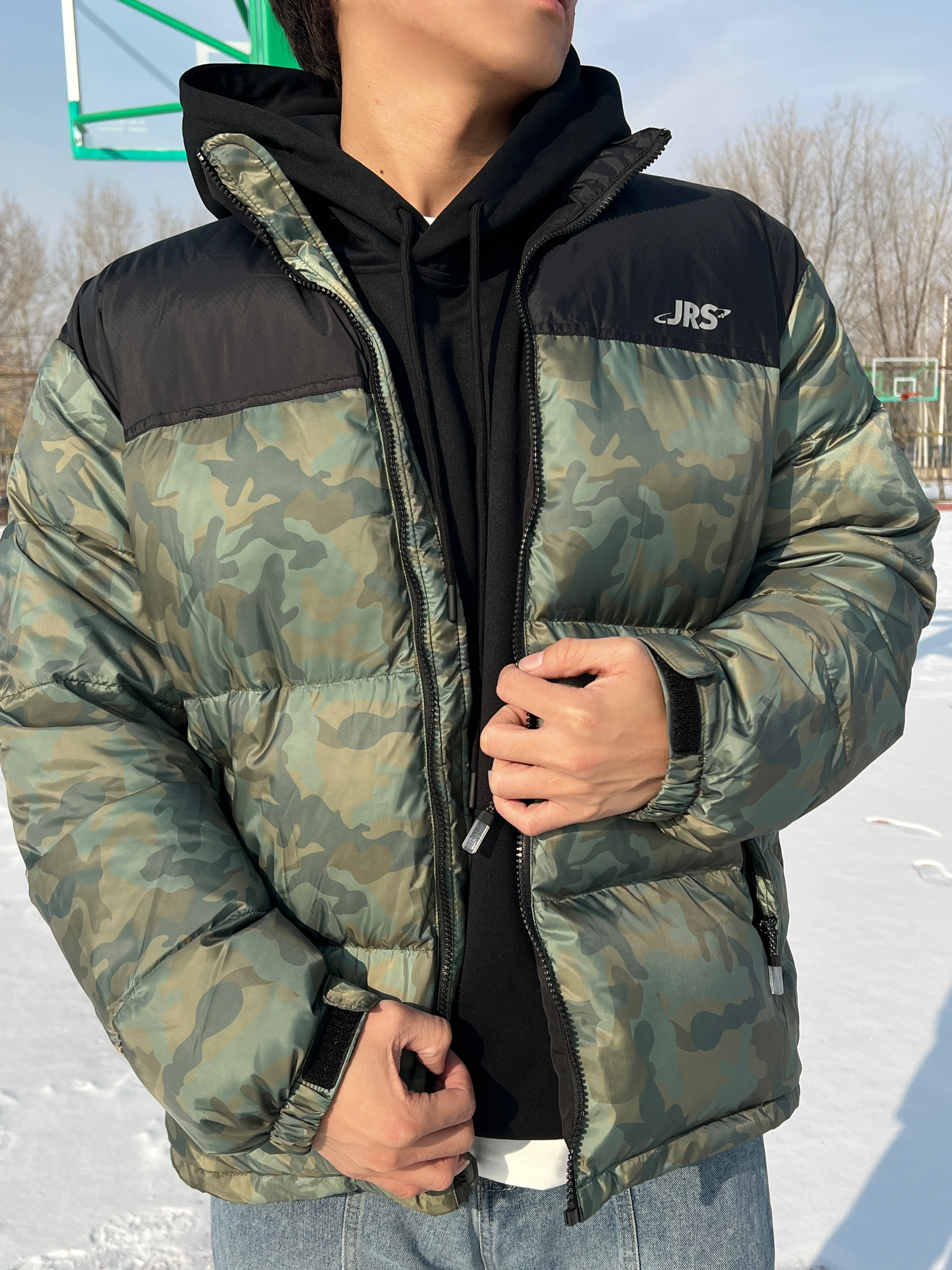 第一次尝试军绿色羽绒服🧥 真的狠狠爱上了 军事风的感觉真的很酷🆒 男生都可以尝试一下🤩 材质也是很不错的 90%的含绒量穿上包裹感十足😇 能感受到填充物的温暖🥰 立领设计可以更好的挡风😎 口袋是拉链设计非常的方便 迷彩色更容易搭配衣服🥰 而且显高修身! 裤子搭配牛仔裤和休闲裤都可以 鞋子可以搭配板鞋和马丁靴👟 185/75一身都是2XL 穿在身上刚刚好不紧绷😬